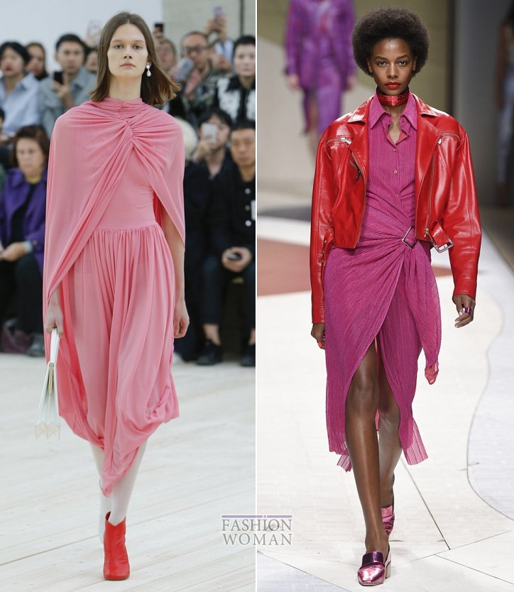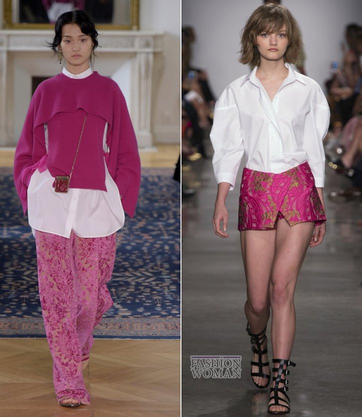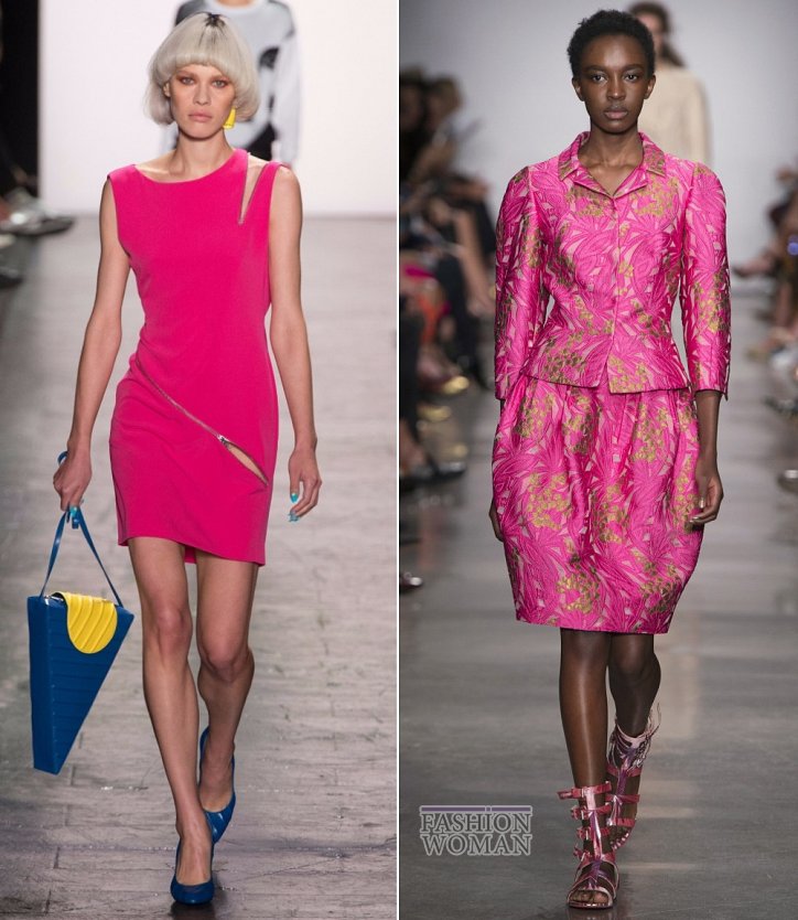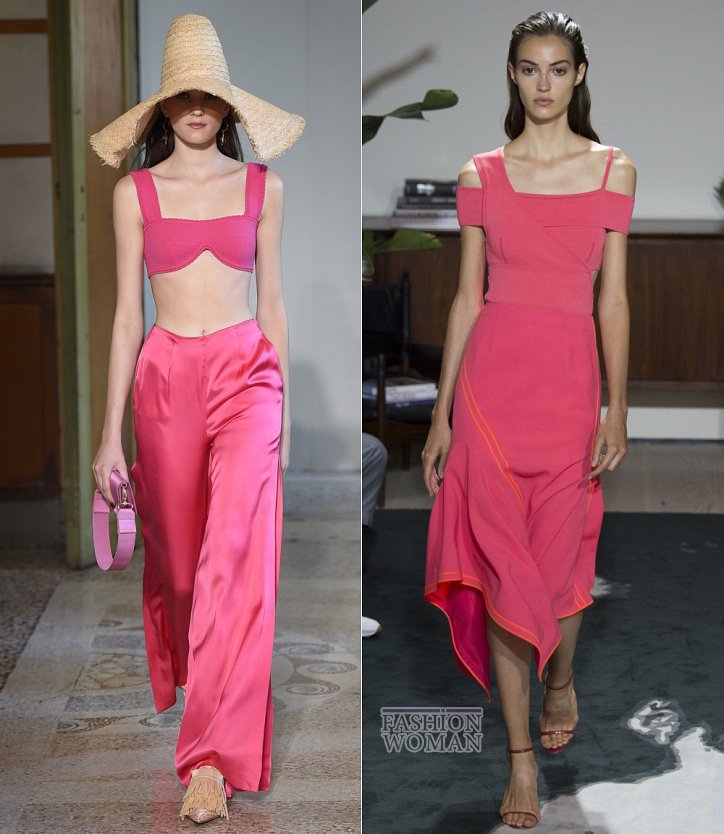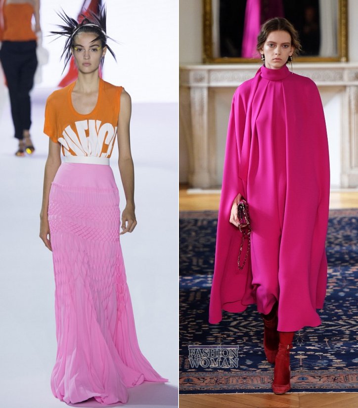 Для самых смелых модниц – total look в розовых тонах (Topshop Unique, Valentino) или сочетания розового с красным, оранжевым, синим или фиолетовым (Trussardi, Celine).