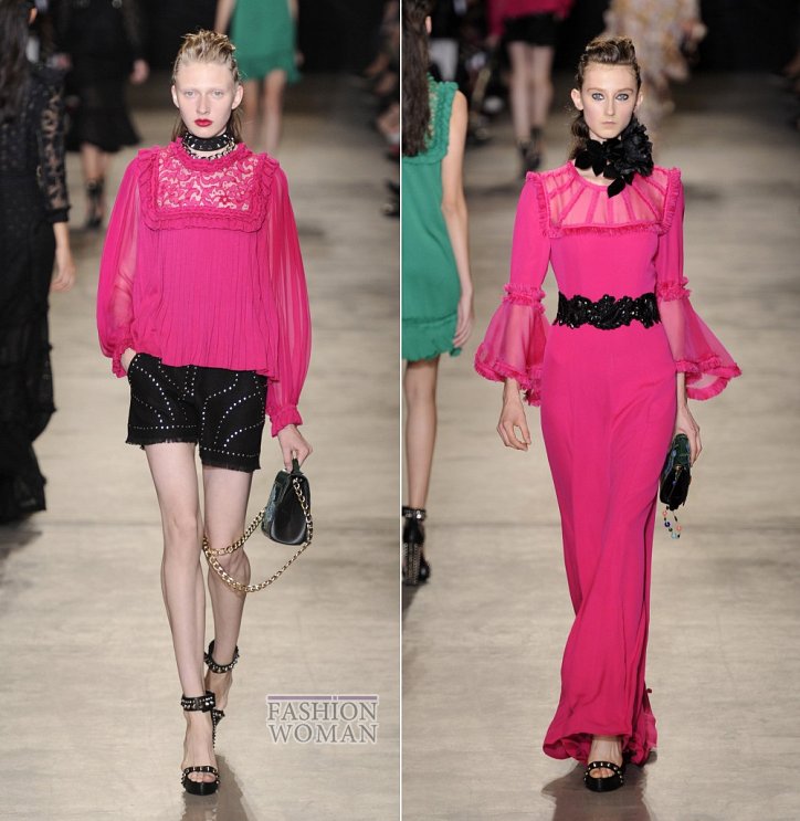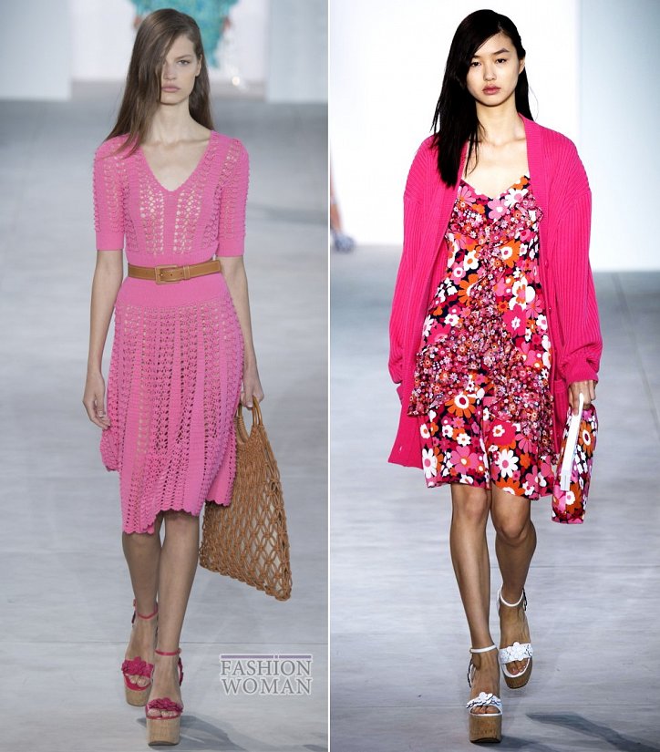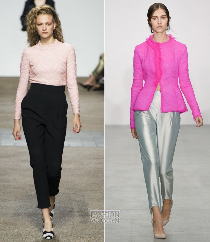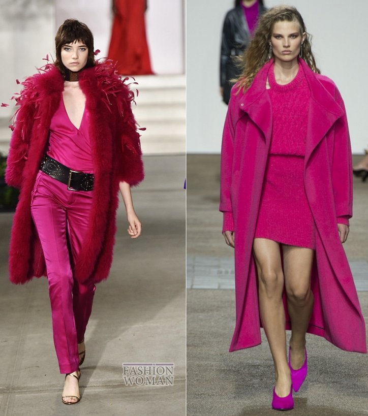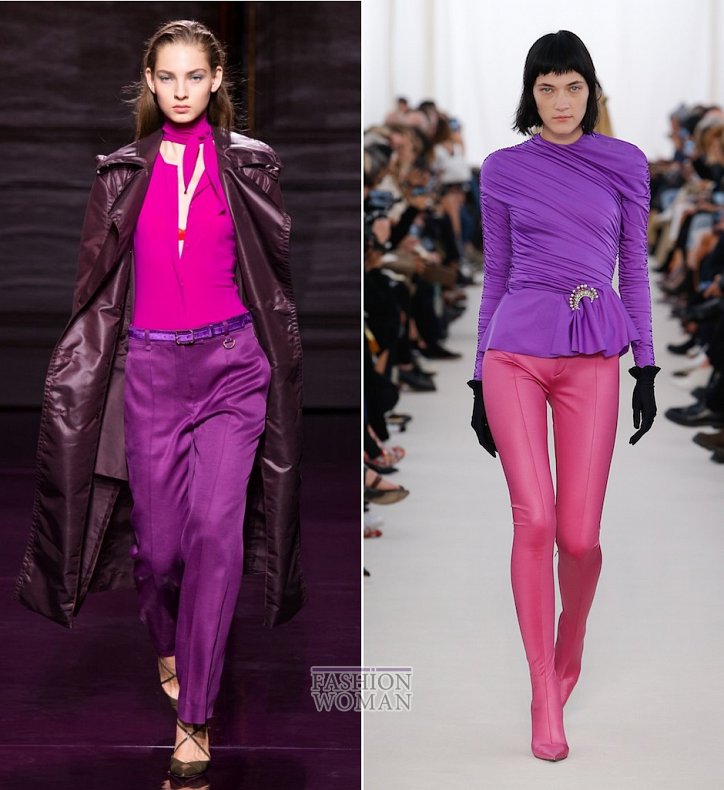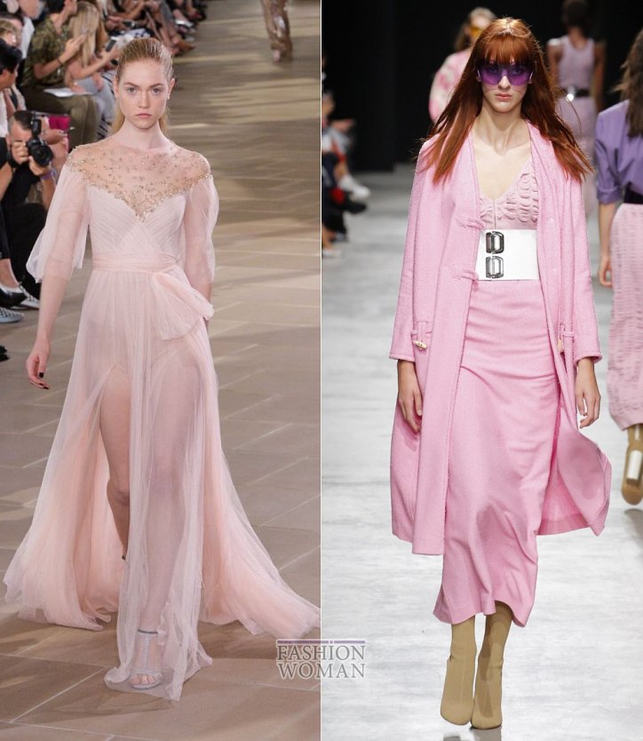 Для самых смелых модниц – total look в розовых тонах (Topshop Unique, Valentino) или сочетания розового с красным, оранжевым, синим или фиолетовым (Trussardi, Celine).