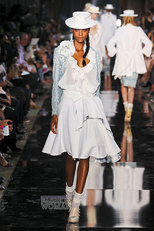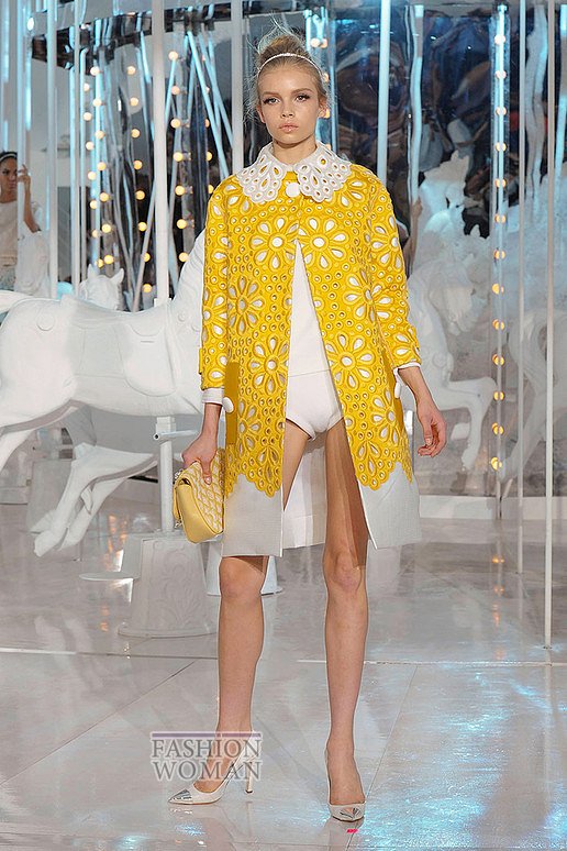 Расклешенные юбки по колено, женственные платья с пышной юбкой и поясом на тали, приталенные жакеты и пальто new look- были представлены в коллекциях Prada, Jason Wu, Louis Vuitton, Nina Ricci и др.
