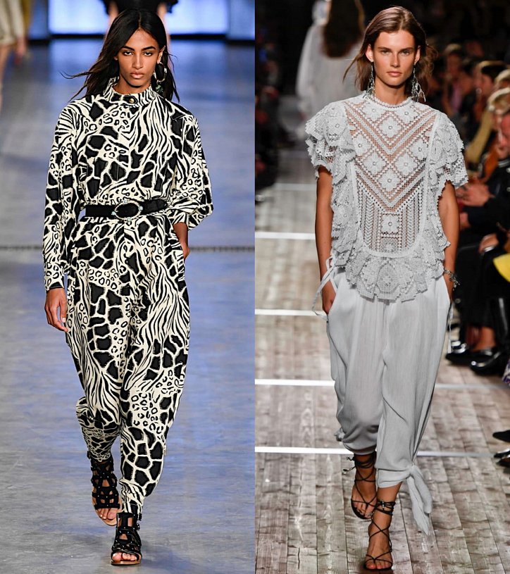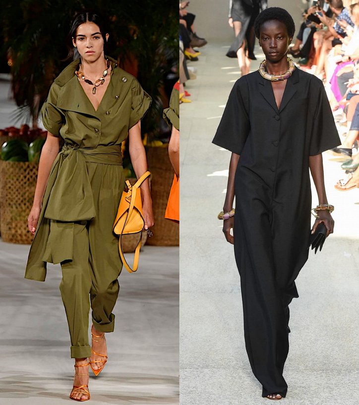 Например, в коллекции Alberta Ferretti нам понравился комбинезон из ткани с эффектом деграде, у Valentino женственная модель с цветочным принтом, а у Salvatore Ferragamo свободного кроя комбинезон с английским воротником.