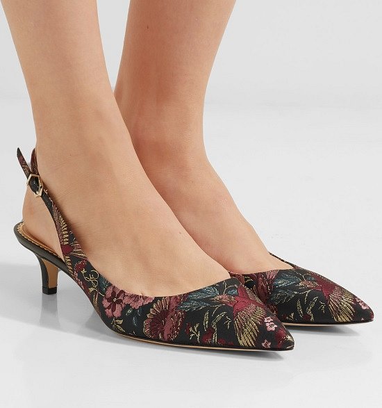 Женственные и изящные остроносые туфли на низком каблуке kitten heel - один из главных трендов сезона. Они могут быть сдержанные, однотонные - черные, белые, бежевые или же яркие, цветные, с принтами или броским декором. Модная высота каблука в этом сезоне от 3-6 см.