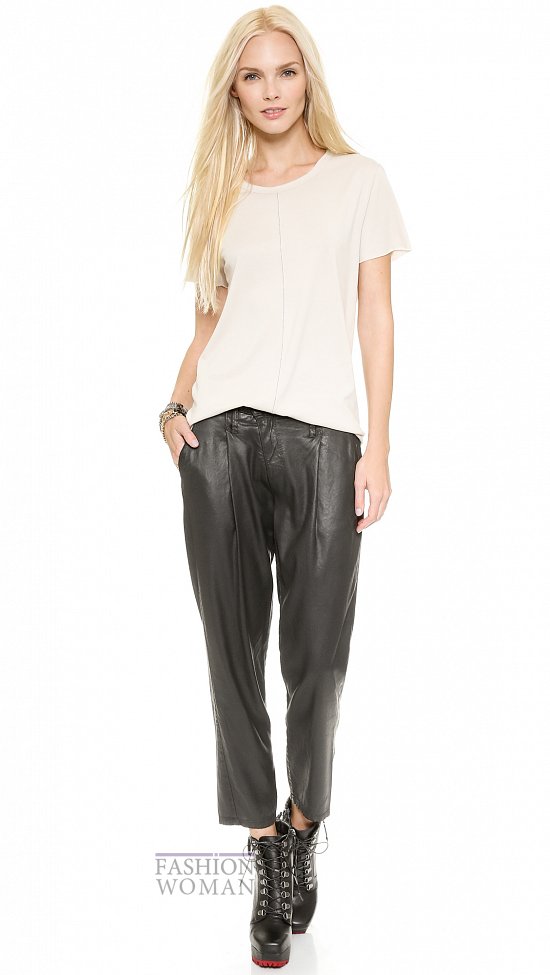 Два тренда в одной вещи предлагают объединить дизайнеры, предложившие укороченные брюки из кожи. Причем наиболее актуальны не облегающие леггинсы, а брюки свободного кроя или кожаные «бананы». Как, например, у Chloe, Monique Lhuillier, Rodebjer и ASOS.