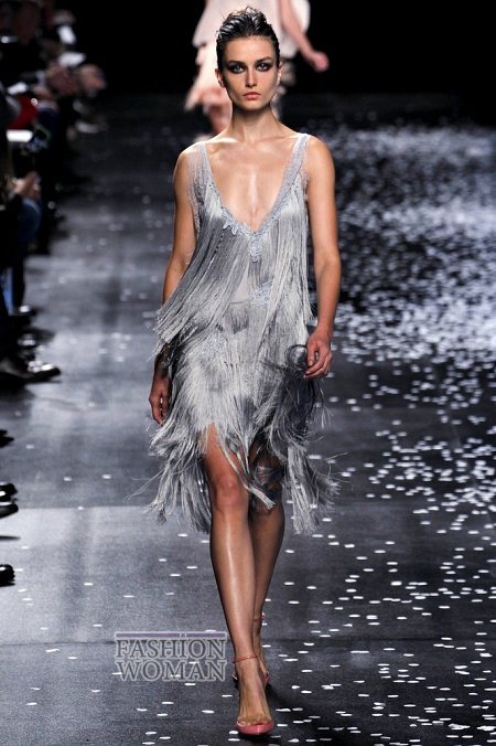 А начнем мы с платьев, украшенных бахромой. Как мы уже писали ранее, многие известные дизайнеры вновь акцентировали свое внимание на этом декоративном элементе и с успехом использовали его в своих коллекциях.