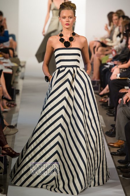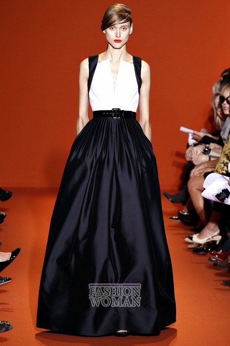 Черно-белое сочетание, очень популярное в этом сезоне, нашло свое отражение и в вечерней моде. Черно-белая графика украсила вечерние наряды Oscar de la Renta, Marc Jacobs и других.