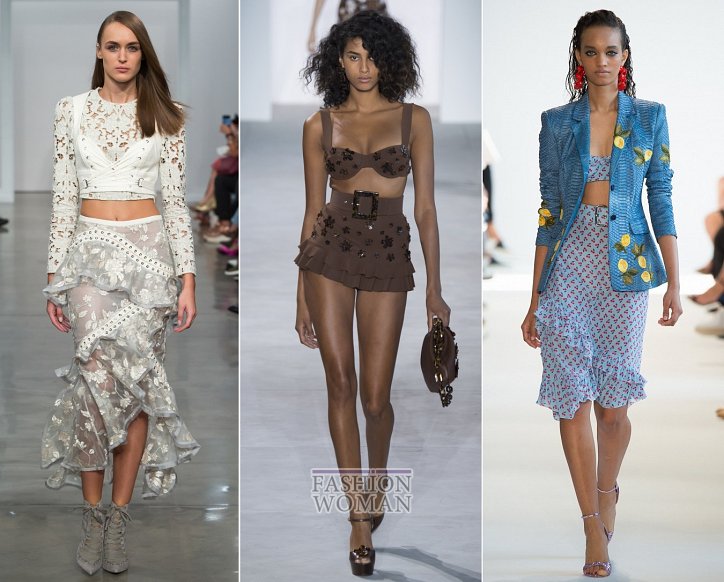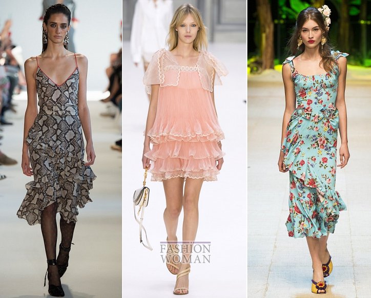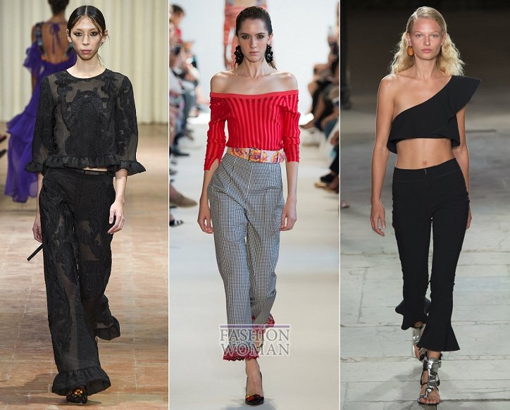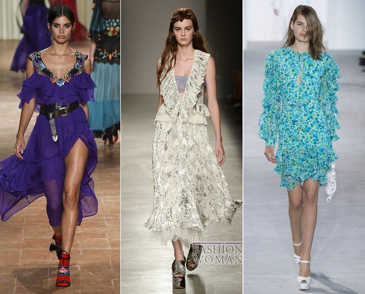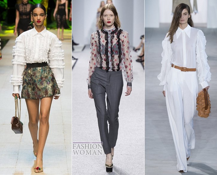 Кроме того в новом сезоне воланы и оборки украшают не только платья, модные юбки и сарафаны, но и пуловеры, брюки и даже аксессуары.