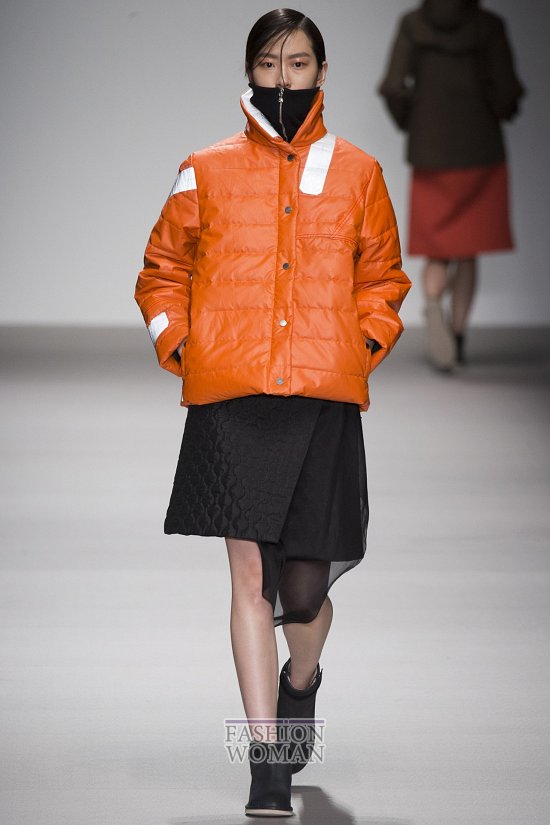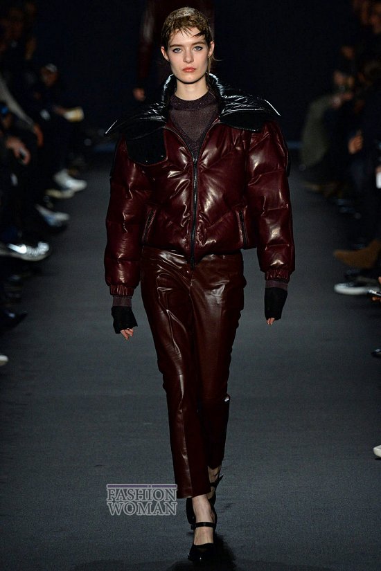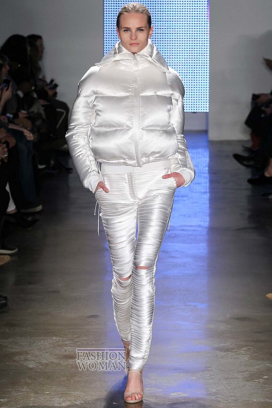 В топе оказались и пуховики из блестящих материалов. Причем модельеры используют не только нейлоновые или полиэстеровые ткани, обладающие легким перламутровым отливом, но и материалы с явно выраженным эффектом металлик. Такие модели есть в коллекциях Dion Lee, Moschino и Rag&Bone.