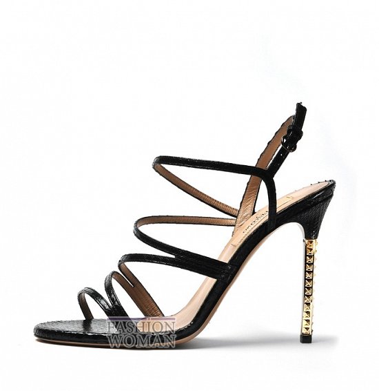 Акцент в коллекции сделан на декор и цвет. Вниманию модниц предлагаются стильные лодочки на высоком каблуке, босоножки на шпильке, ботильйоны с заклепками, серебряные и золотые туфли, сапоги в жокейском стиле, классической формы сумки и клатчи.