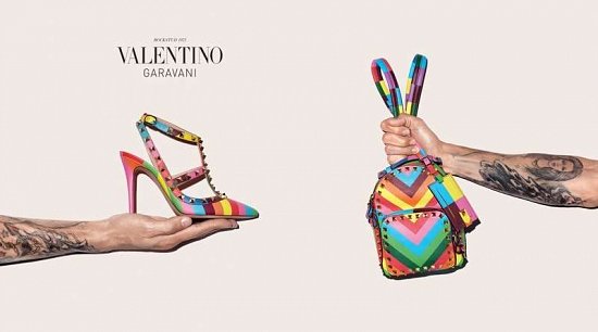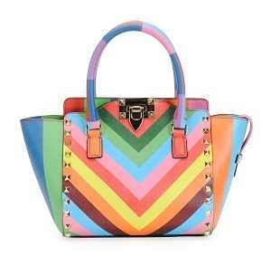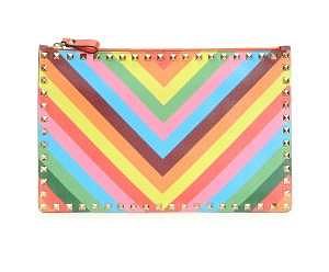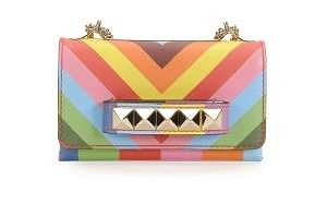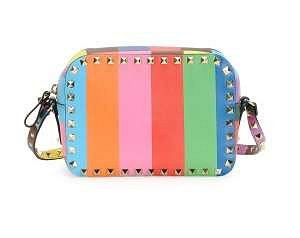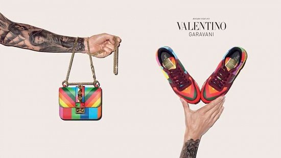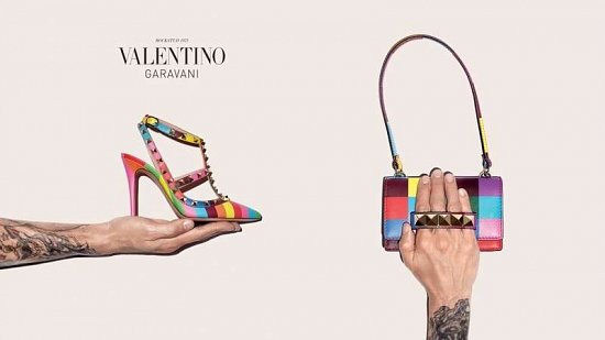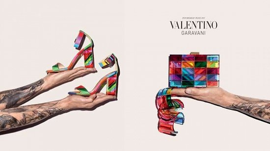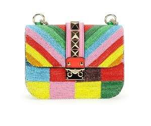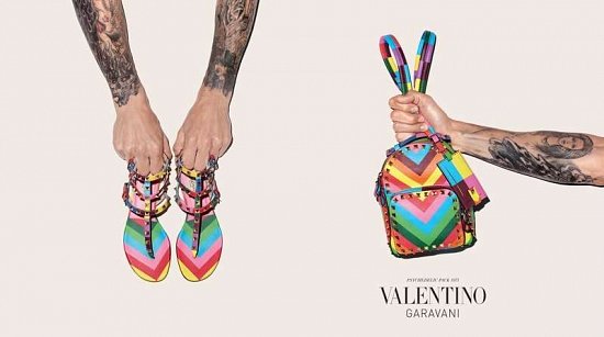 Коллекция аксессуаров Valentino Resort 2015 получила название ROCKSTUD 1973 – «дань уважения» стилю ретро и безумно популярной будущей осенью эпохе семидесятых. В нее вошли небольшие повседневные и вечерние сумочки, широкие браслеты, босоножки и кроссовки, украшенные радужными психоделическими принтами: вертикальными и напоминающими шевроны полосками и квадратами. На некоторых моделях сумок и браслетов принт успешно заменил бисер и плексиглас, создавая дополнительный объем и интересные переливы света. Дополняет яркую и удивительную «картину» «рокерская» металлическая фурнитура.
