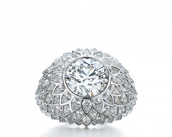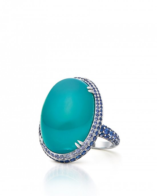 Изюминка коллекции ювелирных украшений Tiffany & Co. The Art of the Sea - роскошное кольцо, инкрустированное вручную четырехстами голубыми бриллиантами.