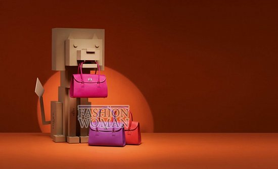В фотосессии приняли участие забавные картонные фигурки и яркие и стильные сумки, шейные платки, очки, кошельки и ремни.