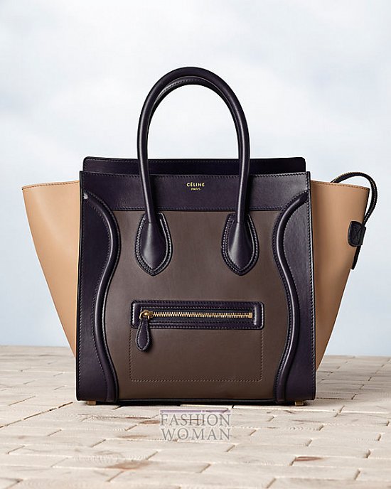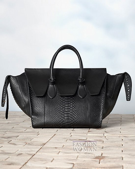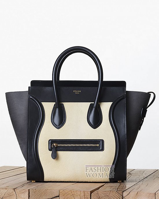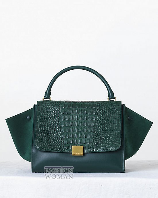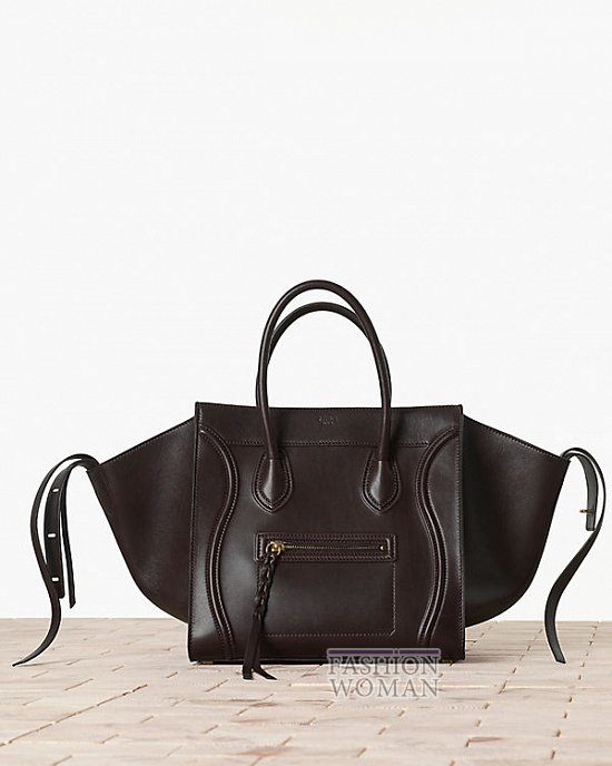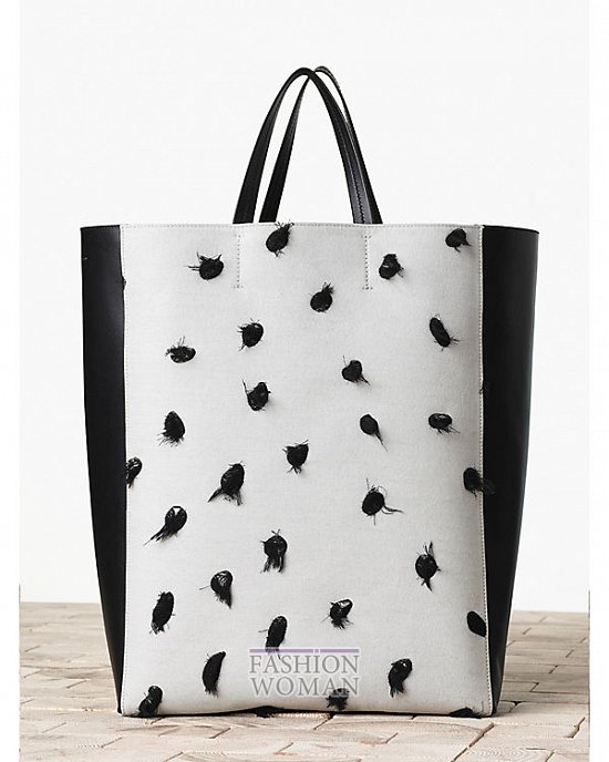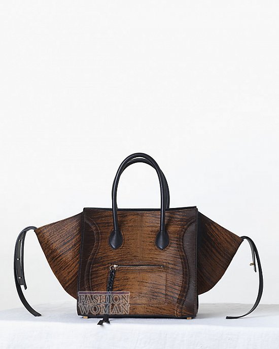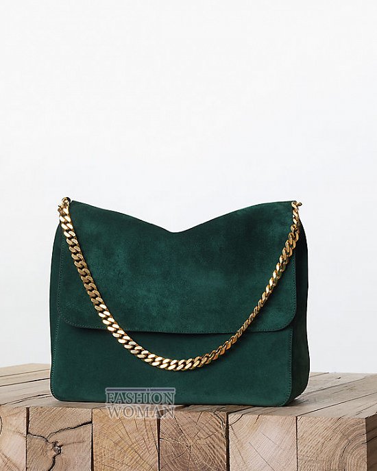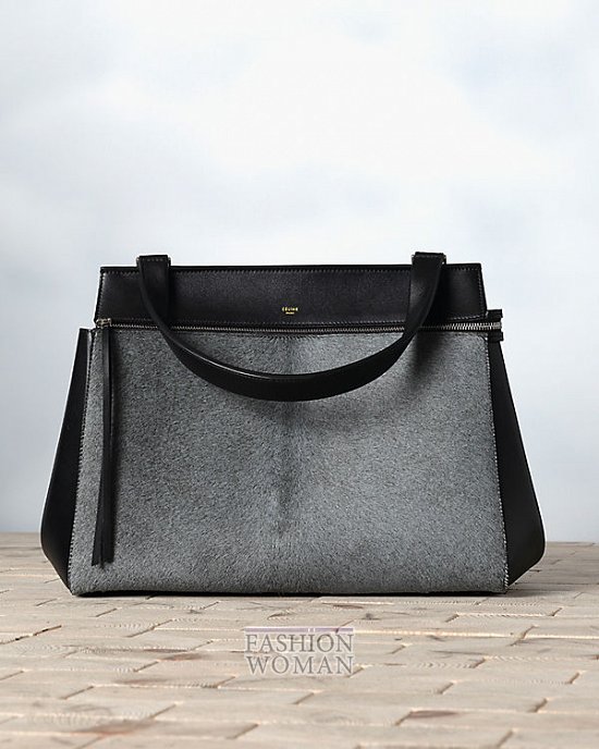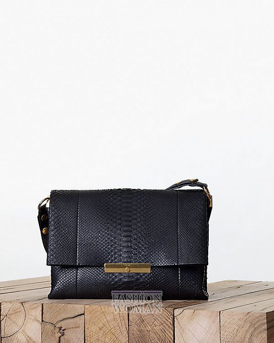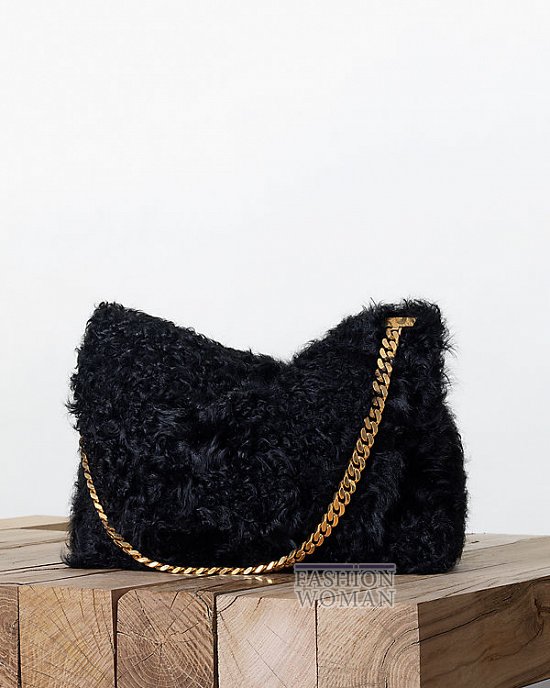 Не стала исключением и новая коллекция сумок Celine. В ней представлен большой выбор разнообразных по форме, размеру и стилю сумок, выполненных из телячьей и змеиной кожи, замши, текстиля, шерсти, меха и овчины. Что же касается цветовой палитры, то она представлена черным, коньячным, темно-синим, бежевым, изумрудным, рубиновым и жемчужно-серым цветами.
