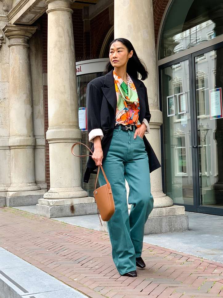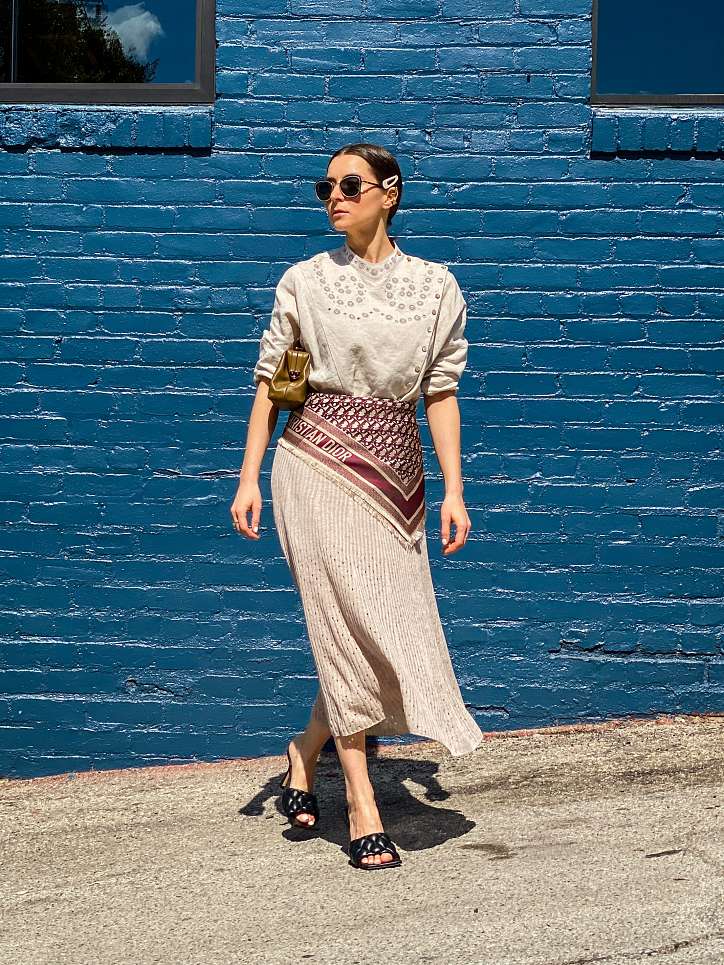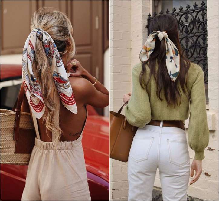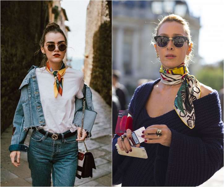 Примеры, как носить шелковый платок в 2023 году от героинь стритстайла