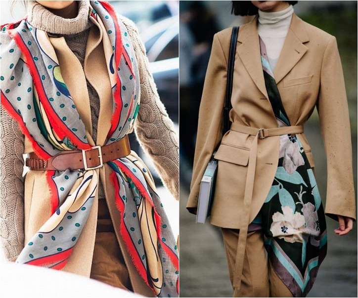 Просто накиньте платок поверх свитера, жакета или пальто, подпоясайтесь ремнем, и вы как будто только сошли с подиума. Дизайнеры используют этот прием, что бы расставить стильные акценты в образе.