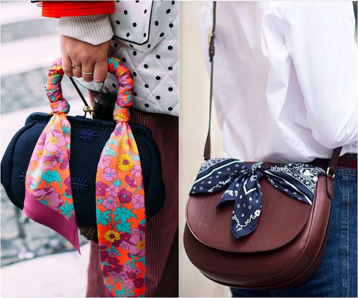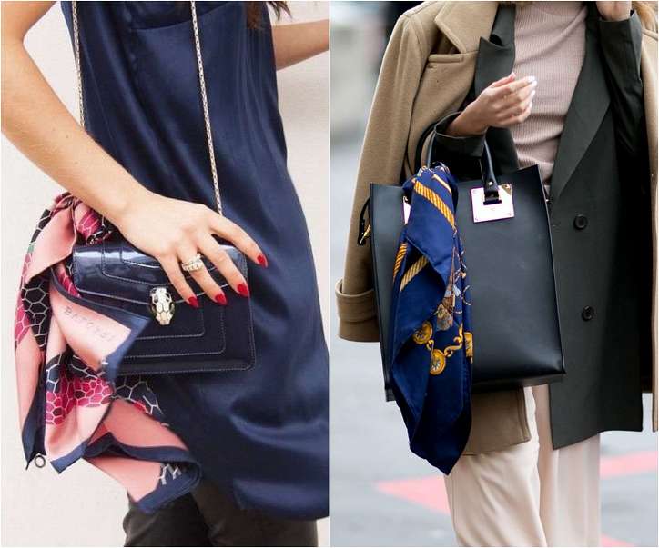 Шелковый платок способен обновить вашу повседневную сумку - просто повяжите его на ручку.