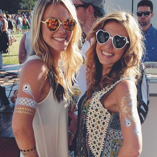 Новому всплеску популярности временных металлических тату мы обязаны не только модным брендам, но и знаменитостям, которые уже вовсю их демонстрируют. С флеш-татуировками уже успели засветиться Бейонсе, Алессандра Амбросио, а также множество гостей фестиваля Coachella.