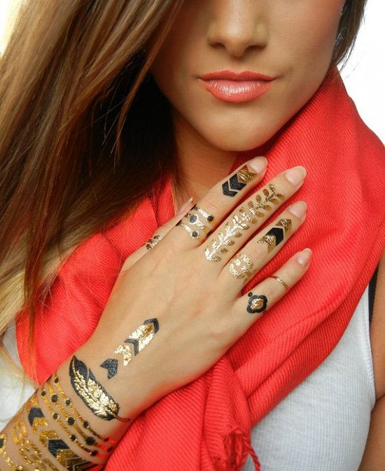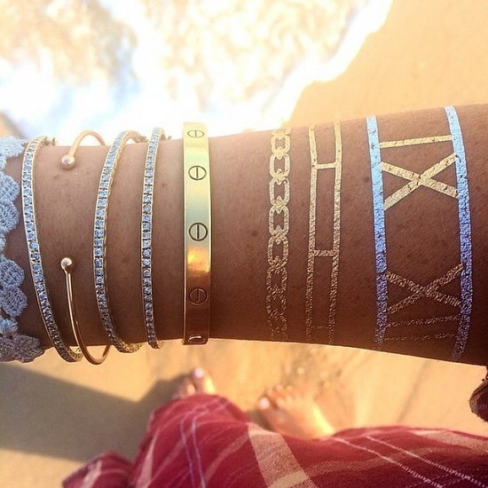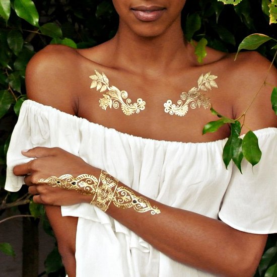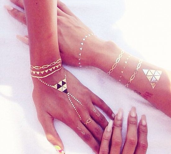 Временные татуировки, имитирующие ювелирные украшения из золота и серебра (Metallic Flash Tattoos) - один из модных трендов этого сезона.