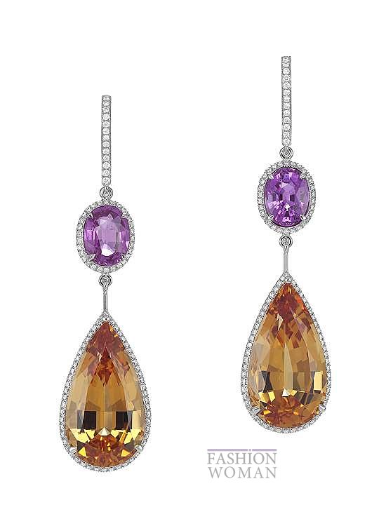 Изысканные серьги, кольца и колье из золота украшены драгоценными и полудрагоценными камнями.