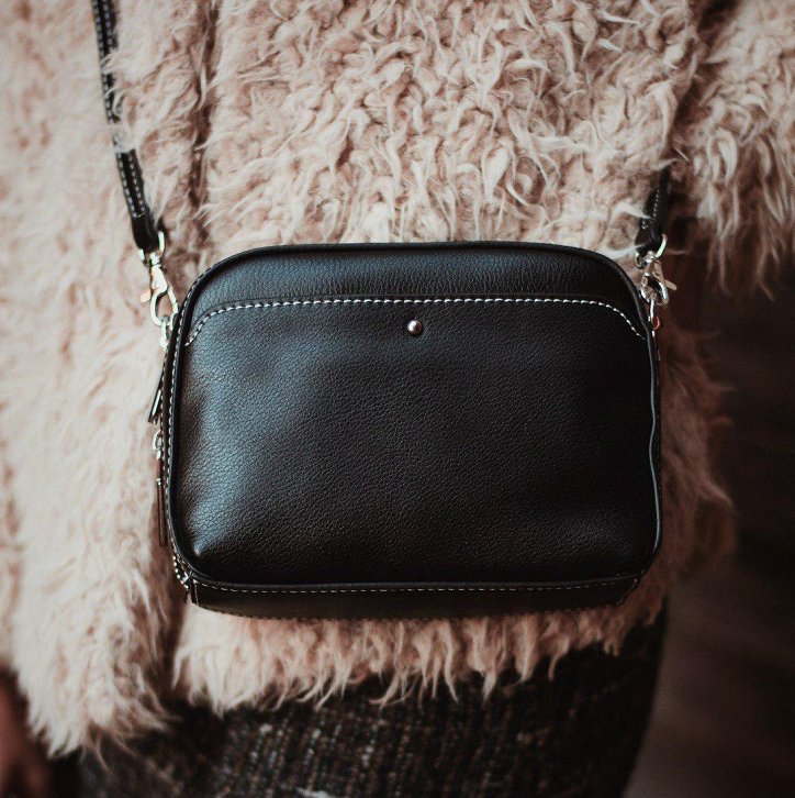 Мелькая черная сумочка на длинном ремне – это модно и удобно. Такая сумка crossbody – настоящая палочка-выручалочка: пригодится в любой ситуации. А это значит, что она просто обязана быть в гардеробе у каждой женщины.