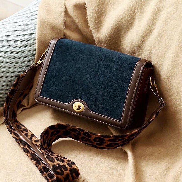 Леопард» прочно обосновался на вершине модного Олимпа. Если щеголять в леопардовом пальто или платье вы еще не готовы морально – начните знакомство с этим модным хищником с сумочки. Украшенный трендовым принтом широкий ремень на этой хрупкой красавице прекрасно сочетается с коричневой кожей и замшевой вставкой.
