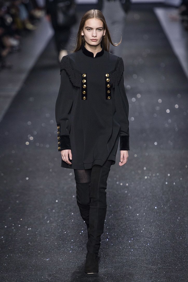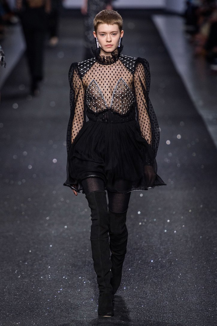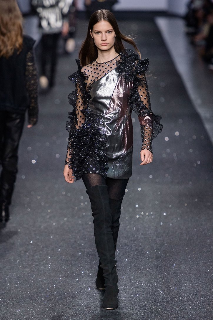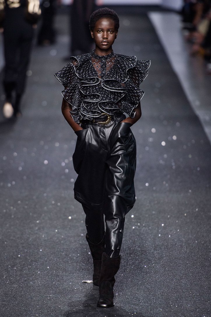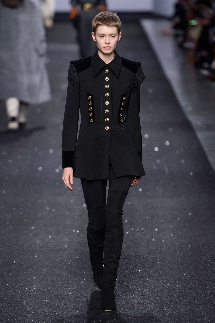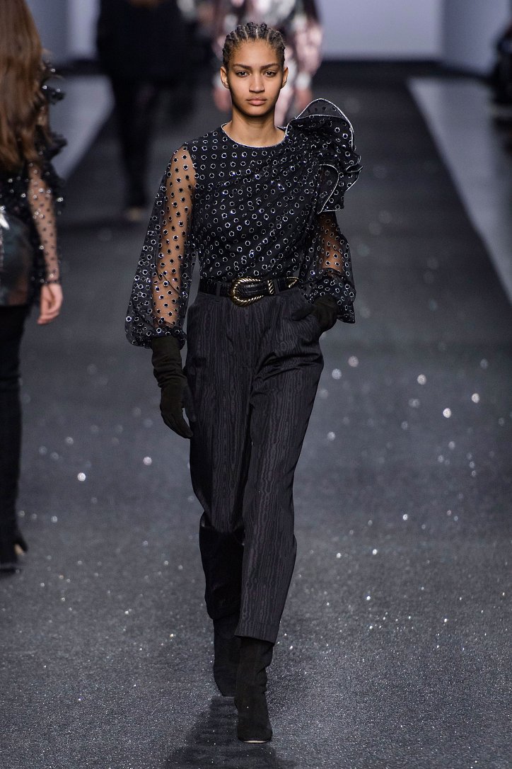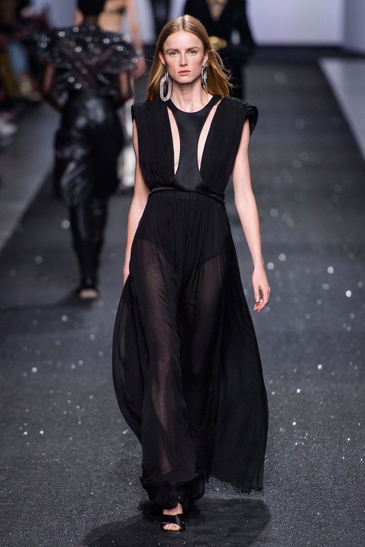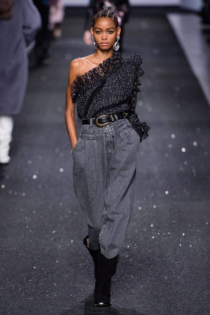 Взяв за основу стиль western и черно-белую палитру, Альберта Ферретти создала целую линейку образов, в которых объемные косухи и пальто миди соседствовали с брюками на высокой талии и уютными свитерами, а главными аксессуарами стали сапоги-казаки и фетровые шляпы. Вечерний блок был предсказуемо роскошен: переливы серебра и золота чередовались с блеском бисера и пайеток, кружевами и полупрозрачным шифоном.