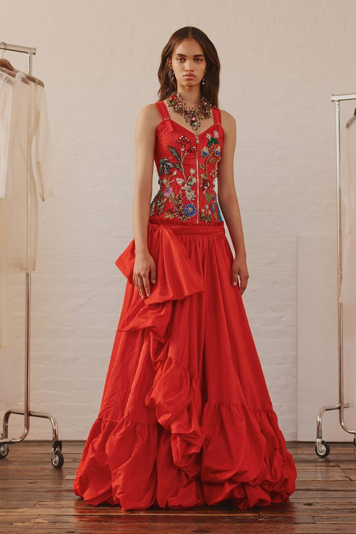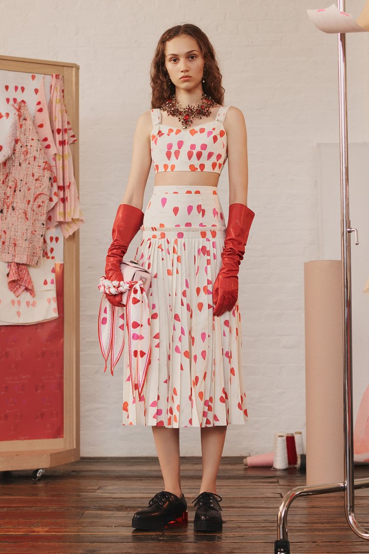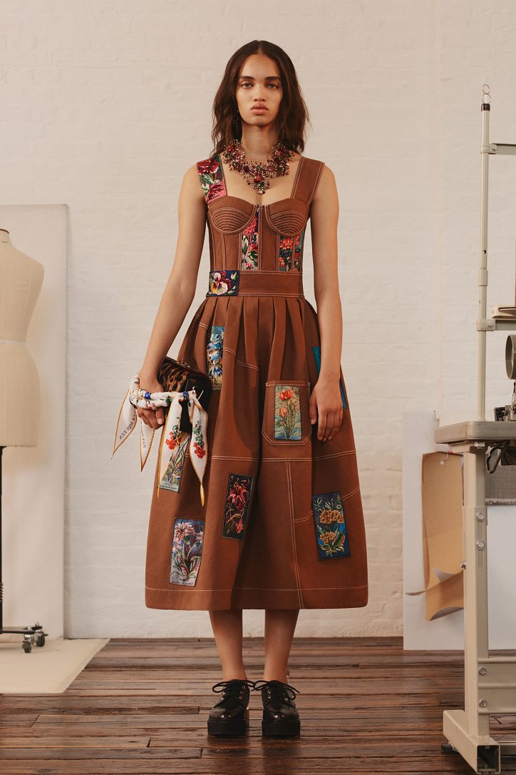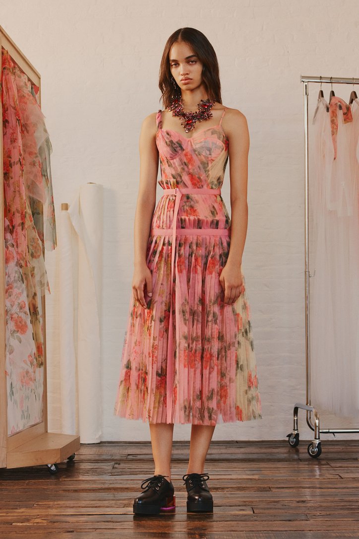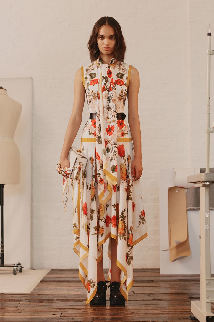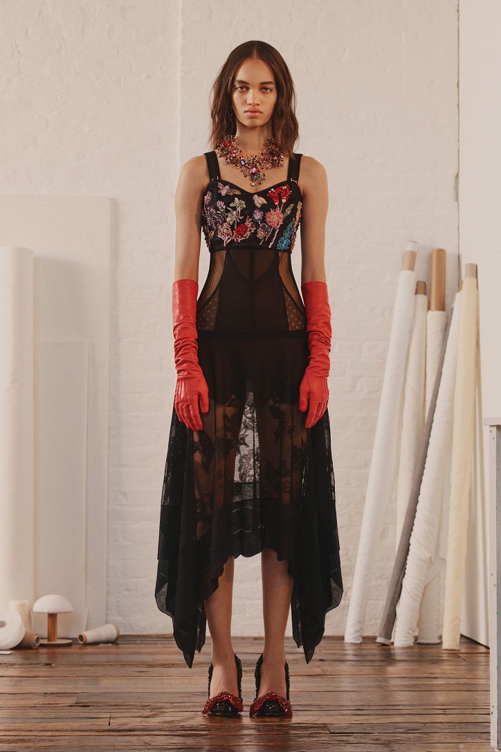 Сара Бертон представила новую круизную коллекцию вдохновленную весной в британской деревне. Ее основу составили нежные платья усыпанные цветами, элегантные тренчи и пальто с принтами, объемные свитера с вышивкой, комплекты в ретро-стиле состоящие из топа-бра и юбки миди. Дополняли образ яркие и заметные аксессуары - высокие перчатки, обувь усыпанная кристаллами, а также крупные броши и колье.