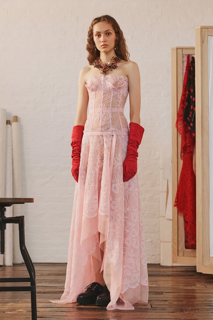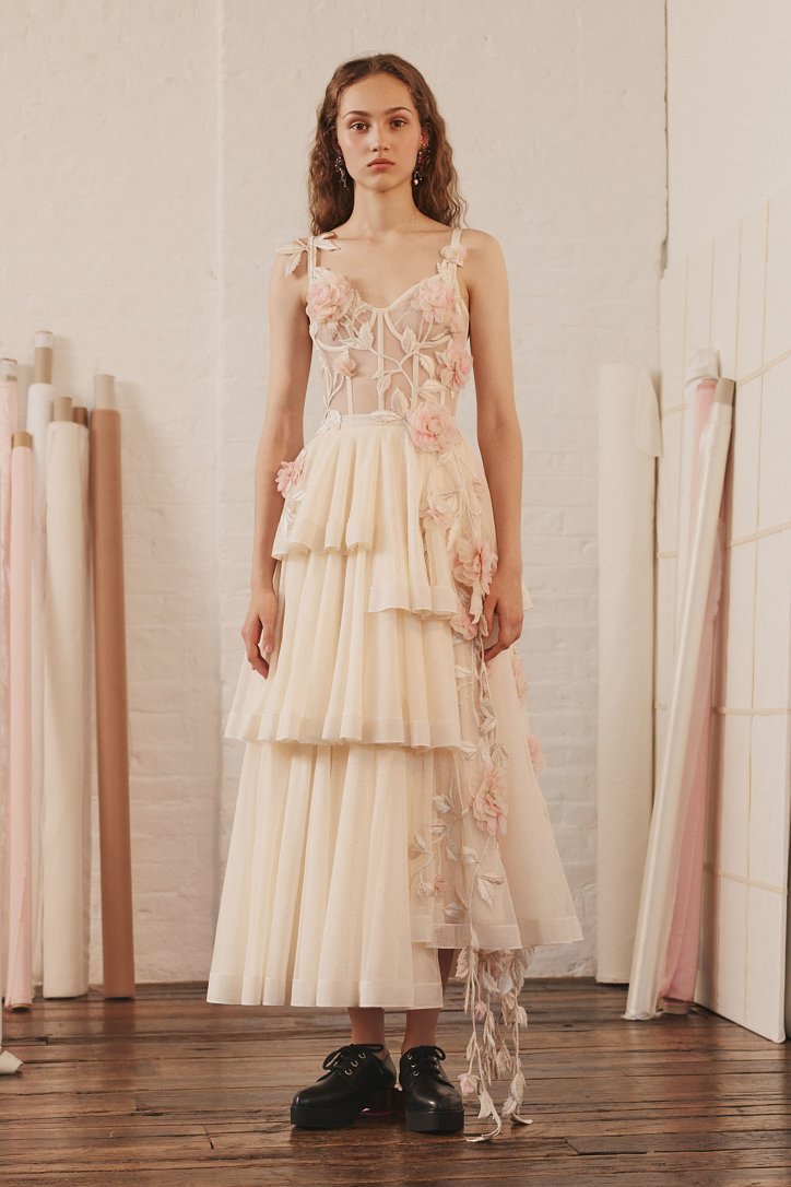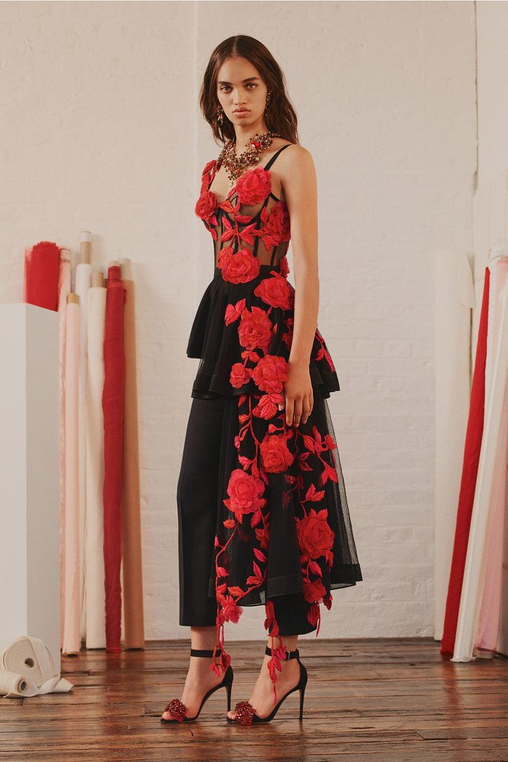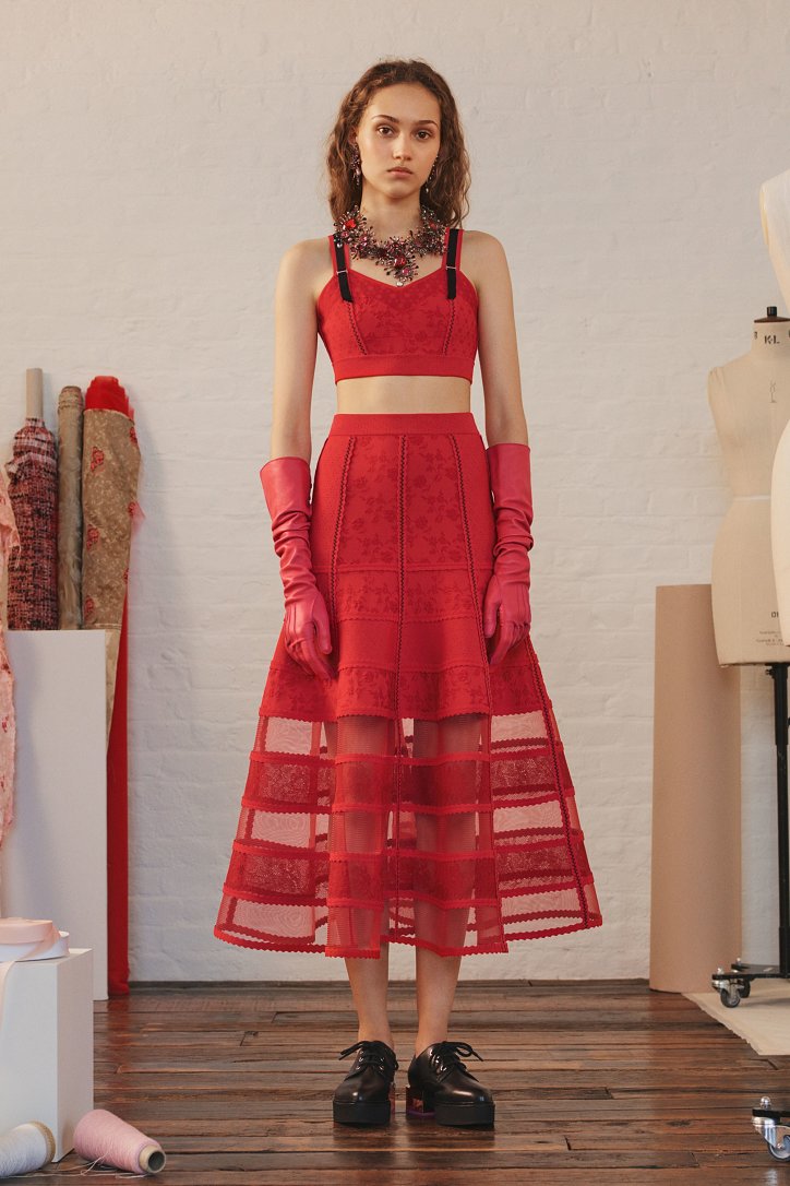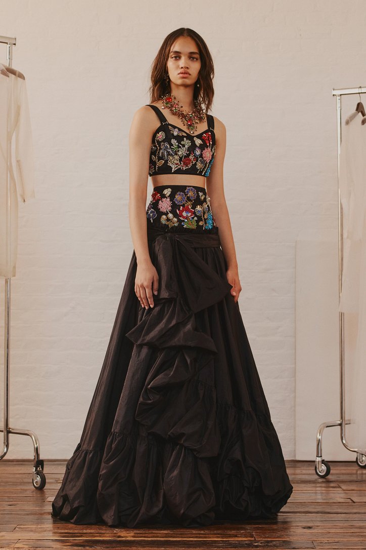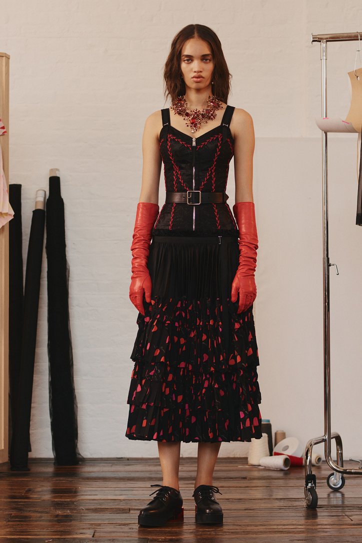 Сара Бертон представила новую круизную коллекцию вдохновленную весной в британской деревне. Ее основу составили нежные платья усыпанные цветами, элегантные тренчи и пальто с принтами, объемные свитера с вышивкой, комплекты в ретро-стиле состоящие из топа-бра и юбки миди. Дополняли образ яркие и заметные аксессуары - высокие перчатки, обувь усыпанная кристаллами, а также крупные броши и колье.