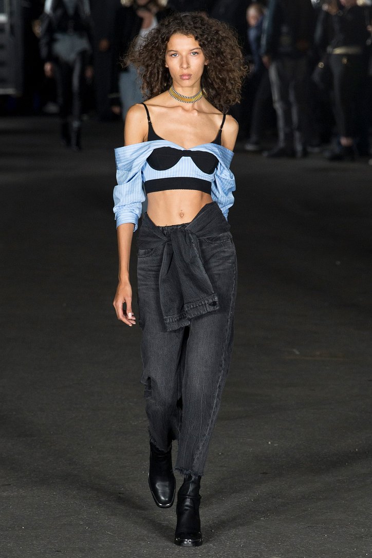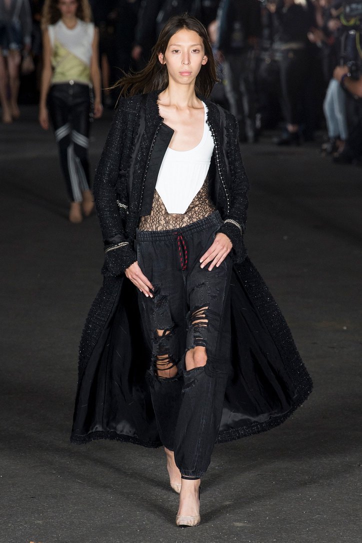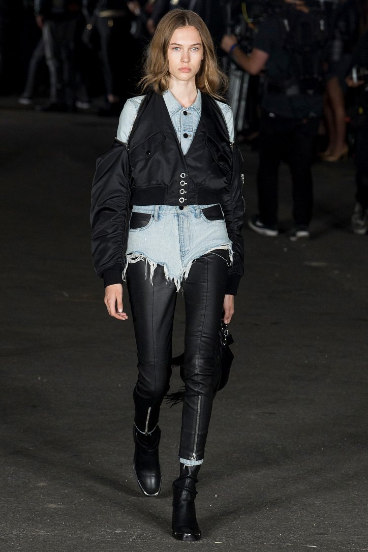 Кружева и кожа, вариации на тему денима и тонкий трикотаж, множественные вырезы-разрезы во всех мыслимых и немыслимых местах и брючные костюмы с молниями вместо стрелок, модные кроп-топы и корсеты, гибрид шорт из денима и лосин из кожи, мини-платья и чулки-сеточки, прозрачная обувь и сумки с бахромой, «полная деконструкция» вперемешку с бельевым стилем и спортом - скучать на показах у Alexander Wang не приходится!