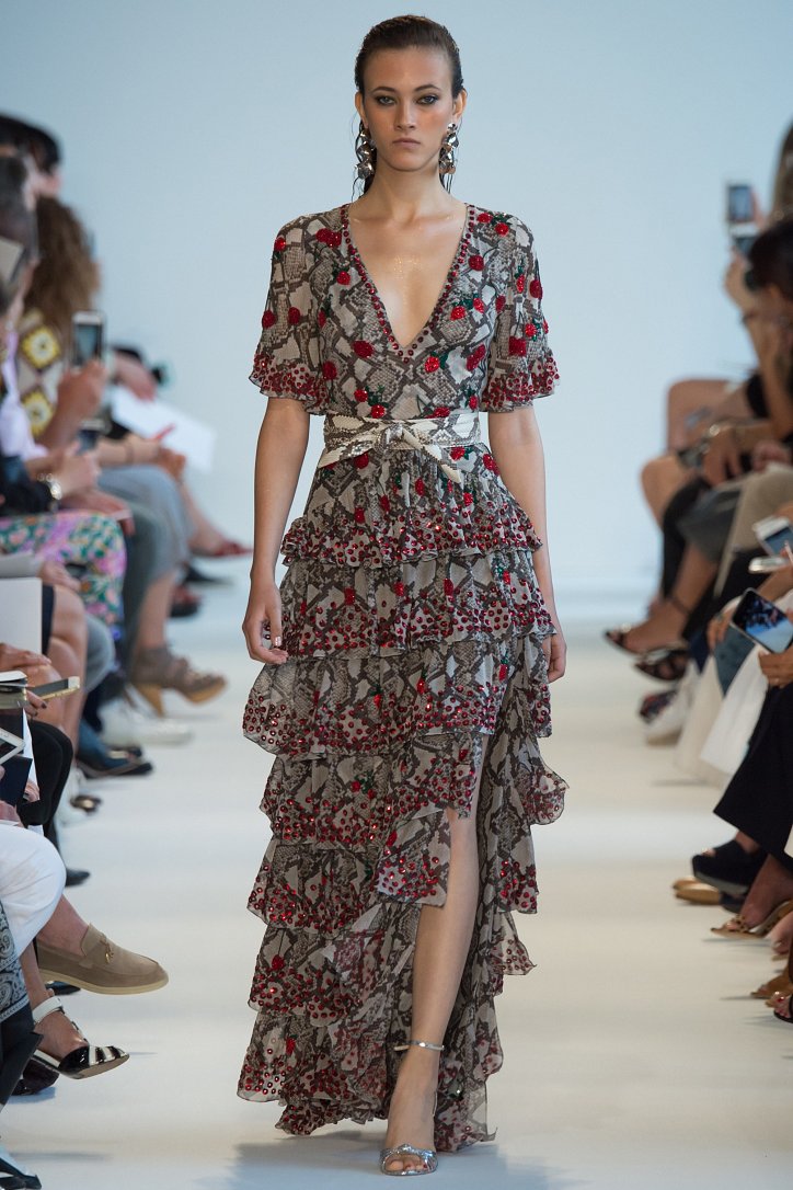Джозеф Альтузарра в своей новой весенне-летней коллекции продолжает воспевать женственность и сексуальность. Героиня его коллекции нежная и чувственная девушка предпочитающая легкие платья с оборками, топы с открытыми плечами, принтованные юбки-карандаш, элегантный цветной трикотаж, и приталенные жакеты. Завершающим штрихом практически каждого образа является ремень или пояс - однотонный или с принтом добавляющий образу еще больше женственности и очарования.