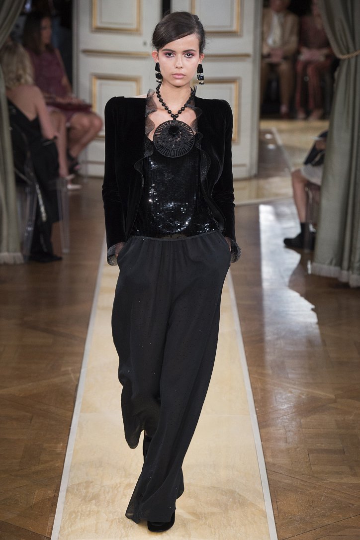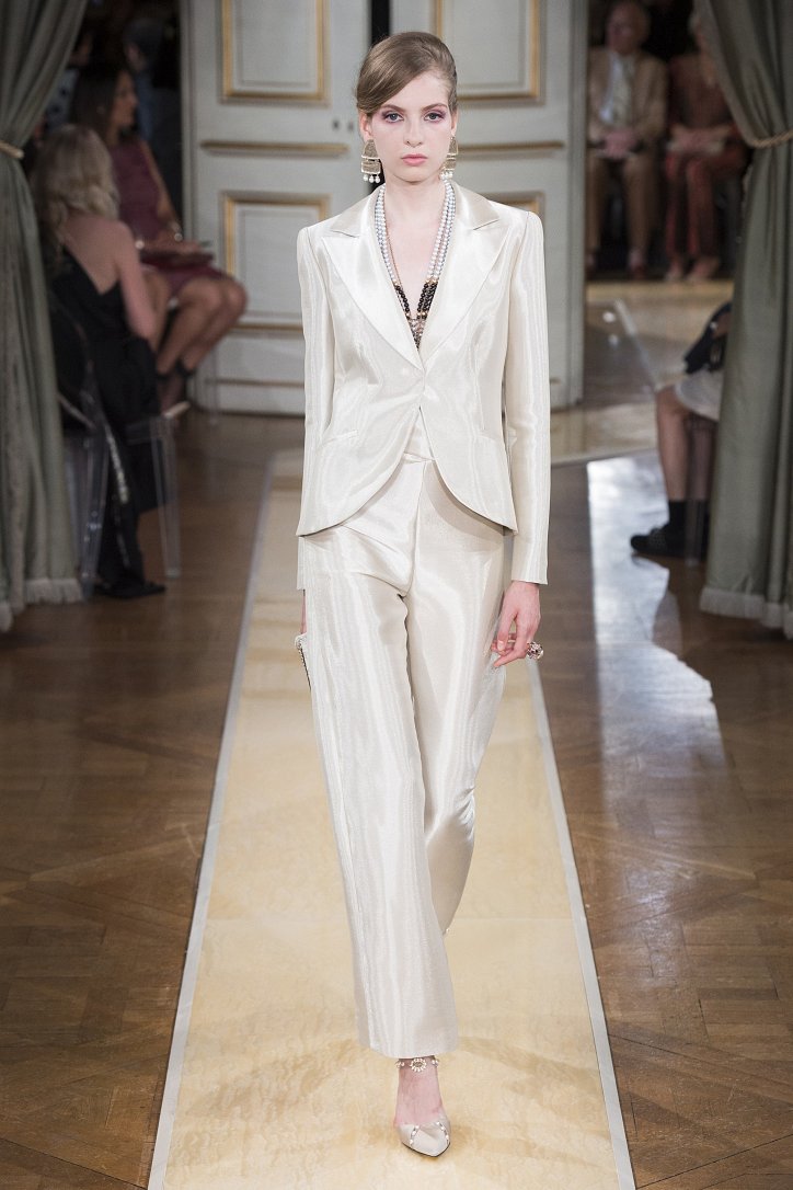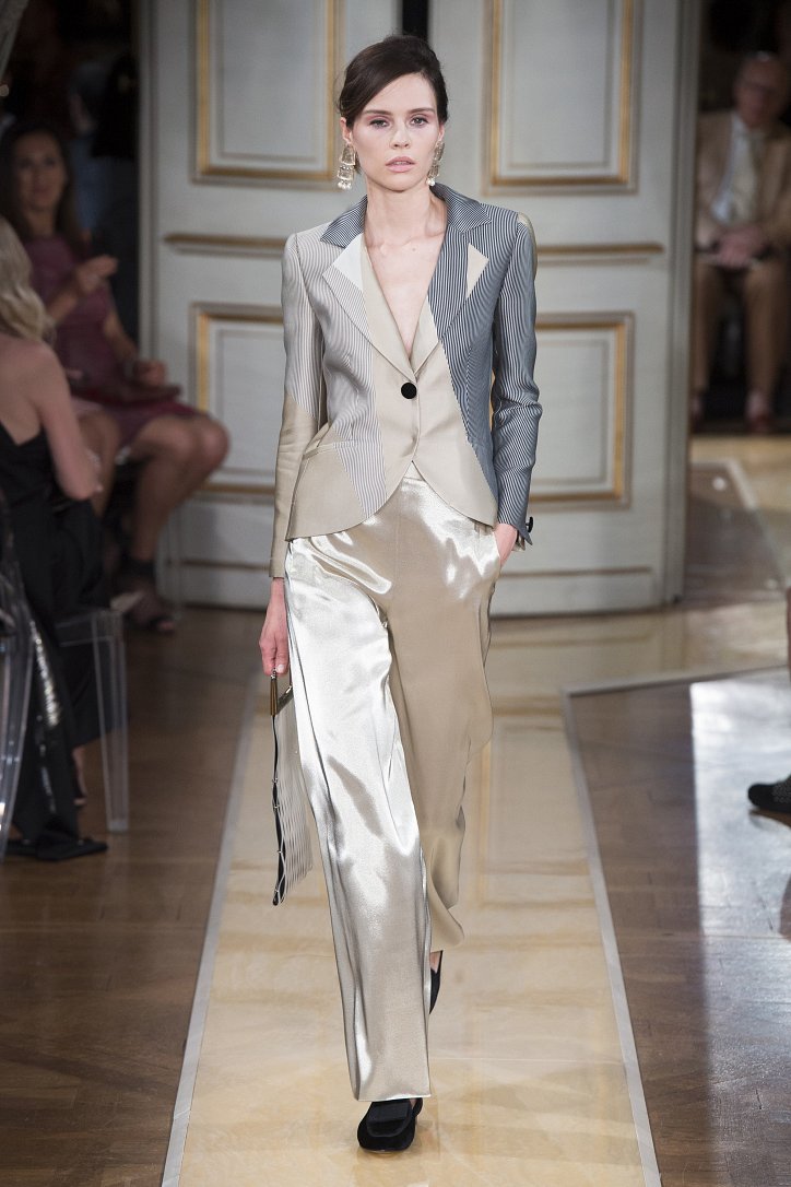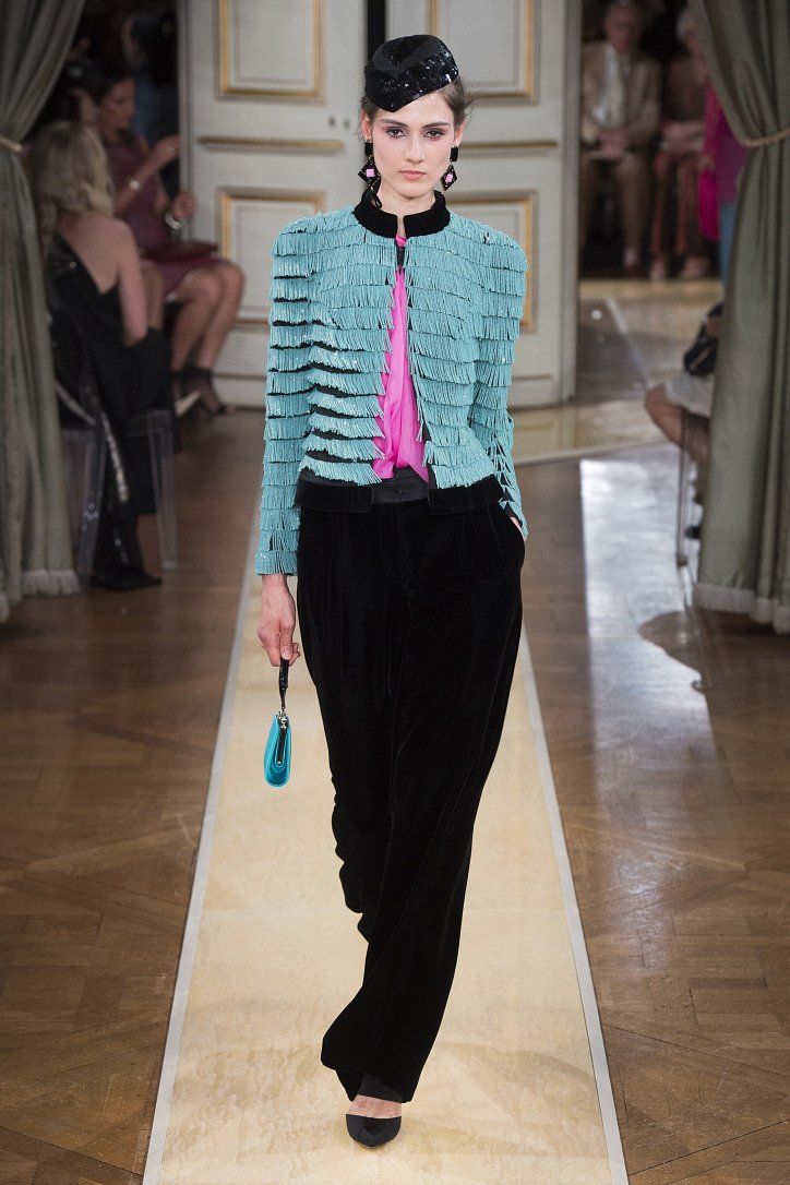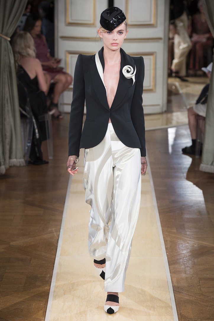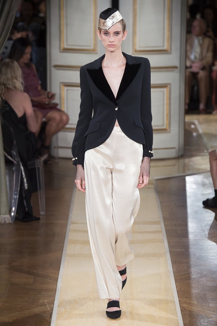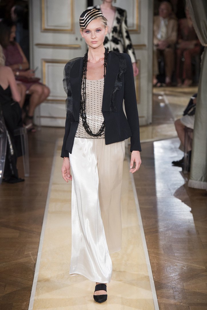 На показ своей новой кутюрной коллекции Джорджио Армани пригласил гостей в итальянское посольстве в Париже. Здесь вниманию публики были предложены элегантные брючные костюмы, изысканные вечерние платья, шелковые, рубашки, яркие летящие платья и кейпы.