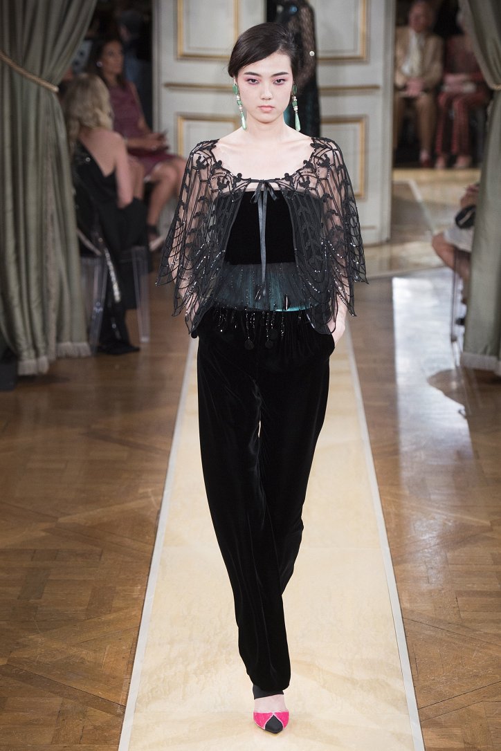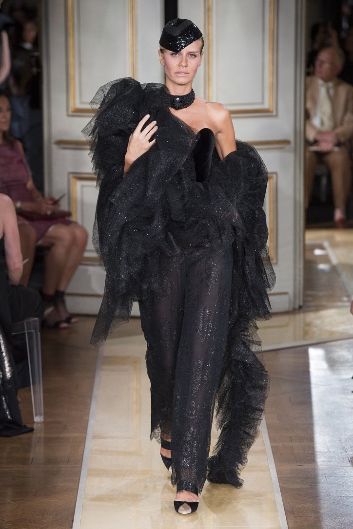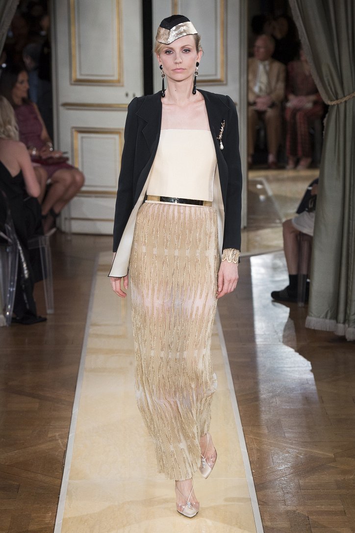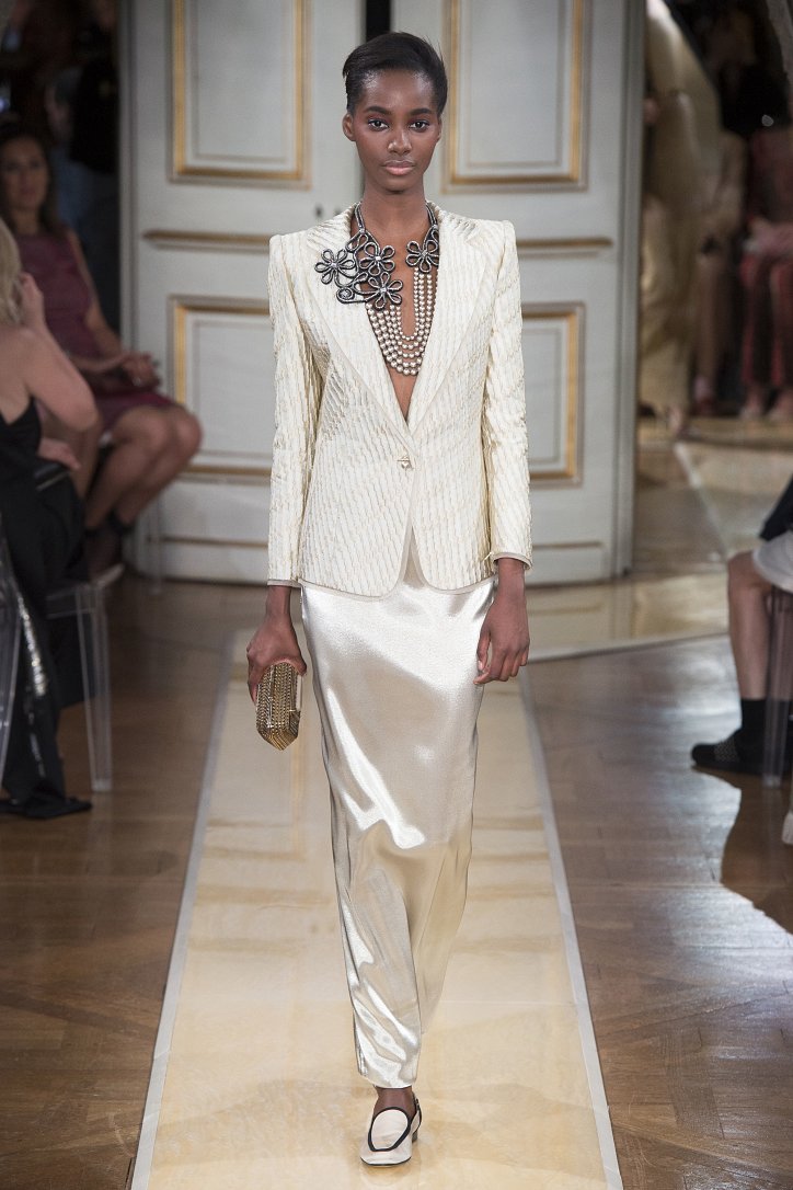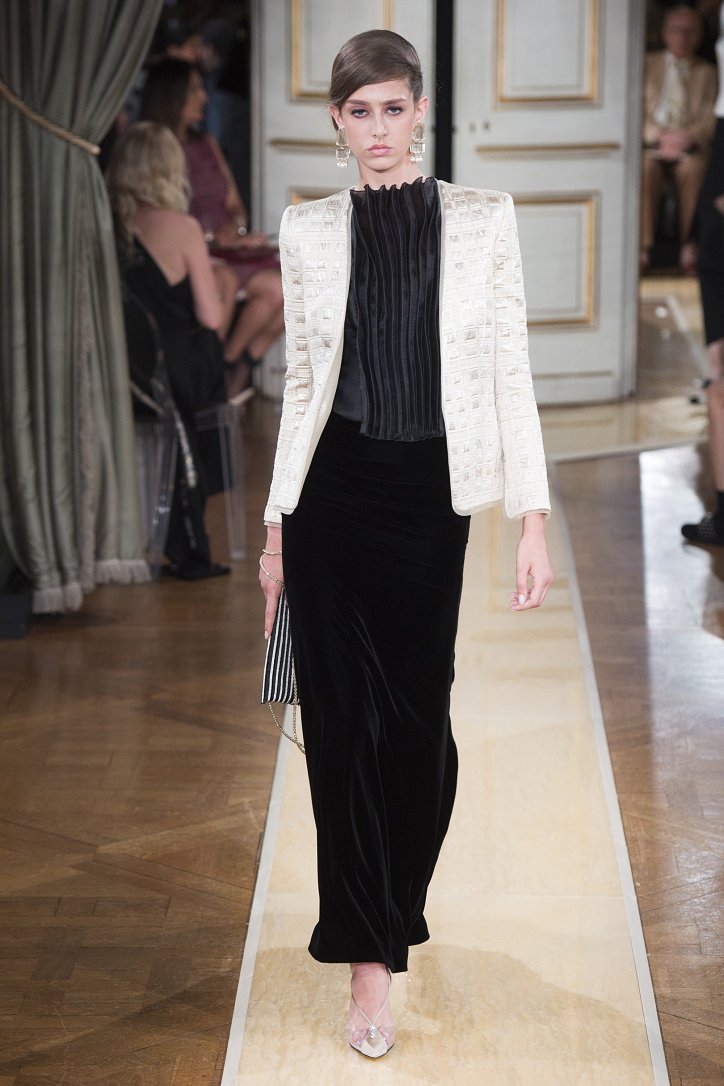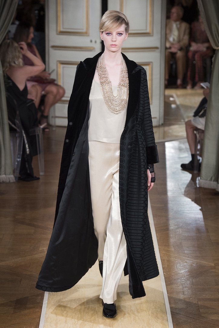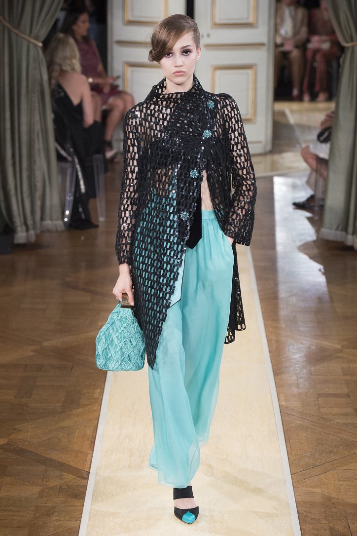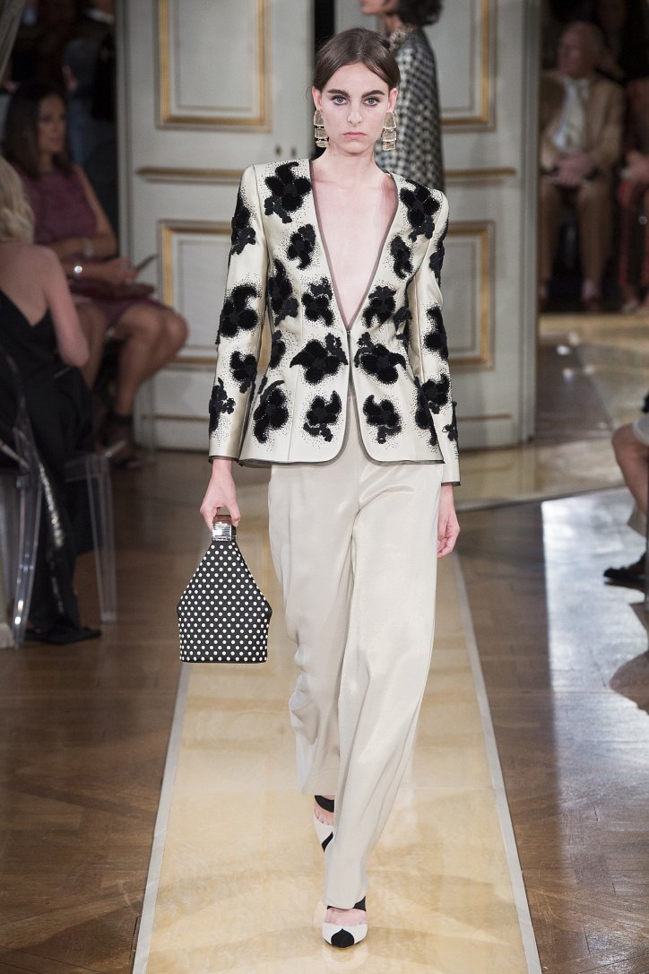 На показ своей новой кутюрной коллекции Джорджио Армани пригласил гостей в итальянское посольстве в Париже. Здесь вниманию публики были предложены элегантные брючные костюмы, изысканные вечерние платья, шелковые, рубашки, яркие летящие платья и кейпы.