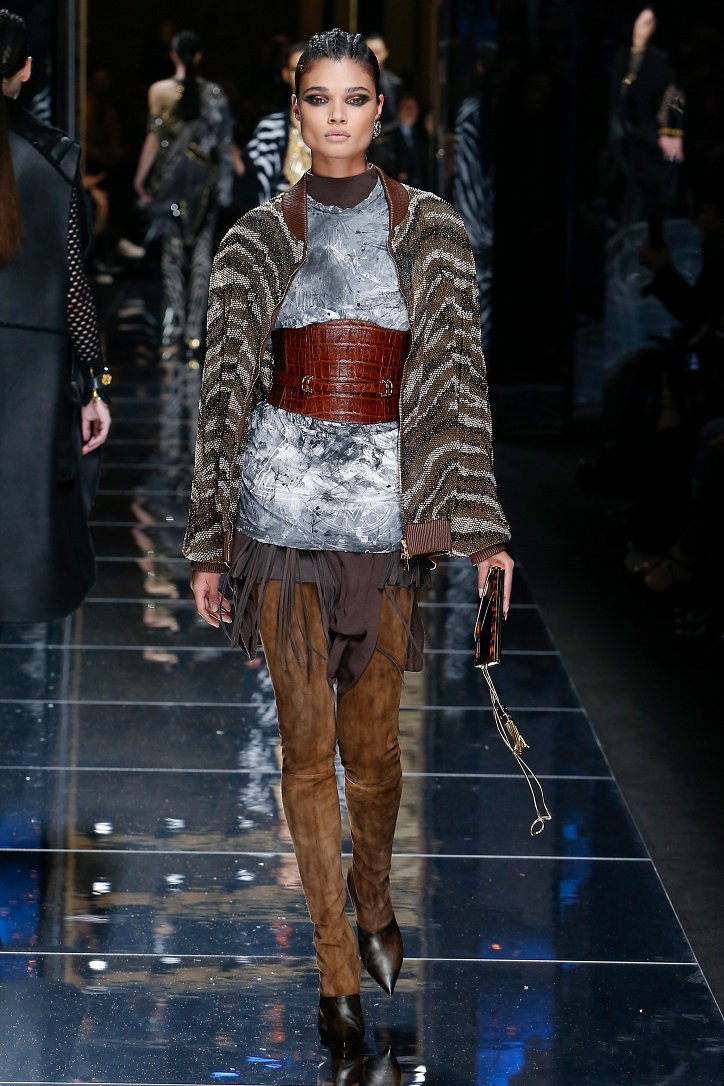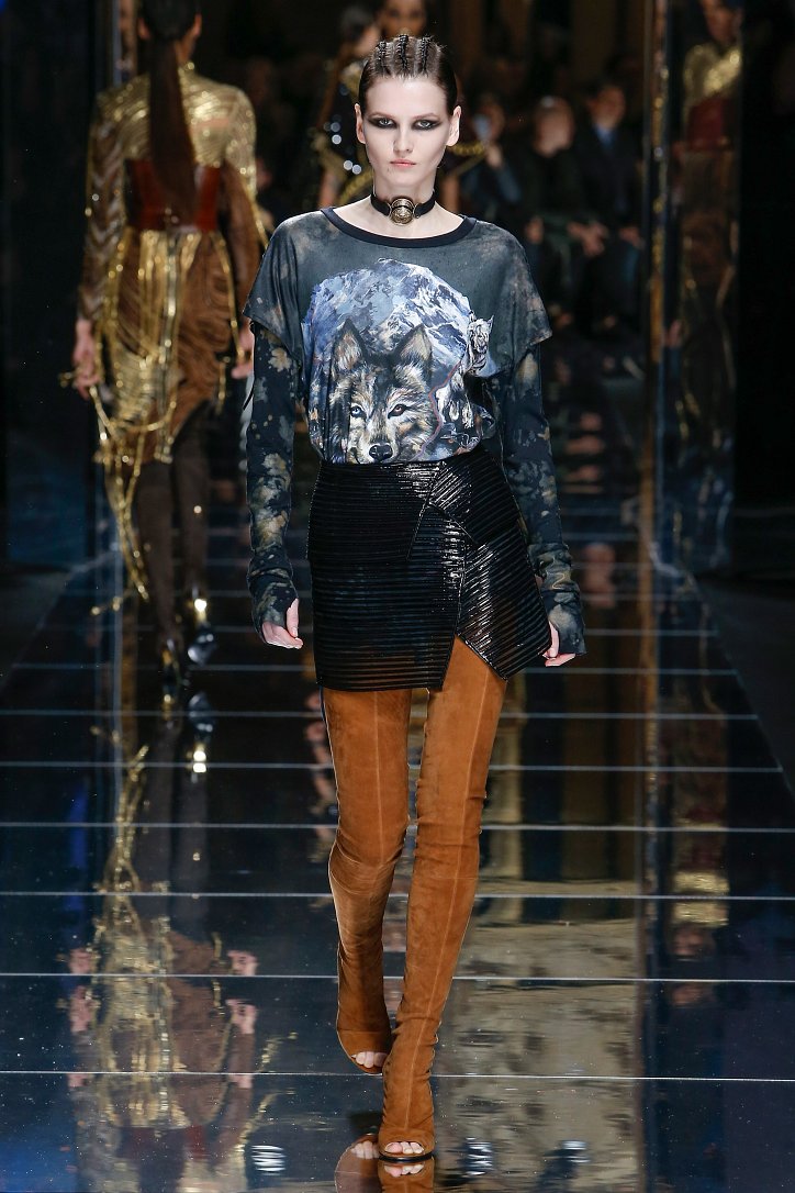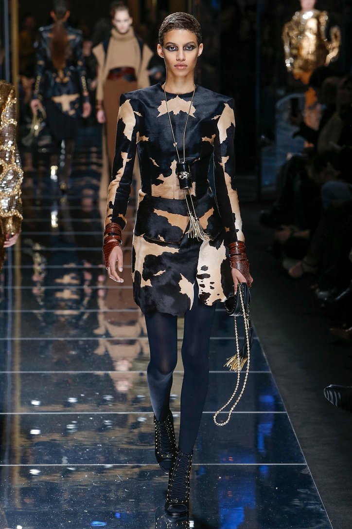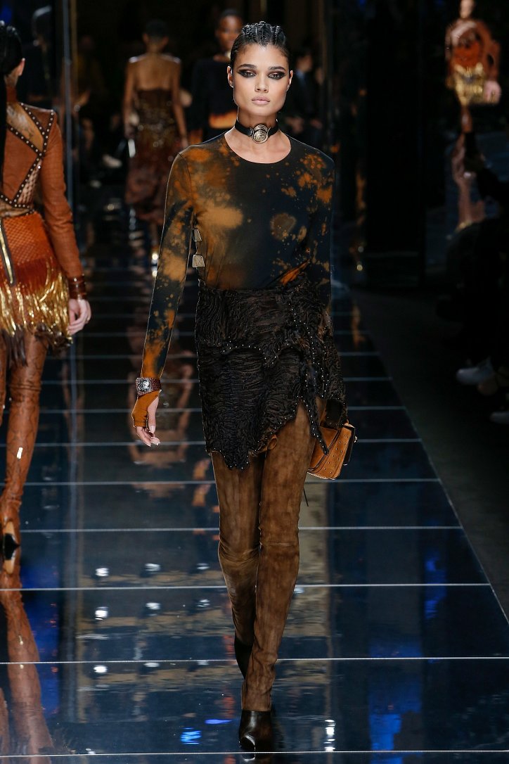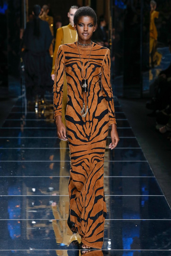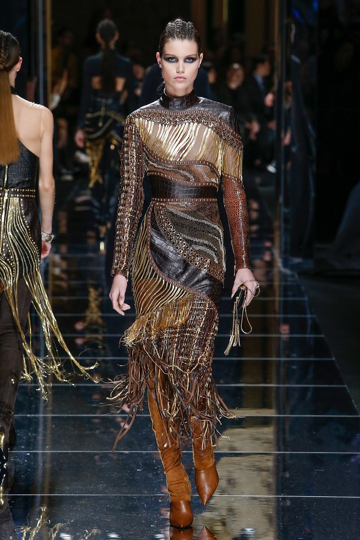 Феминизму – да, розовому цвету – нет! На показе Balmain осень-зима 2017-2018 по подиуму дефилировали современные амазонки – в довольно агрессивных нарядах, со «свирепым» мейк-апом и прическами. Размышляя о возврате к природе и о женской силе, Оливье Рустен создал коллекцию, которая как нельзя лучше иллюстрируют современное понятие «сильная женщина»: она богата и носит вещи «от кутюр», любит рок-н-ролл и эпатаж. Это для нее дизайнер создал брюки из замши и «хищные» туники в стиле пэчворк. Это их он намерен удивить оригинальностью фасонов и силуэтов, разнообразием декоративных элементов и богатством материалов, среди которых – бархат и кожа рептилий, сетка и стрейчевый тюль, замша и жаккард.