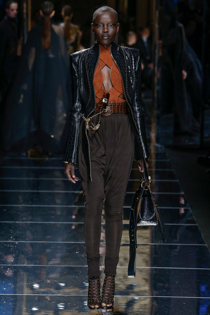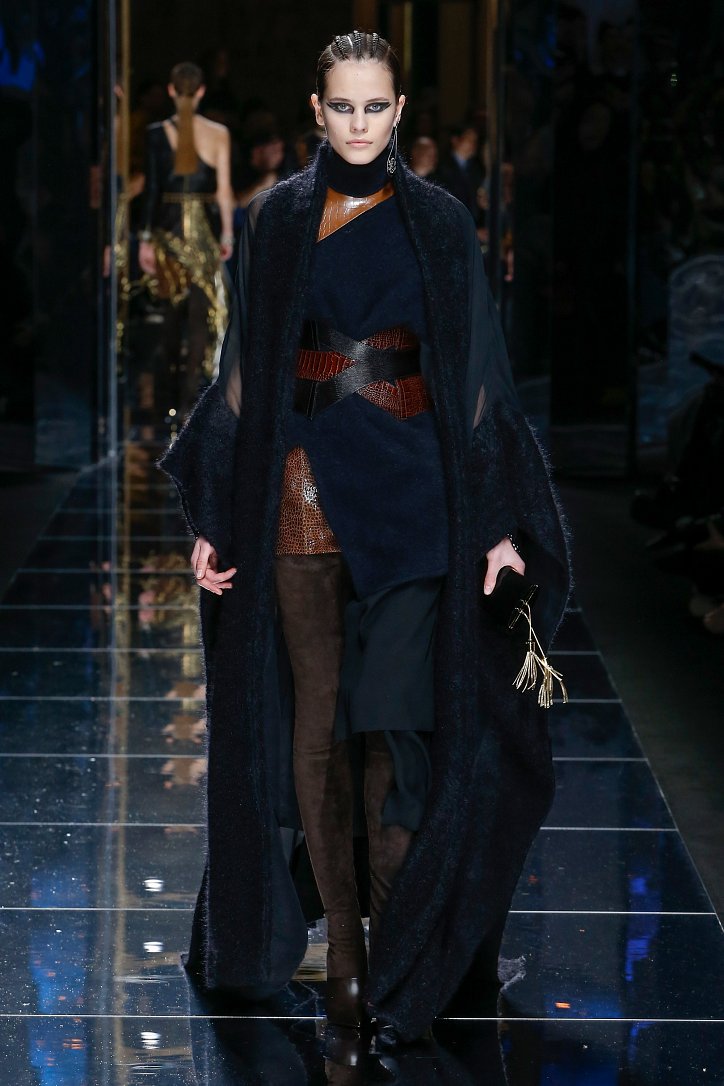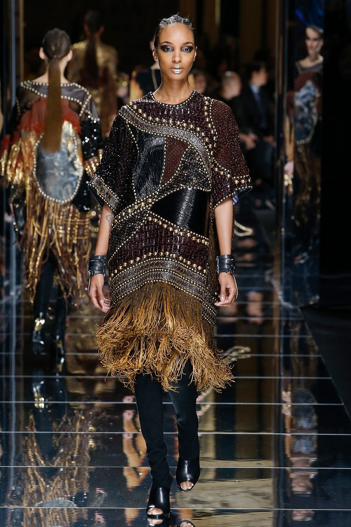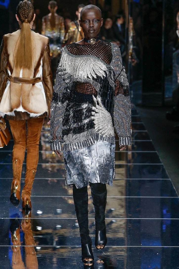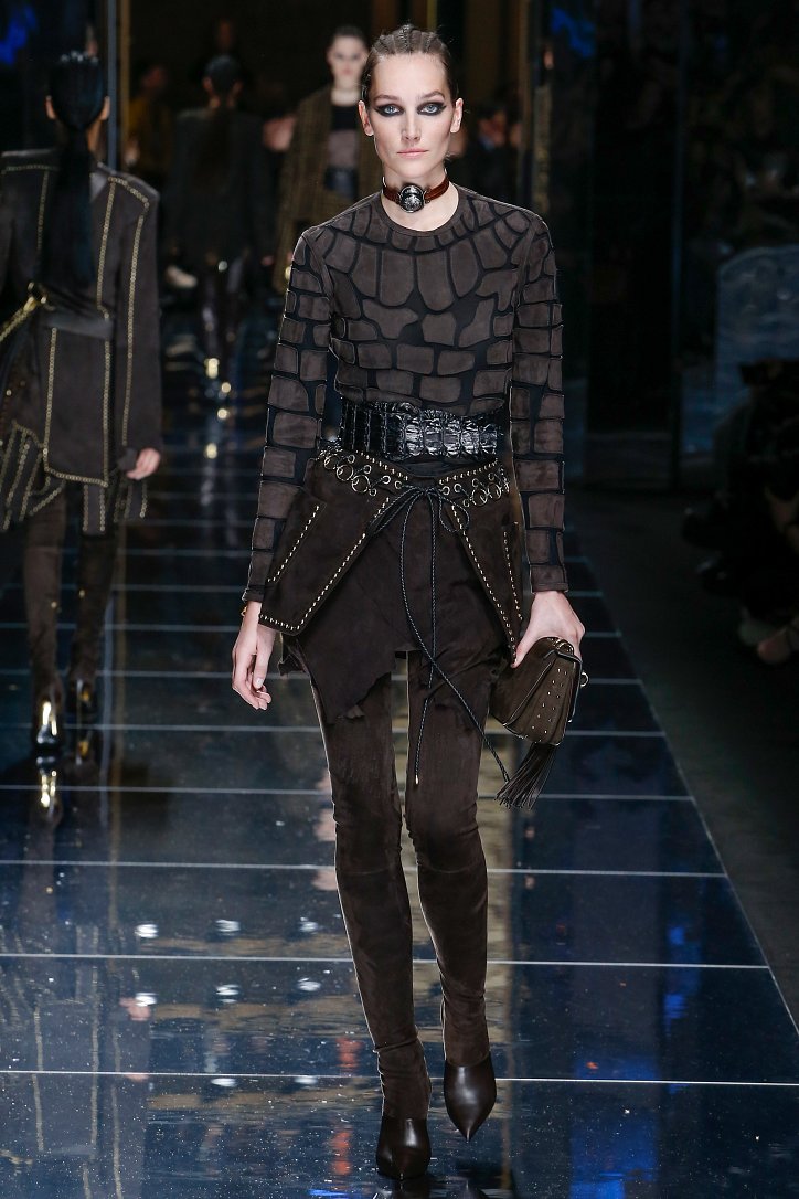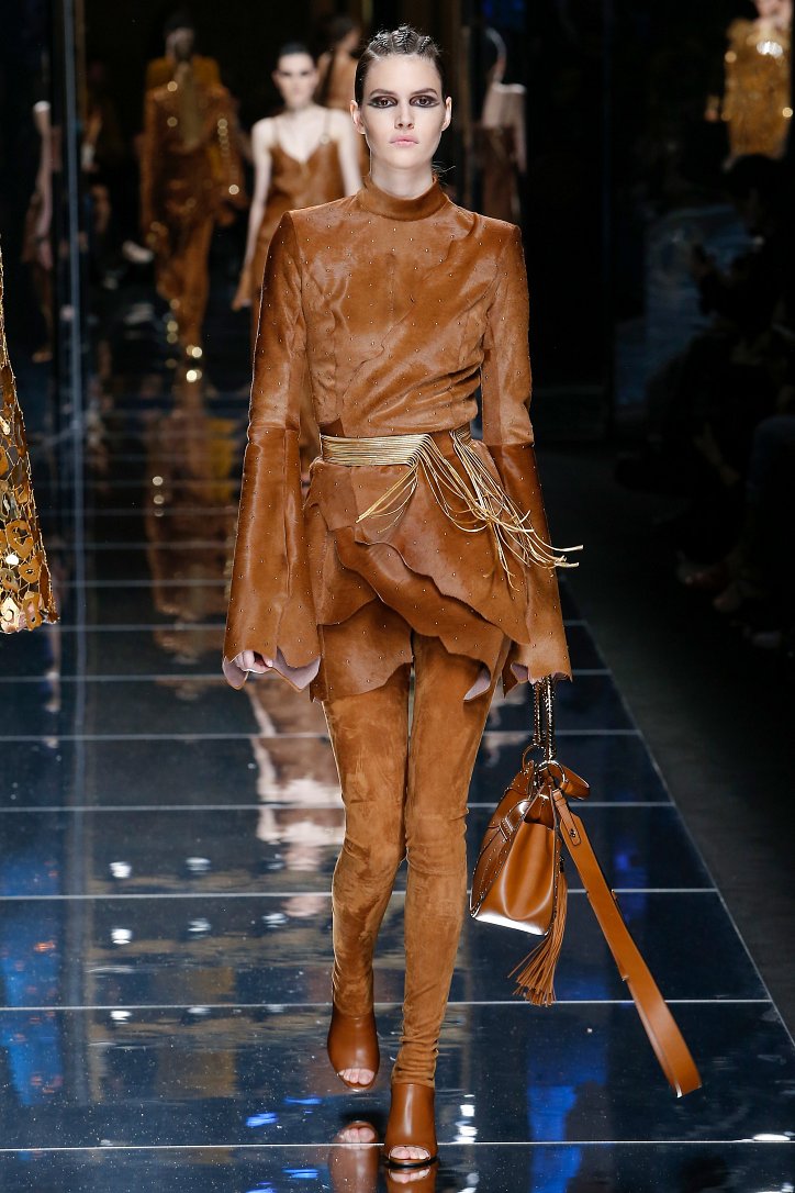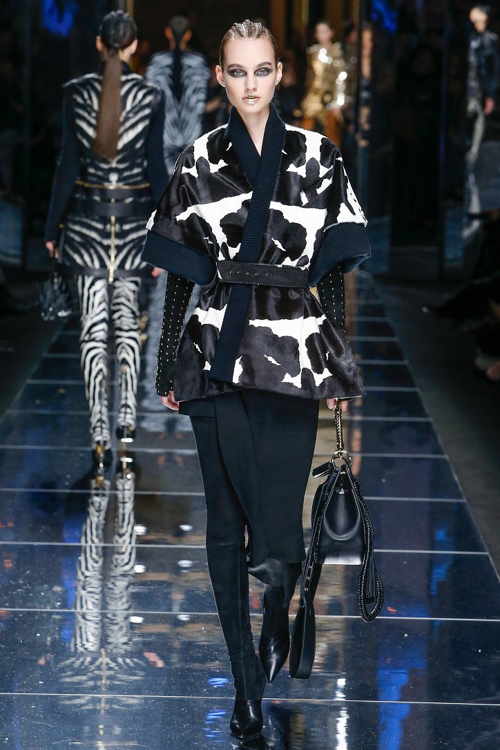 Феминизму – да, розовому цвету – нет! На показе Balmain осень-зима 2017-2018 по подиуму дефилировали современные амазонки – в довольно агрессивных нарядах, со «свирепым» мейк-апом и прическами. Размышляя о возврате к природе и о женской силе, Оливье Рустен создал коллекцию, которая как нельзя лучше иллюстрируют современное понятие «сильная женщина»: она богата и носит вещи «от кутюр», любит рок-н-ролл и эпатаж. Это для нее дизайнер создал брюки из замши и «хищные» туники в стиле пэчворк. Это их он намерен удивить оригинальностью фасонов и силуэтов, разнообразием декоративных элементов и богатством материалов, среди которых – бархат и кожа рептилий, сетка и стрейчевый тюль, замша и жаккард.
