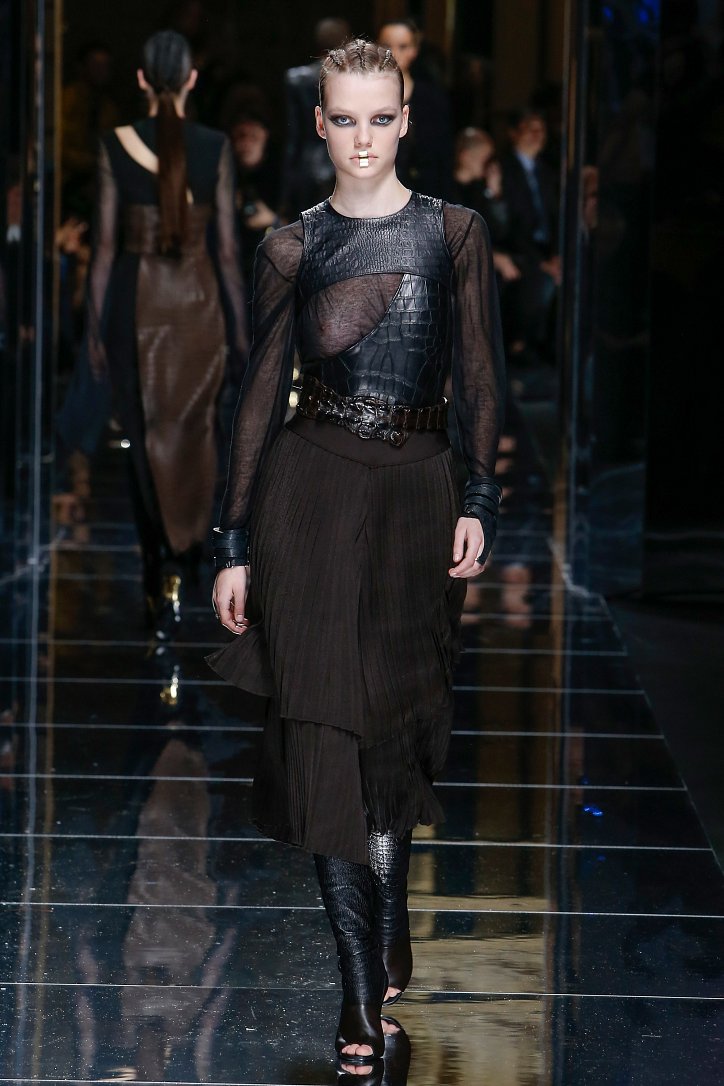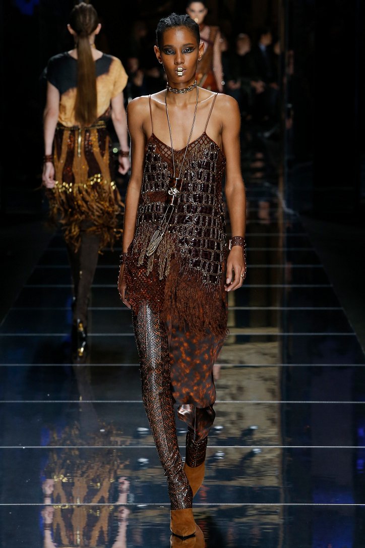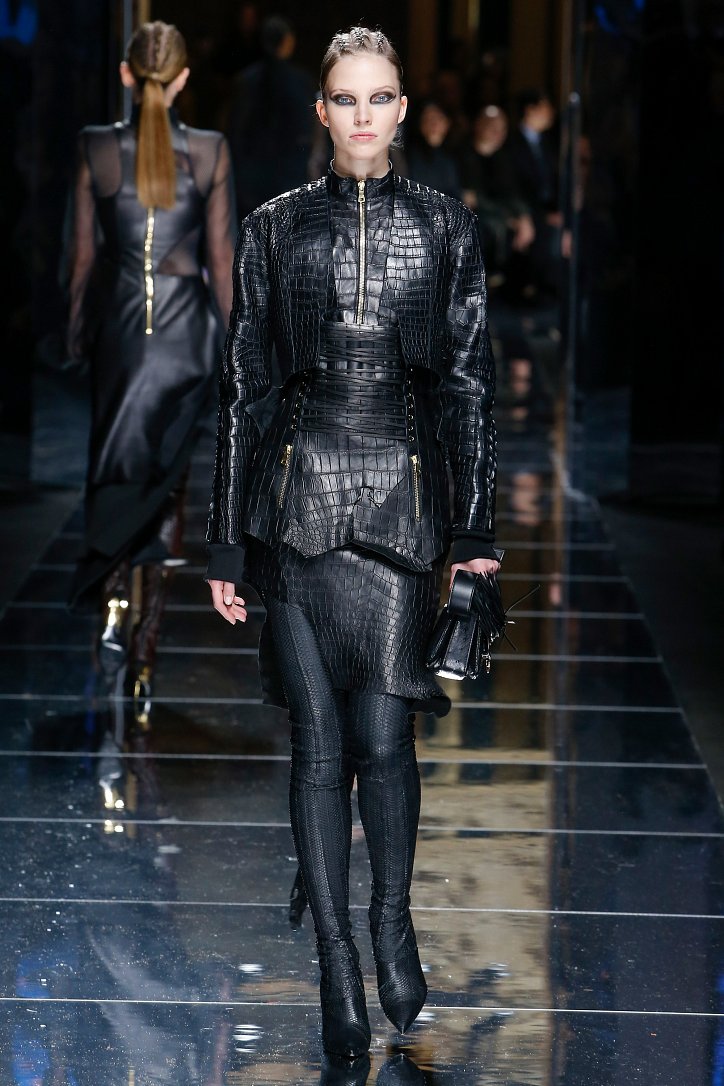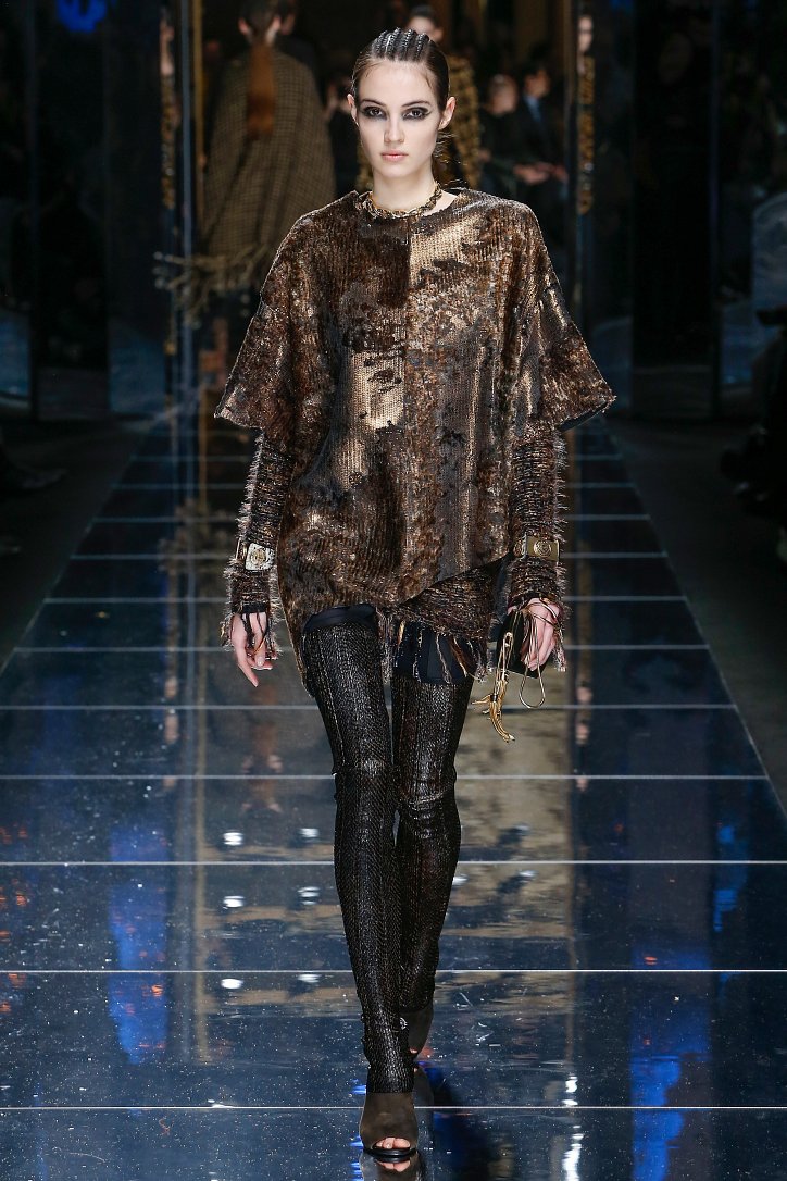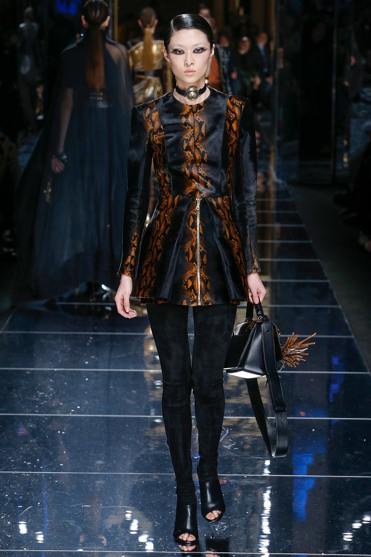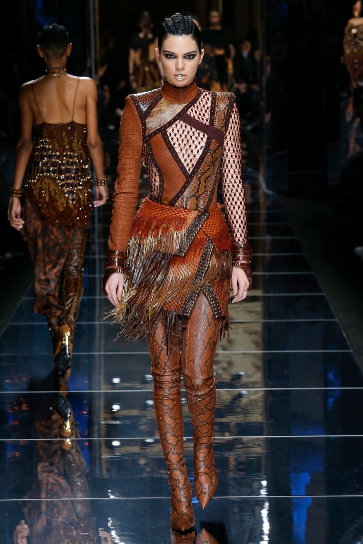 Феминизму – да, розовому цвету – нет! На показе Balmain осень-зима 2017-2018 по подиуму дефилировали современные амазонки – в довольно агрессивных нарядах, со «свирепым» мейк-апом и прическами. Размышляя о возврате к природе и о женской силе, Оливье Рустен создал коллекцию, которая как нельзя лучше иллюстрируют современное понятие «сильная женщина»: она богата и носит вещи «от кутюр», любит рок-н-ролл и эпатаж. Это для нее дизайнер создал брюки из замши и «хищные» туники в стиле пэчворк. Это их он намерен удивить оригинальностью фасонов и силуэтов, разнообразием декоративных элементов и богатством материалов, среди которых – бархат и кожа рептилий, сетка и стрейчевый тюль, замша и жаккард.