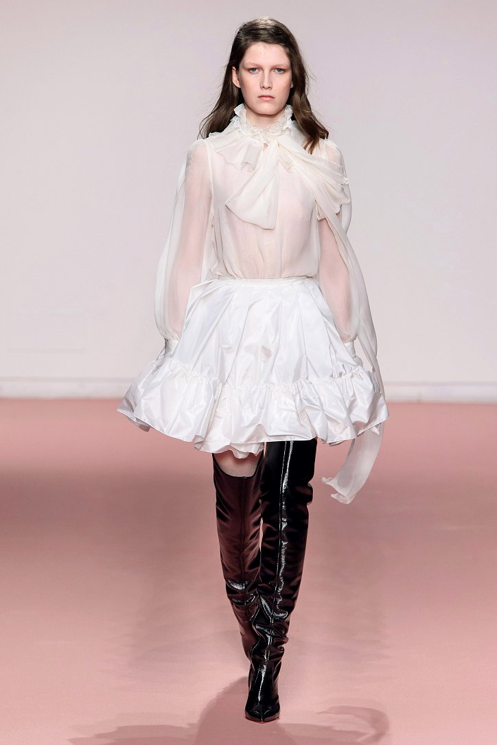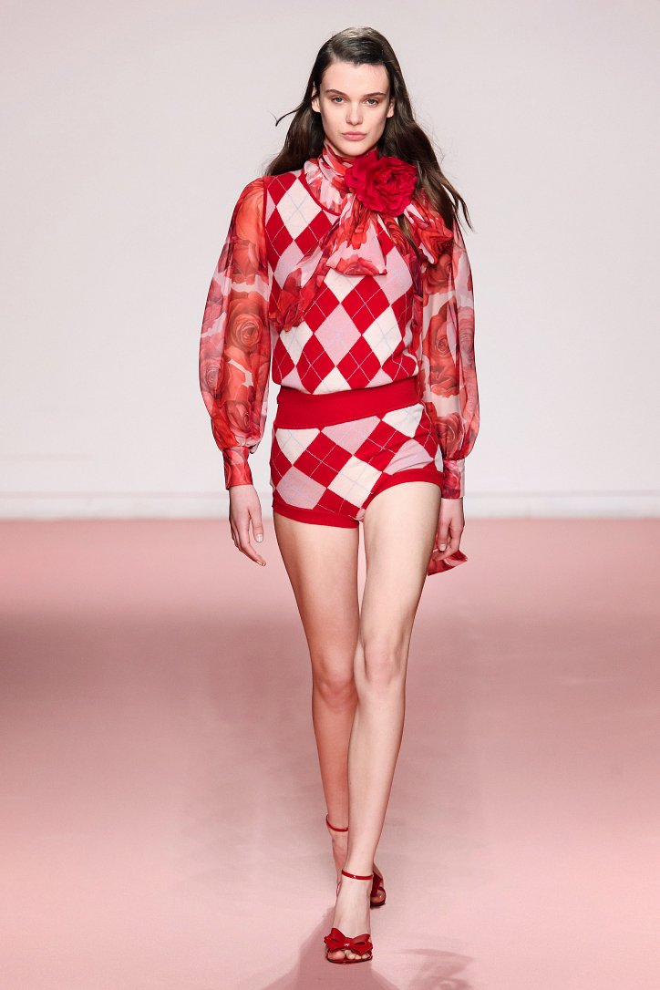 «Эта коллекция - мой Blumarine: там есть все, что мне всегда нравилось», - восторженно говорила перед шоу Анна Молинари. В новом сезоне она решила прекратить эксперименты (которые, надо сказать, были не очень удачными) - и вместо одежды в уличном стиле и спортивных инспираций на подиуме вновь появились очаровательно-женственные и романтичные шифоновые и кружевные платья и блузы, пышные короткие юбки с рюшами из тафты, леопардовый принт, бархатные мини-платья и брючные костюмы, элегантные пальто и асимметричные cocktail dress.