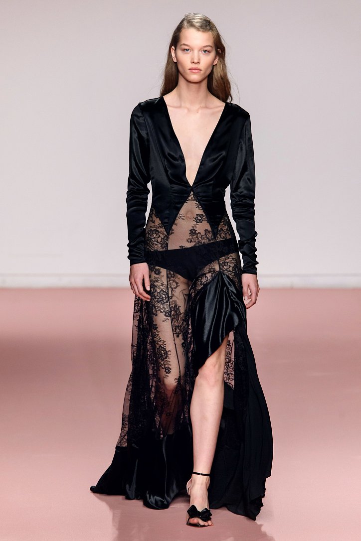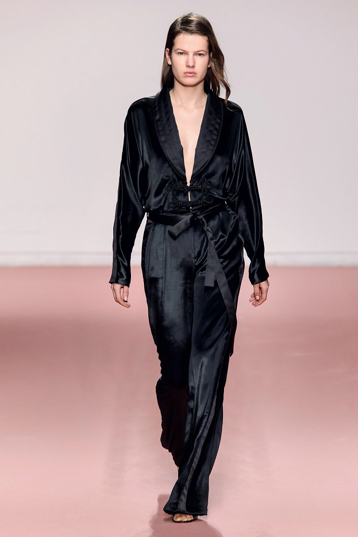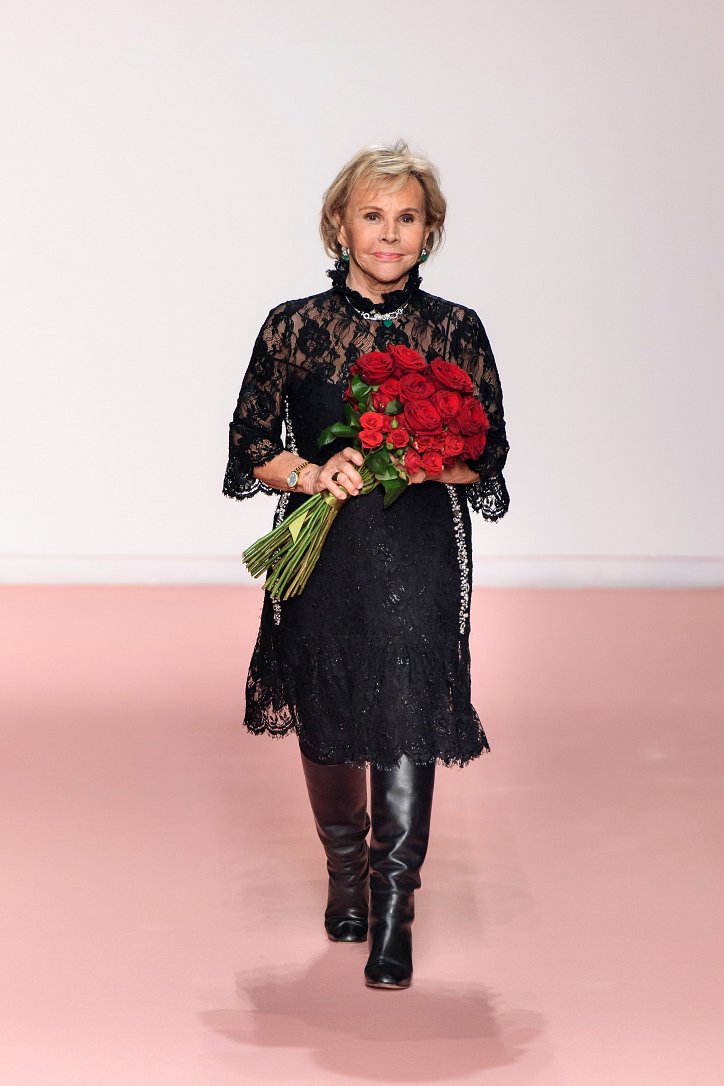 Черная лакированная кожа добавляла ноток гламура, а на шифоновых платьях и блузах пламенели «фирменные» розы Blumarine. Розами были украшены и полупрозрачные вечерние платья, и виниловый плащ, и даже джинсы! Радости Анны Молинари явно не было предела – теперь игра идет на своем поле.