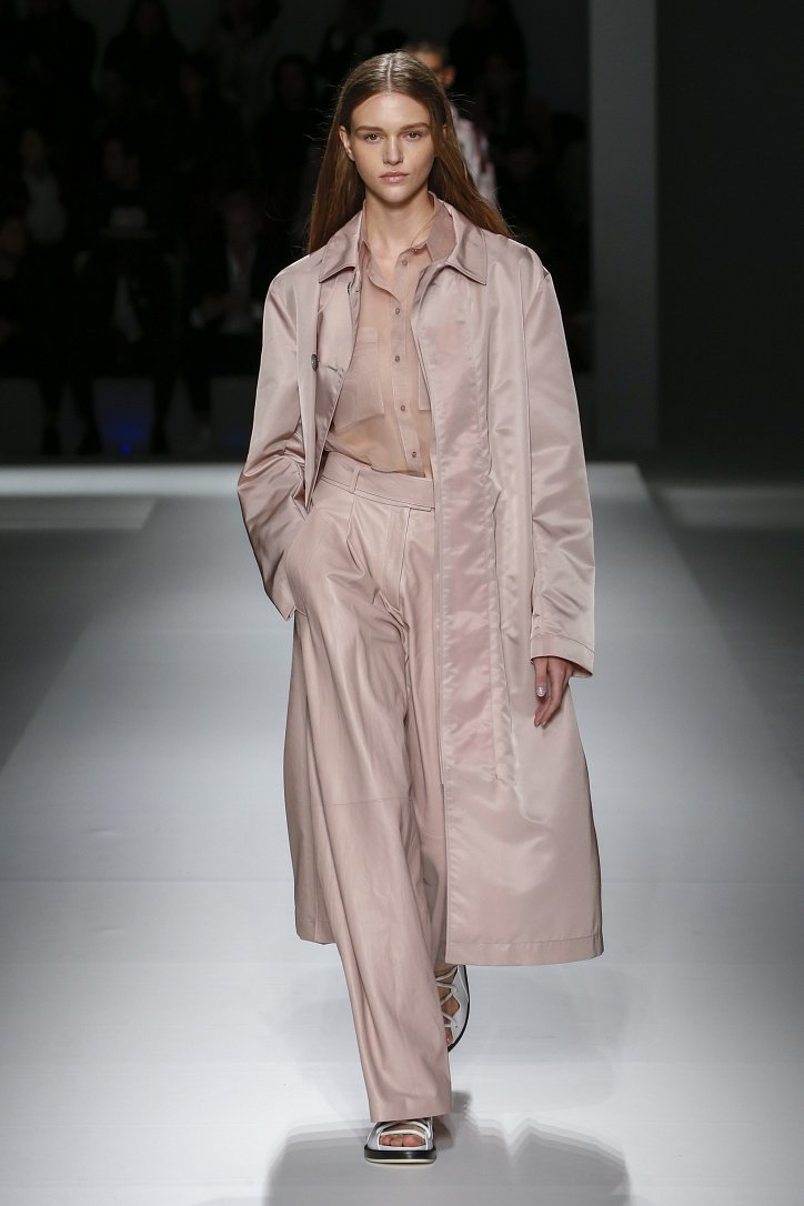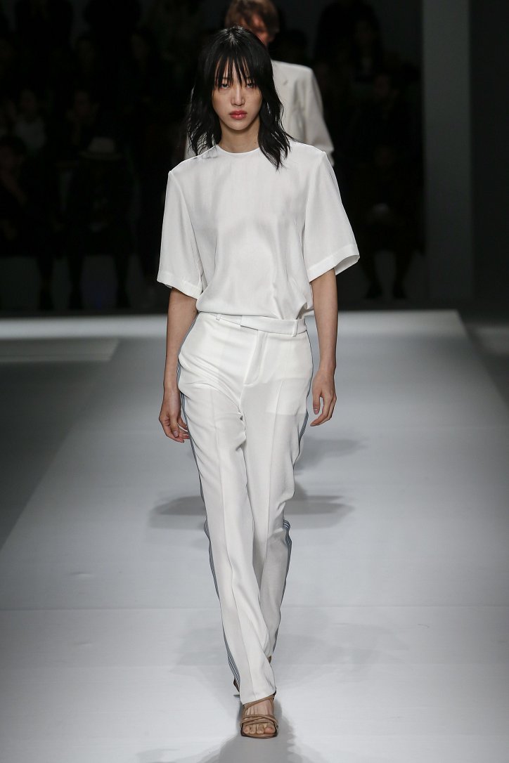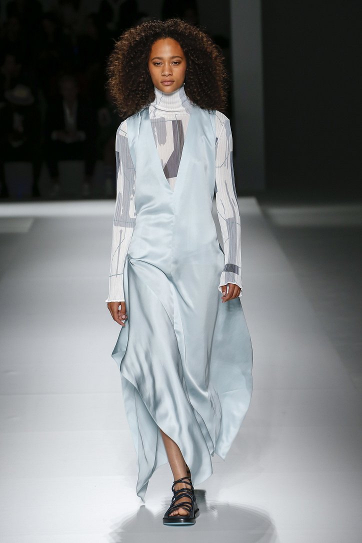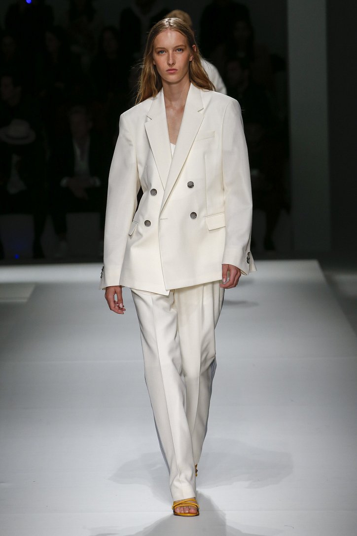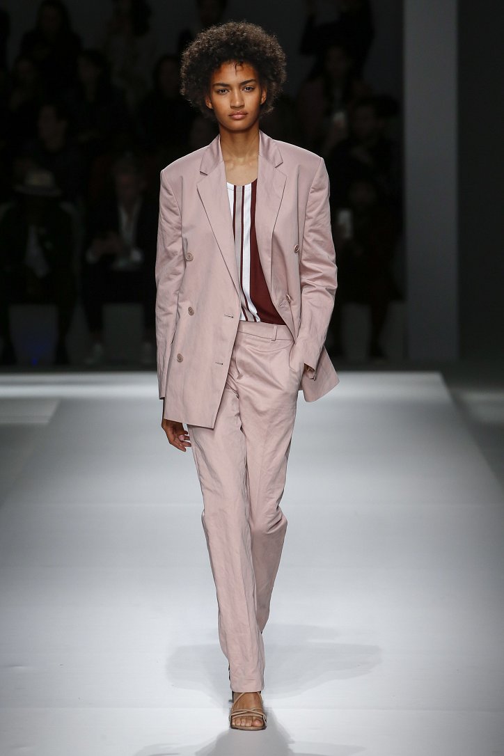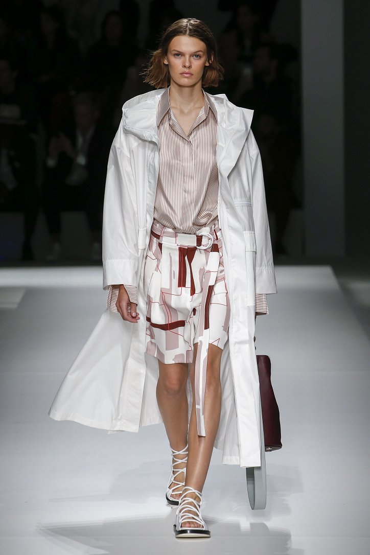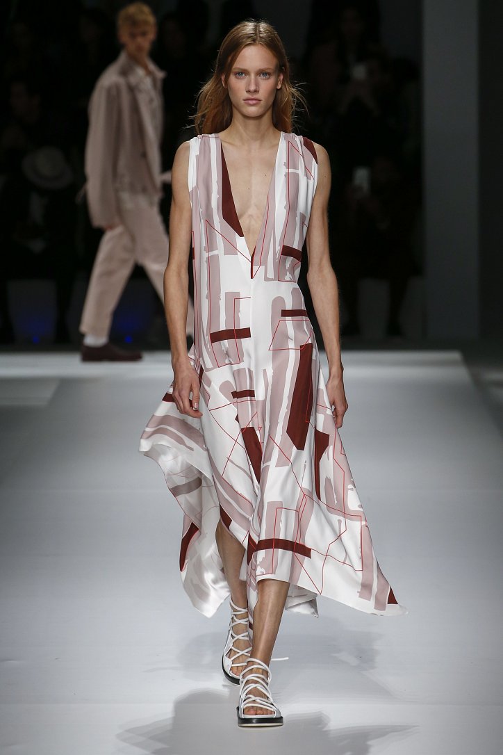 Тонкое вязаное платье и нейлоновый тренч – так начался показ коллекции Boss весна-лето 2019 – первой после ухода Джейсона Ву с поста креативного директора бренда. Далее последовали абстрактные принты на шелке и имитация того же рисунка из кожи в технике пэчворк, широкие брюки с лампасами и асимметричные юбки оригинального кроя, лаконичные платья с намеком на спортивный стиль и комбинезоны, кюлоты на высокой талии и прозрачные блузы.