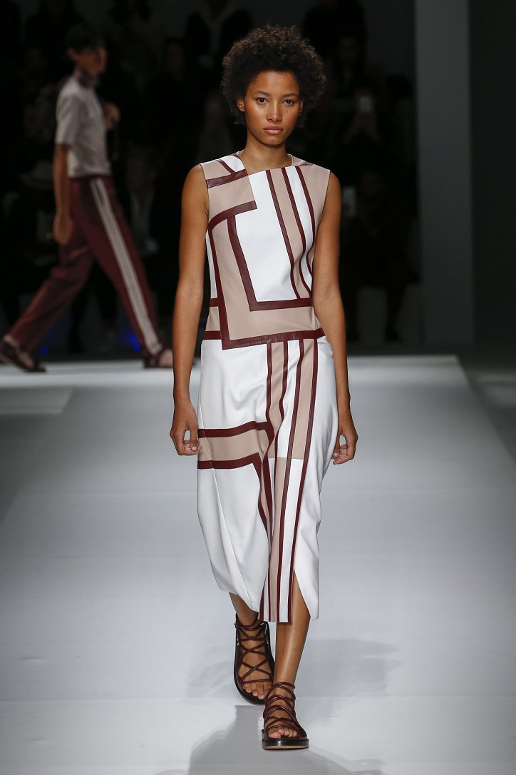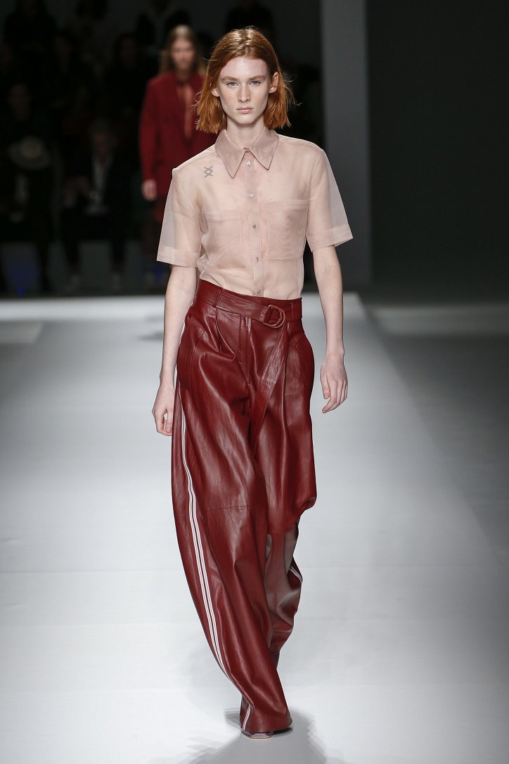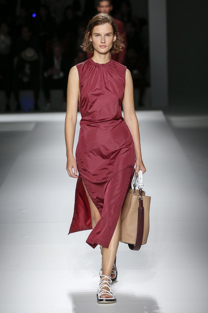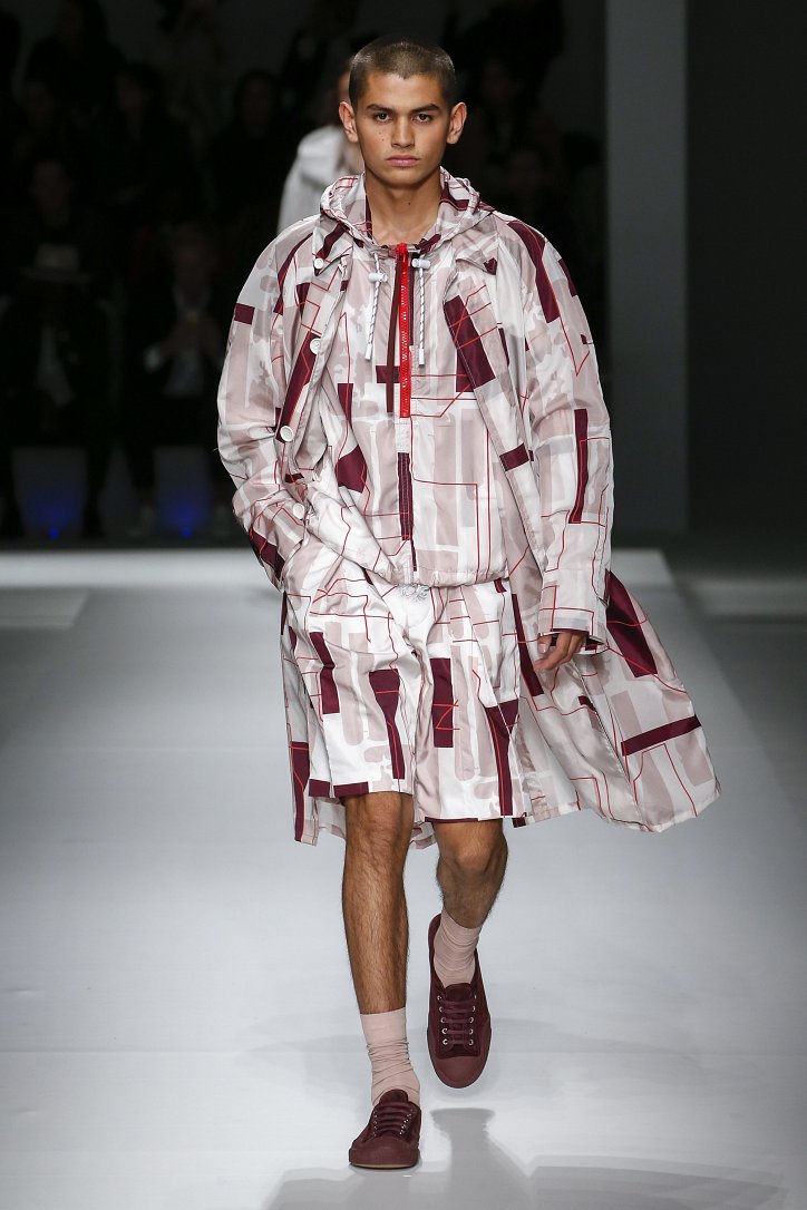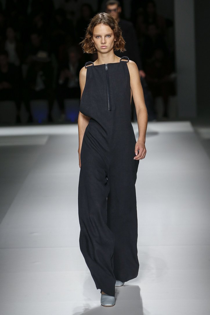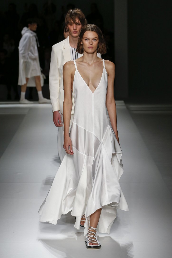 Тонкое вязаное платье и нейлоновый тренч – так начался показ коллекции Boss весна-лето 2019 – первой после ухода Джейсона Ву с поста креативного директора бренда. Далее последовали абстрактные принты на шелке и имитация того же рисунка из кожи в технике пэчворк, широкие брюки с лампасами и асимметричные юбки оригинального кроя, лаконичные платья с намеком на спортивный стиль и комбинезоны, кюлоты на высокой талии и прозрачные блузы.