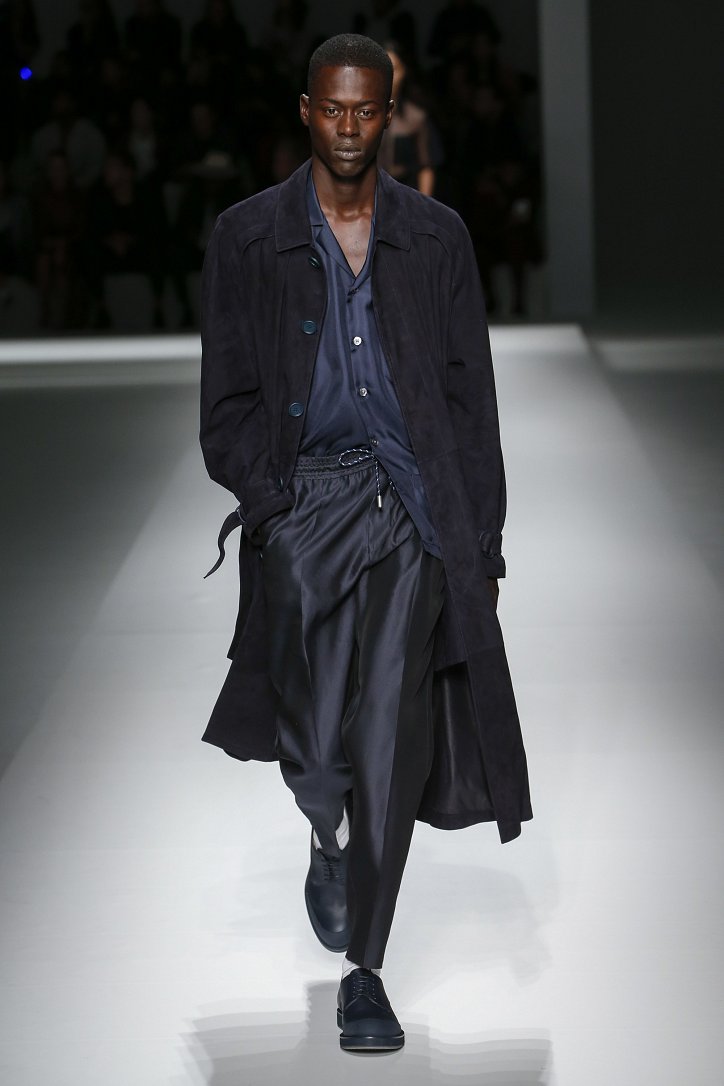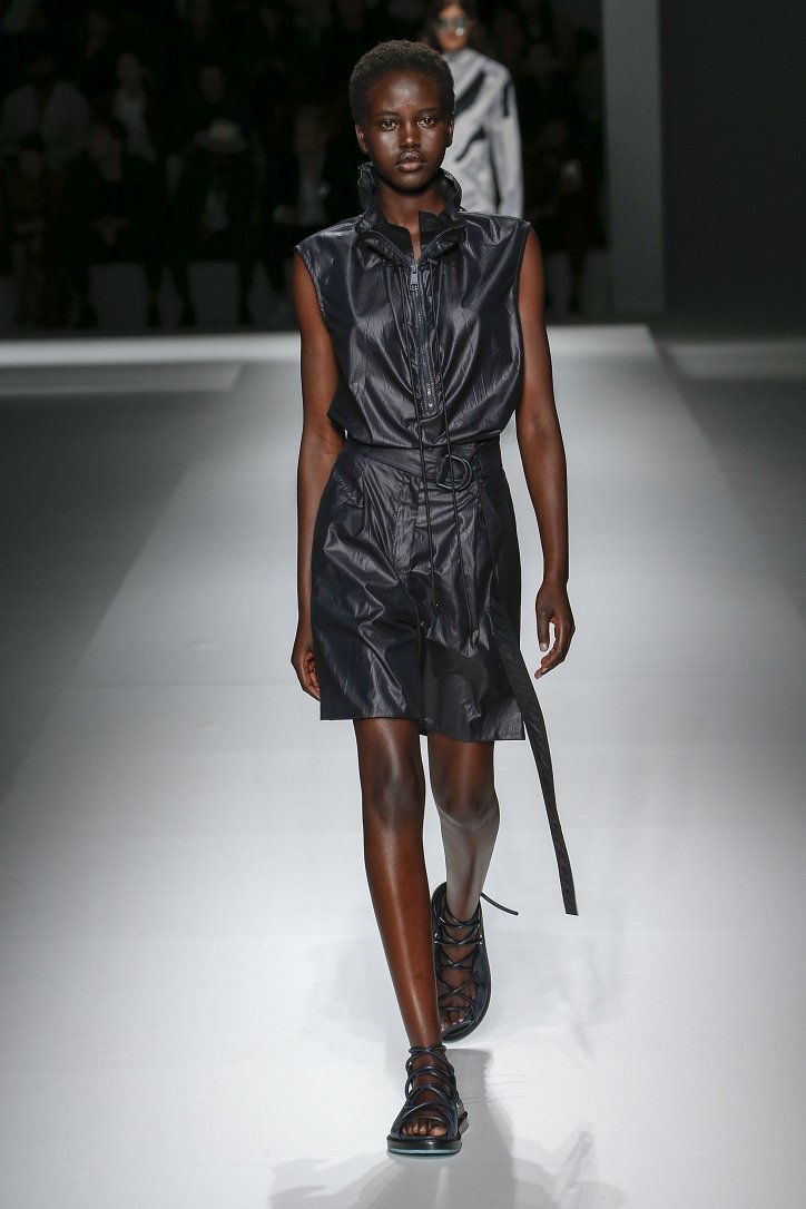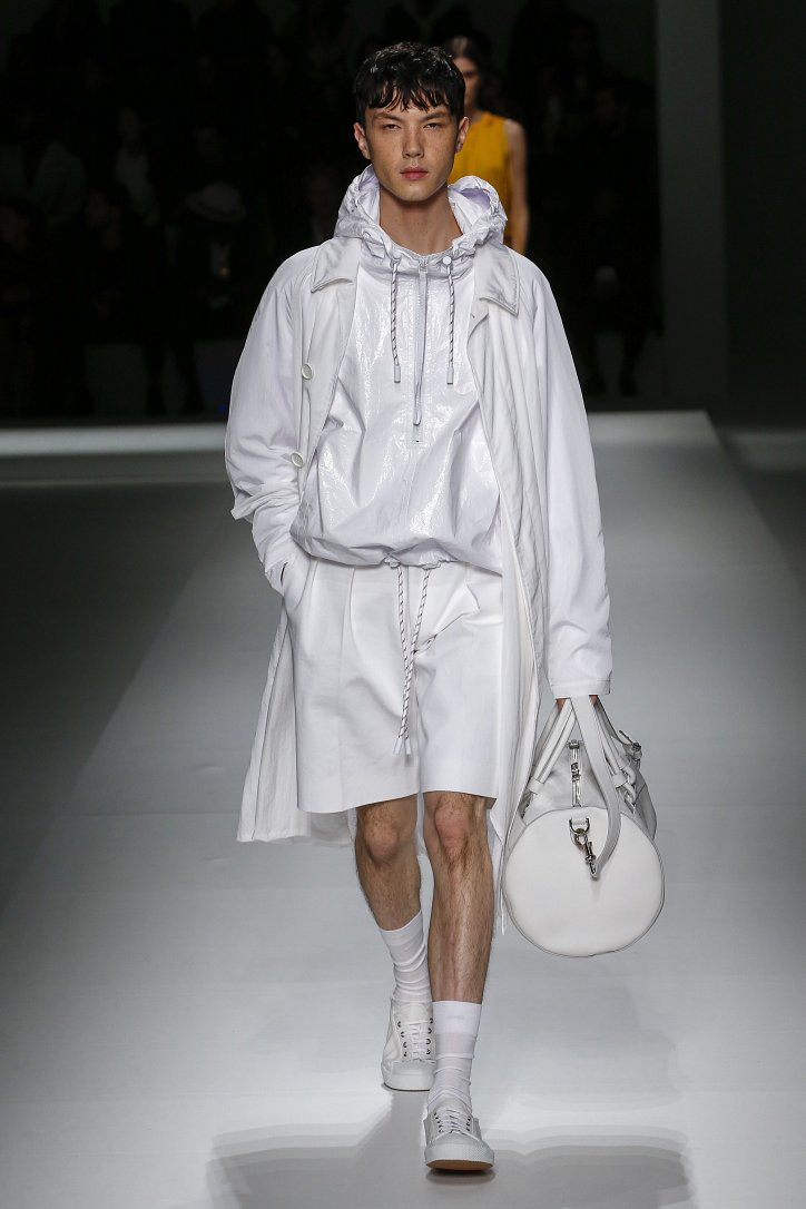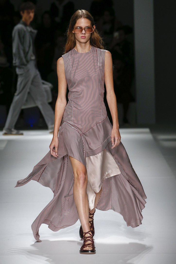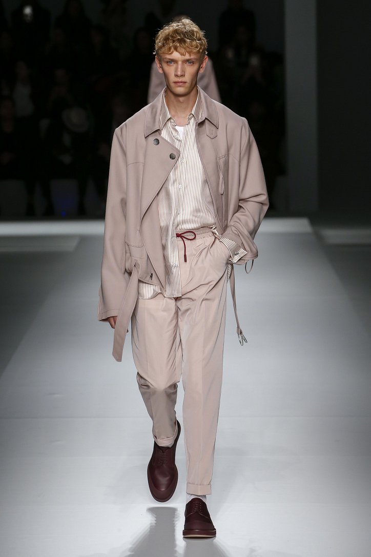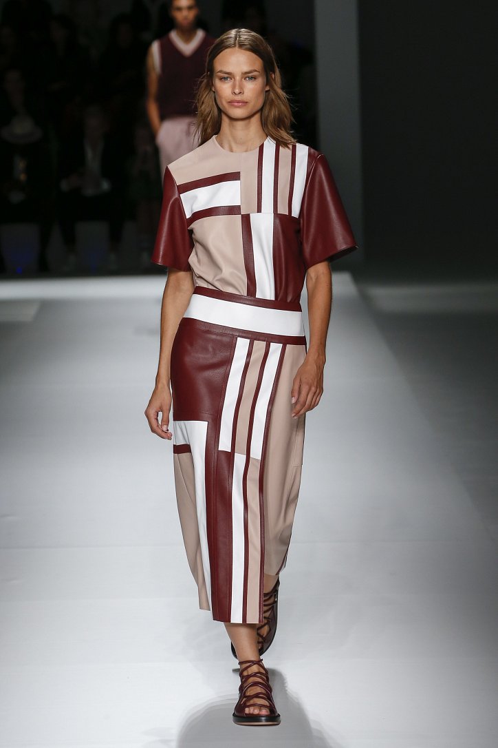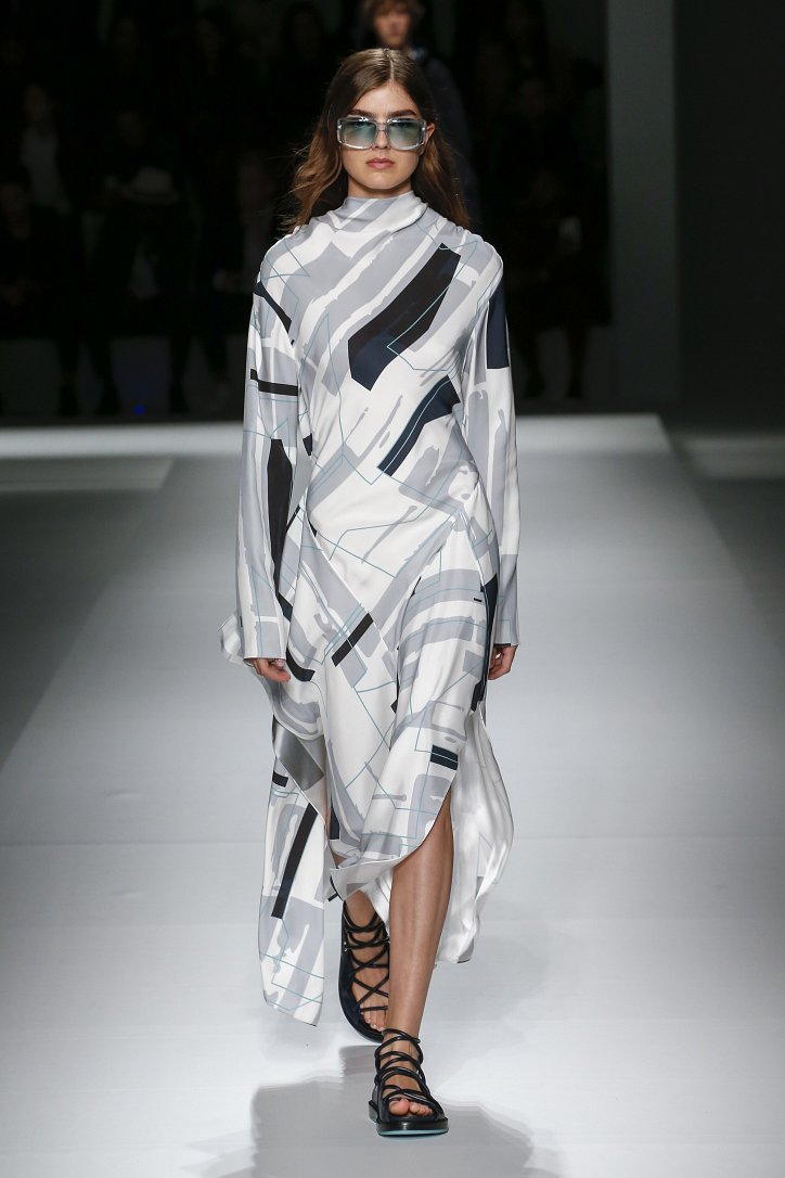 Тонкое вязаное платье и нейлоновый тренч – так начался показ коллекции Boss весна-лето 2019 – первой после ухода Джейсона Ву с поста креативного директора бренда. Далее последовали абстрактные принты на шелке и имитация того же рисунка из кожи в технике пэчворк, широкие брюки с лампасами и асимметричные юбки оригинального кроя, лаконичные платья с намеком на спортивный стиль и комбинезоны, кюлоты на высокой талии и прозрачные блузы.