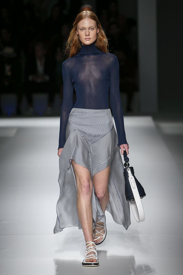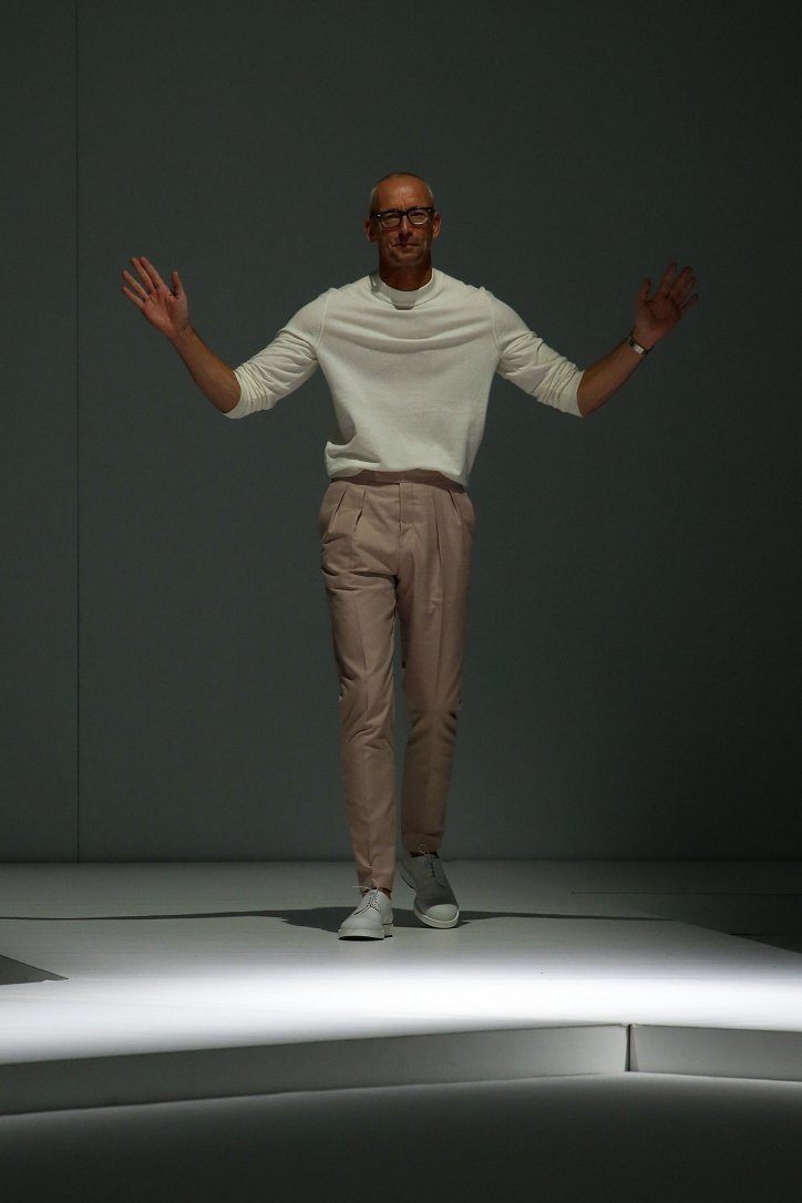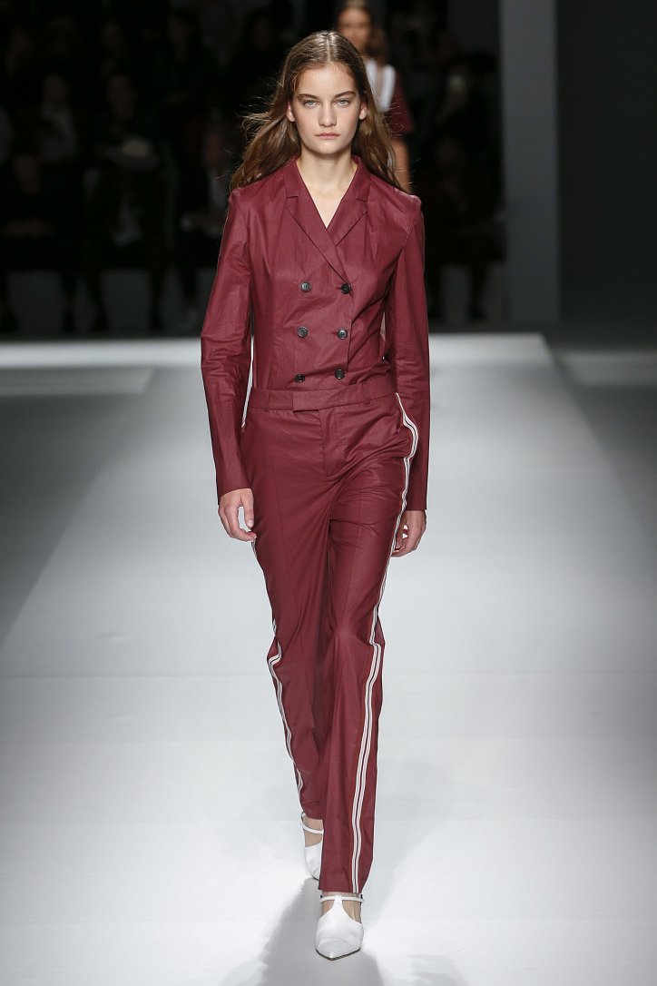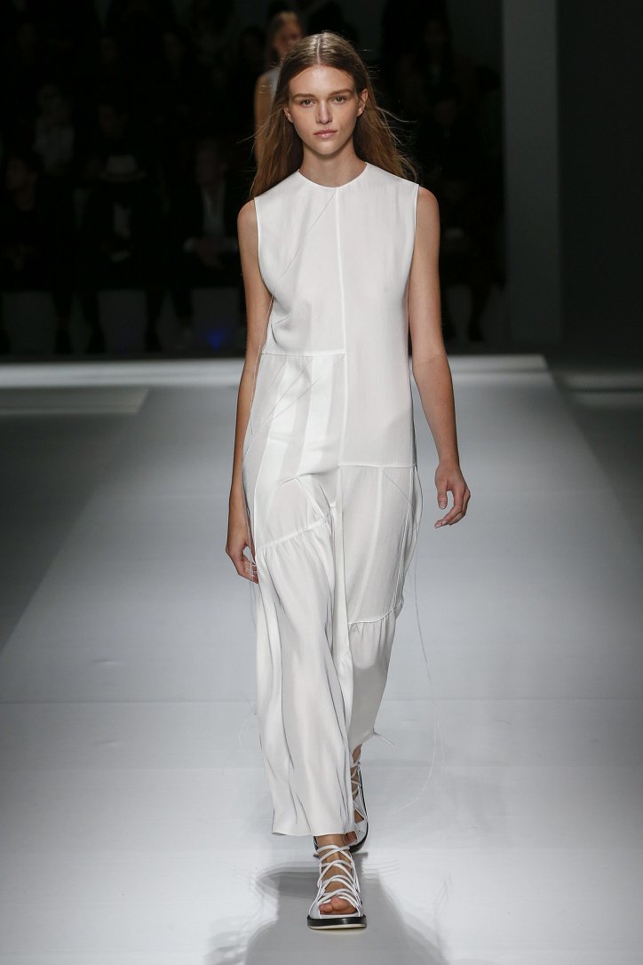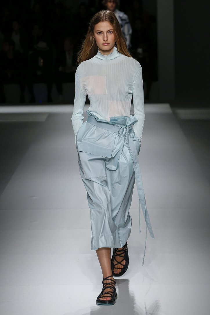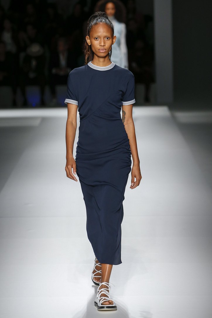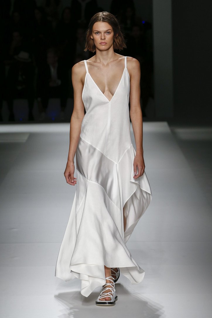 Тонкое вязаное платье и нейлоновый тренч – так начался показ коллекции Boss весна-лето 2019 – первой после ухода Джейсона Ву с поста креативного директора бренда. Далее последовали абстрактные принты на шелке и имитация того же рисунка из кожи в технике пэчворк, широкие брюки с лампасами и асимметричные юбки оригинального кроя, лаконичные платья с намеком на спортивный стиль и комбинезоны, кюлоты на высокой талии и прозрачные блузы.