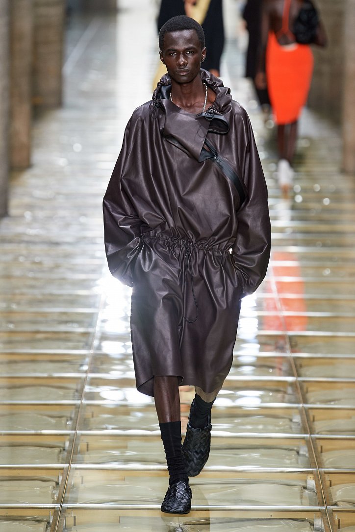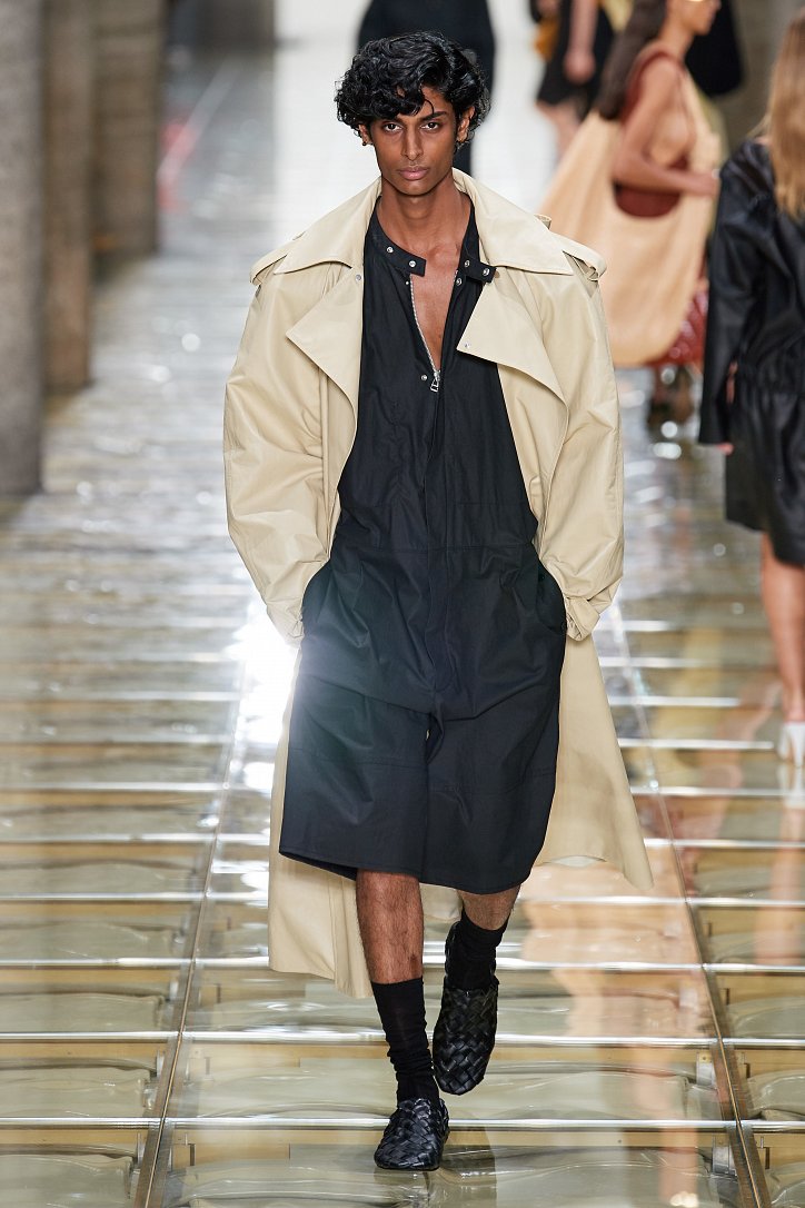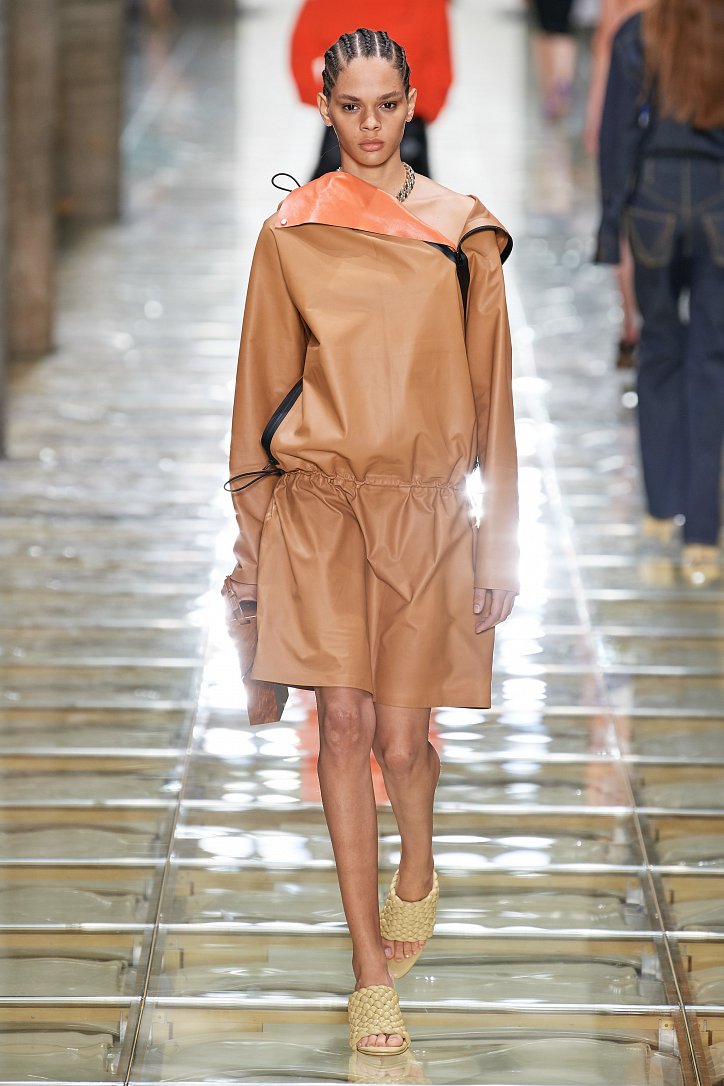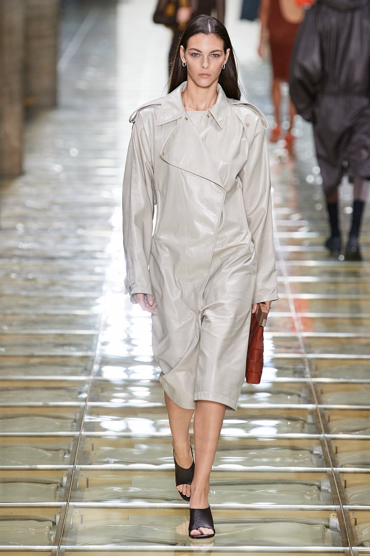 Коллекция Bottega Veneta оправдала все ожидания. Дизайнер предпочел спокойную гамму нейтральных цветов: явно лидировали в коллекции оттенки коричневого, белый и черный. Основной акцент был сделан на кожу – ее, как и в предыдущем сезоне, было много и во всех вариациях: от модных плащей и анораков до брюк и рубашек. Заслуживают внимания и трикотажные платья оригинального кроя, и новые сумки – плетеные хобо-оверсайз, которые в следующем сезоне явно станут хитом, сменив на этом «посту» клатч The Pouch.