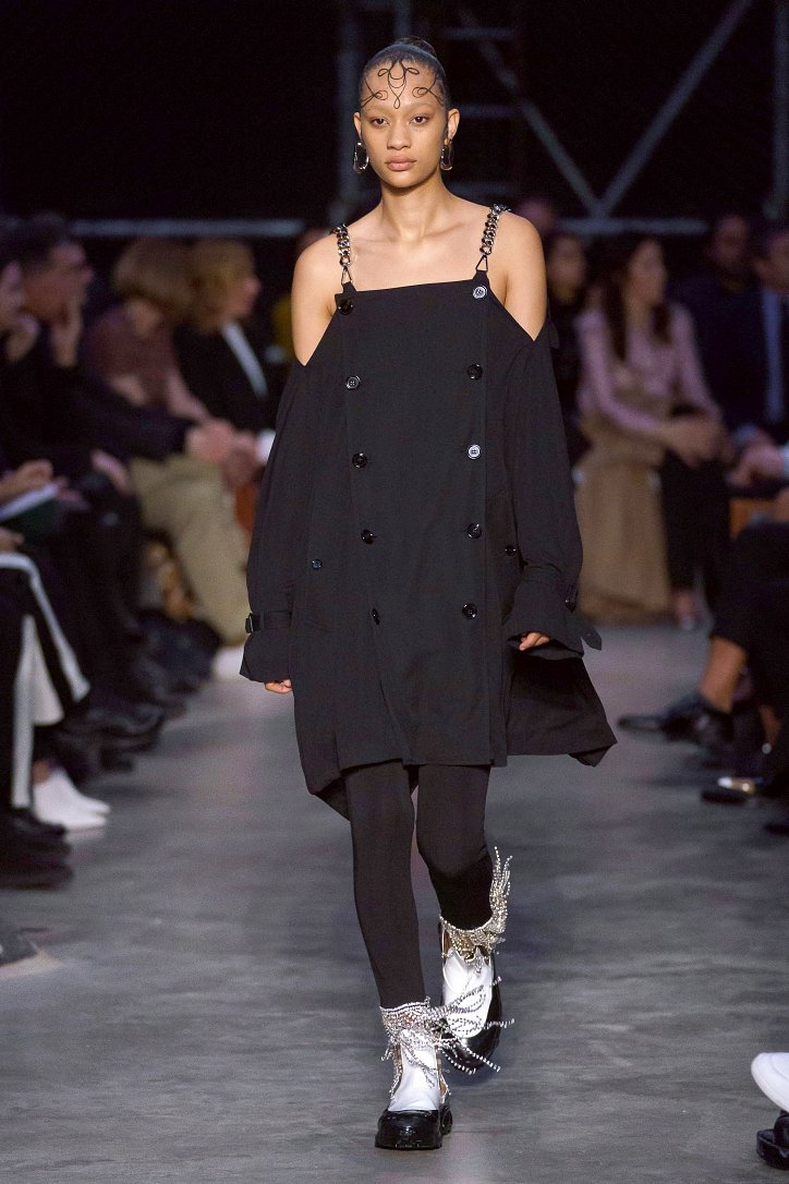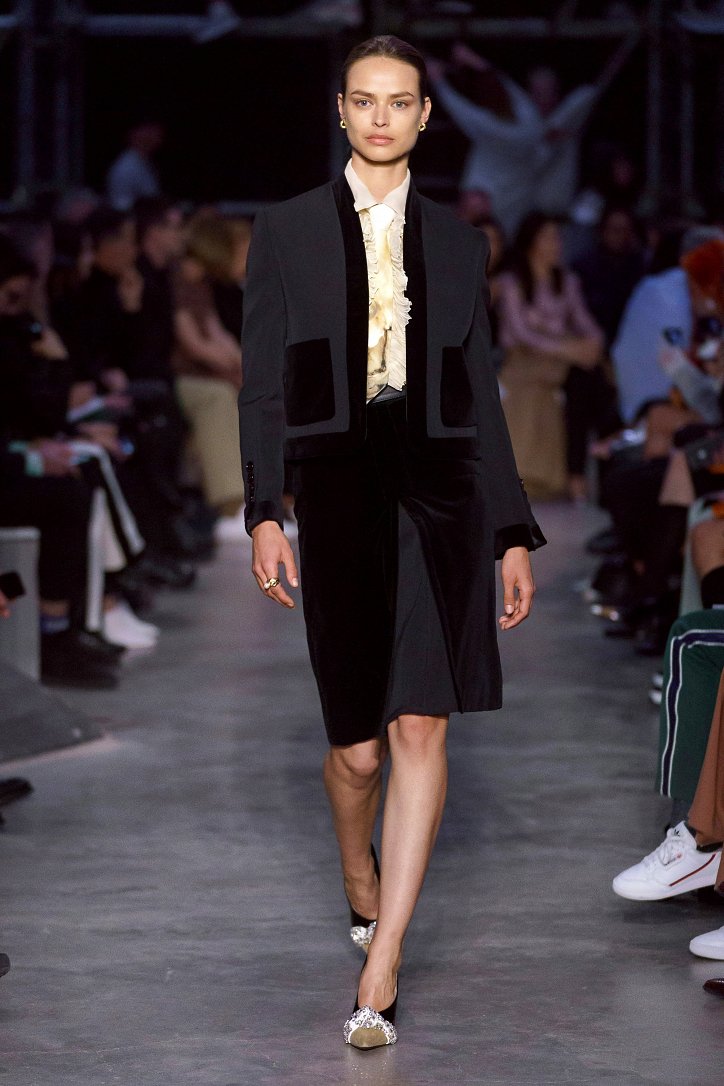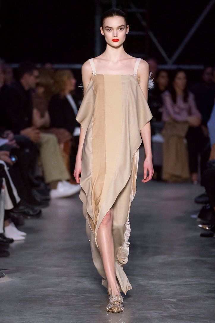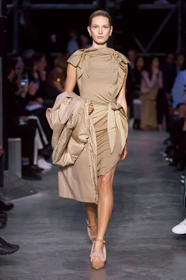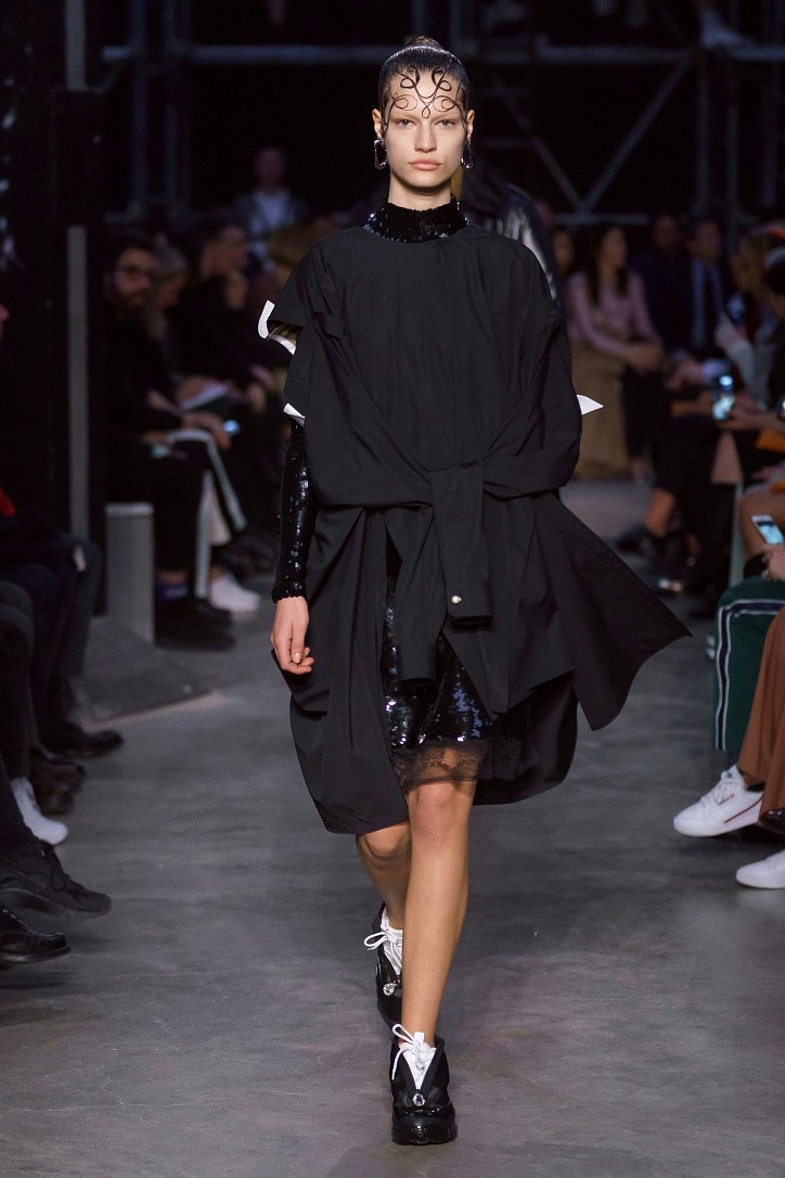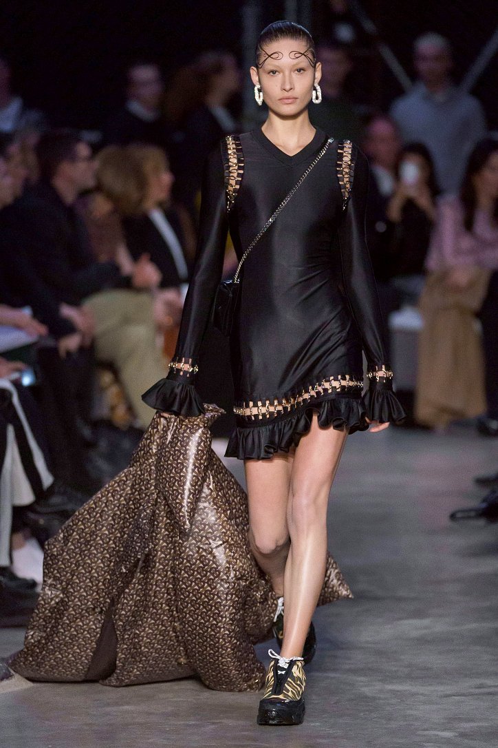 Что ж, игра на контрастах дизайнеру удалась: дерзкую, полную деконструкции одежду для молодежи сменяли формальные образы, созданные в бежево-коричневых тонах, перья и кружева напоминали о викторианстве - любимой эпохе Riccardo Tisci, а корсетные топы поверх белых футболок отсылали в 90-ые годы прошлого столетия. Классические тренчи и пальто соседствовали с пуховиками со шлейфами и трикотажными платьями с металлизированной бахромой, шелковые блузы и юбки-карандаши - с дубленками-трансформерами и пальто с пристегнутой по талии вверх ногами дутой курткой.