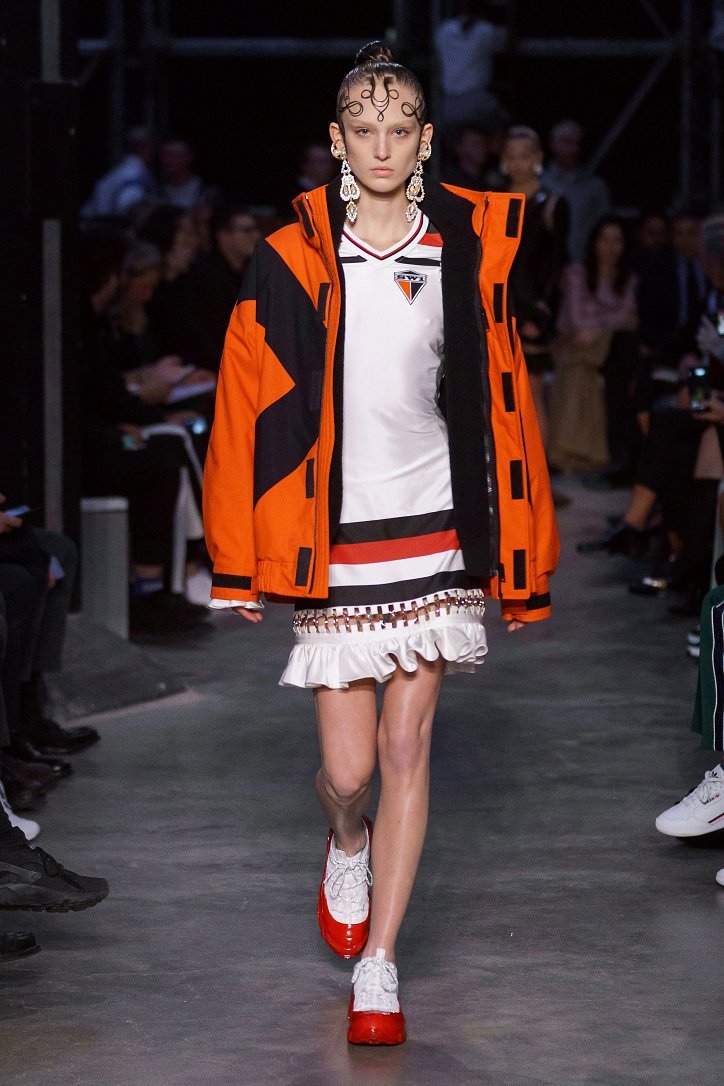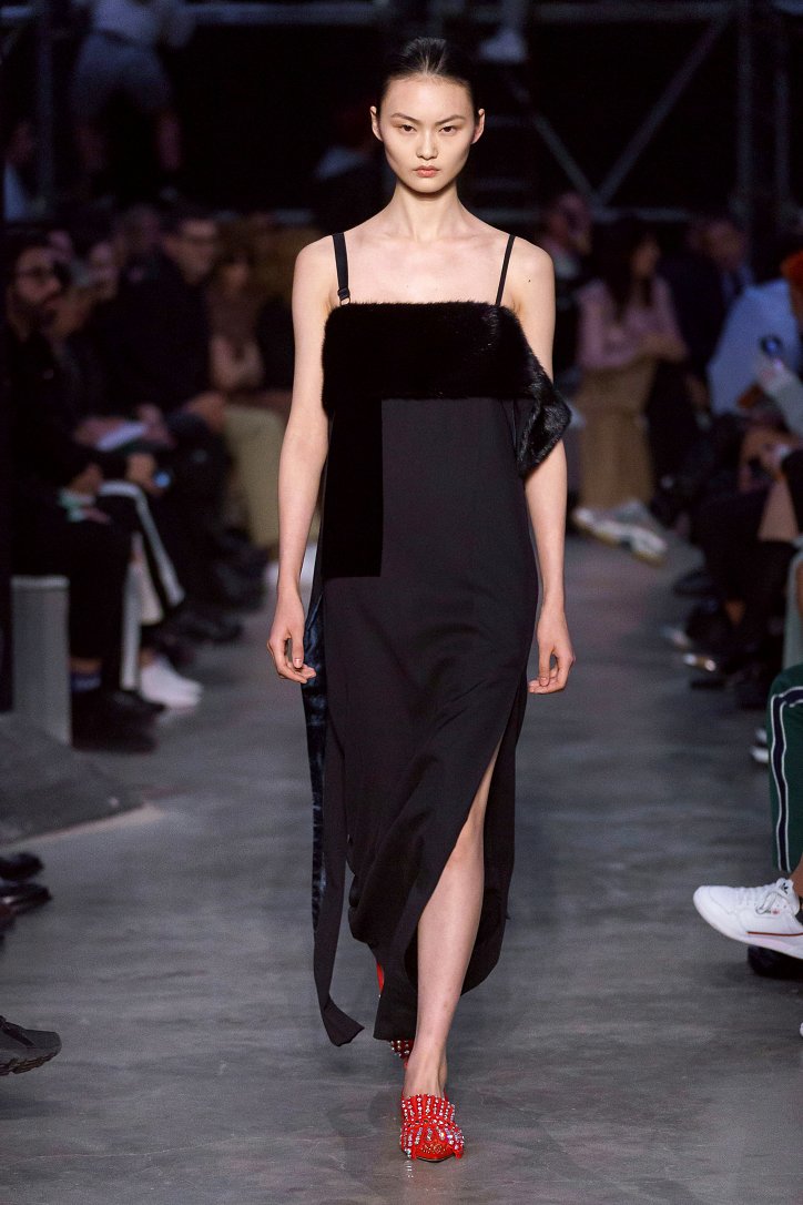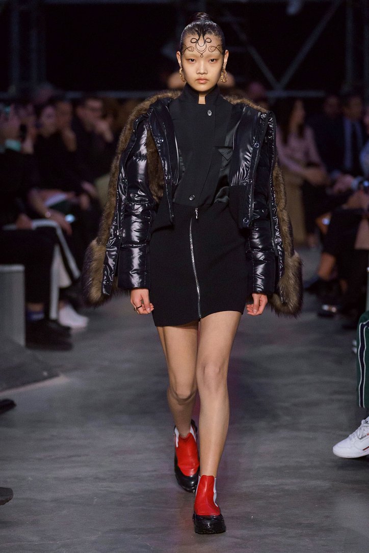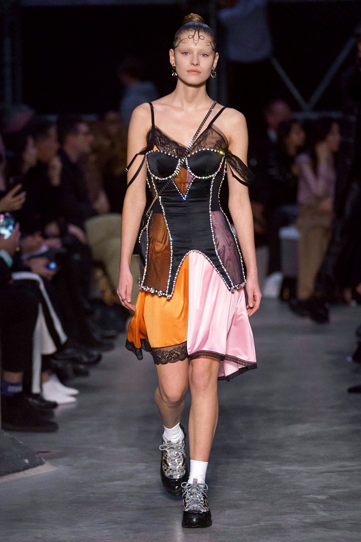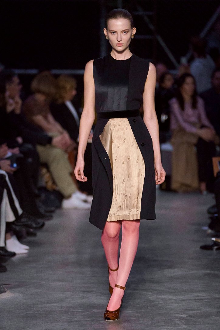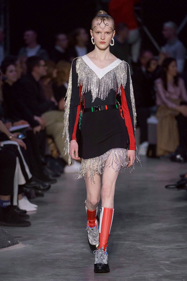Что ж, игра на контрастах дизайнеру удалась: дерзкую, полную деконструкции одежду для молодежи сменяли формальные образы, созданные в бежево-коричневых тонах, перья и кружева напоминали о викторианстве - любимой эпохе Riccardo Tisci, а корсетные топы поверх белых футболок отсылали в 90-ые годы прошлого столетия. Классические тренчи и пальто соседствовали с пуховиками со шлейфами и трикотажными платьями с металлизированной бахромой, шелковые блузы и юбки-карандаши - с дубленками-трансформерами и пальто с пристегнутой по талии вверх ногами дутой курткой.