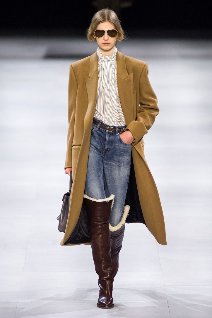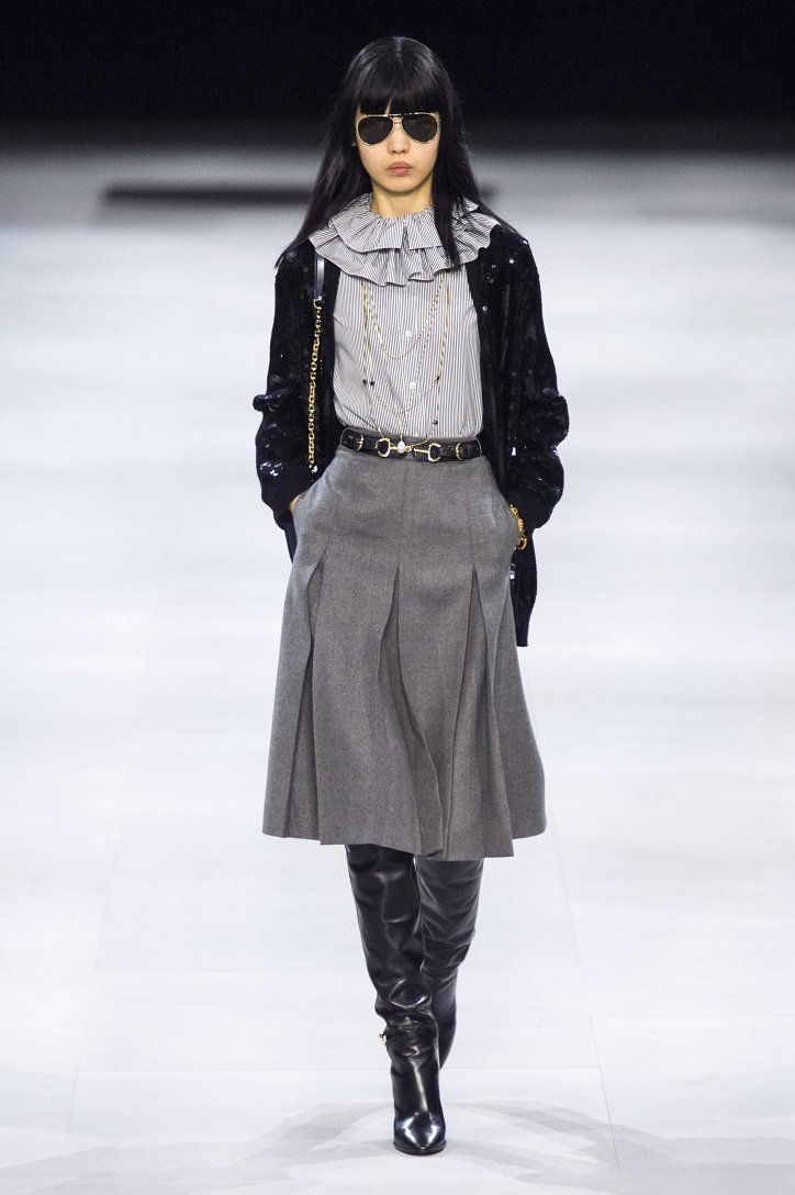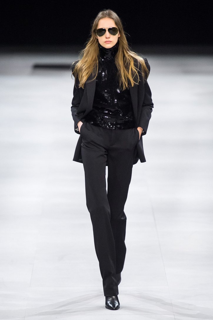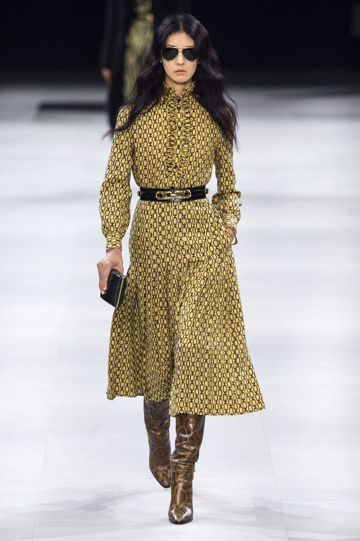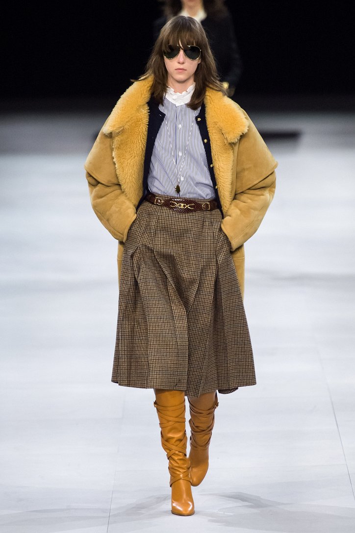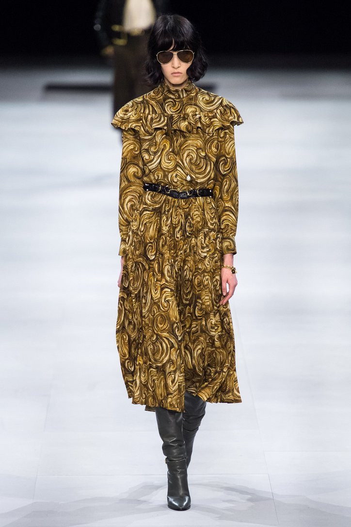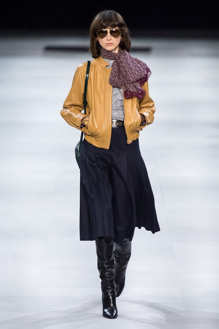 Коллекция Celine стала реинкарнацией буржуазной парижской моды, в которой «приняли участие» шелковые платья и кюлоты, джинсы skinny и строгие жакеты, классические пальто и брючные костюмы, пончо и кейпы, блузки с воротниками-бантами и юбки миди в складку.