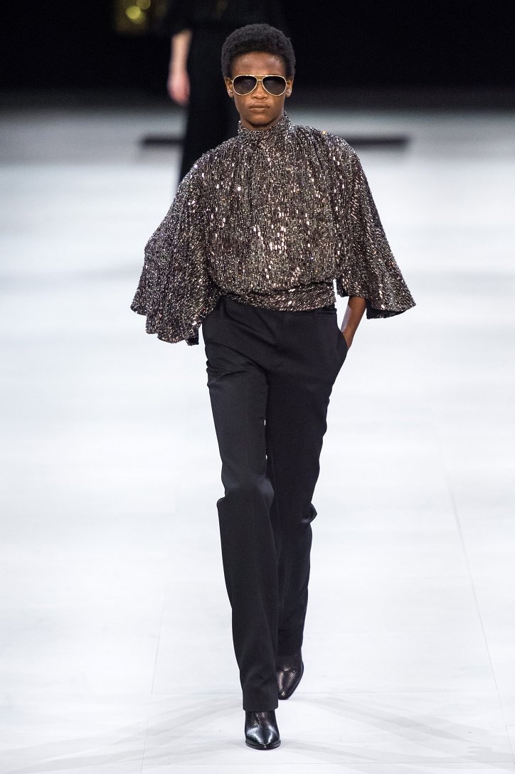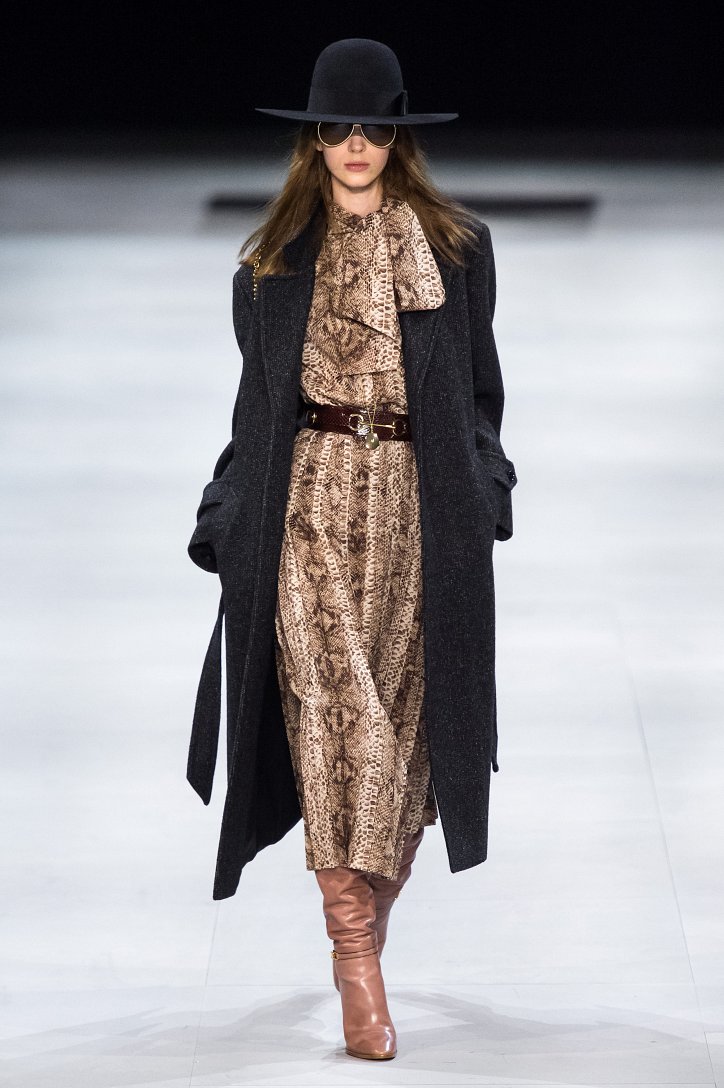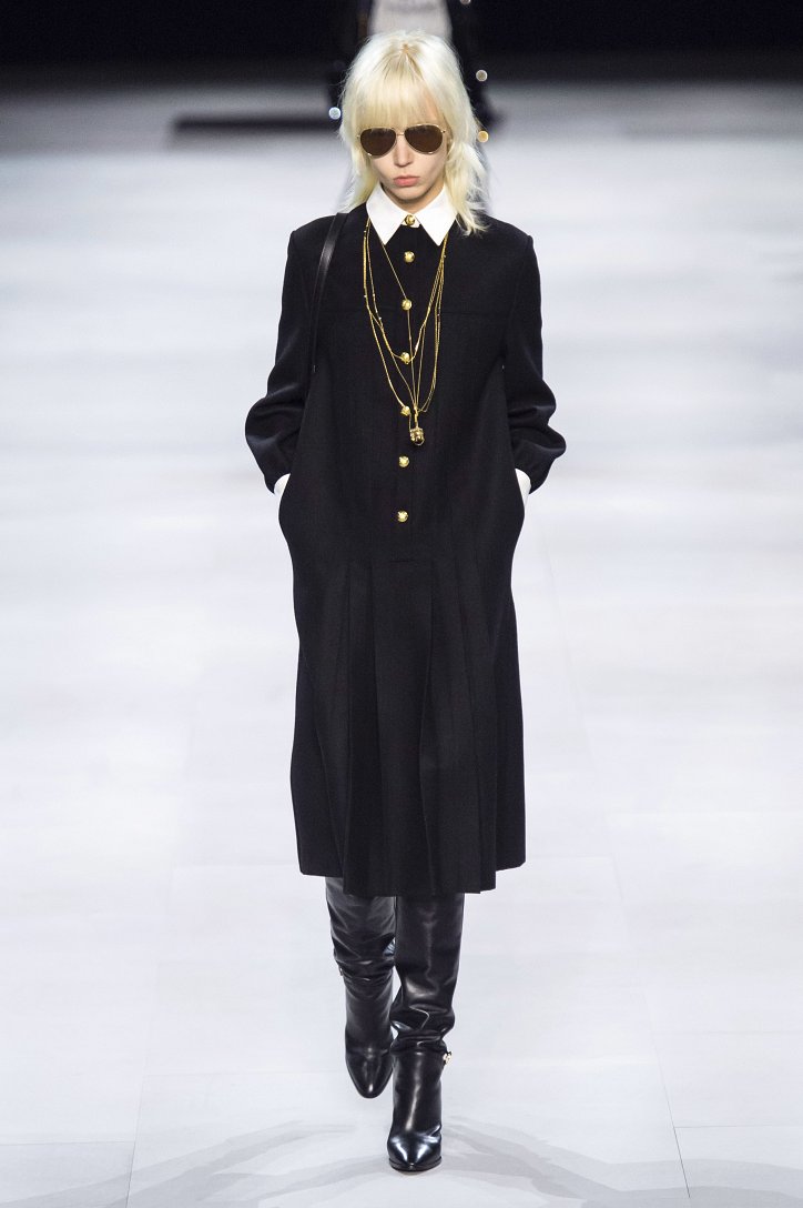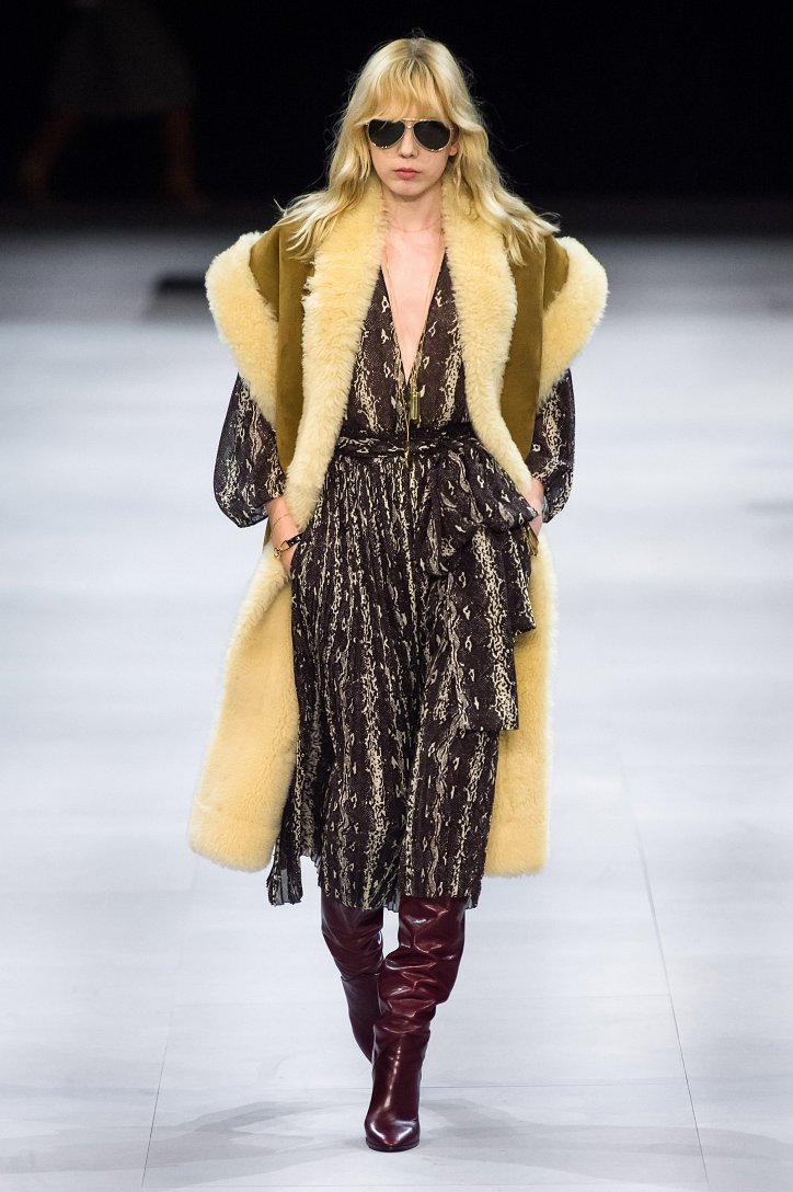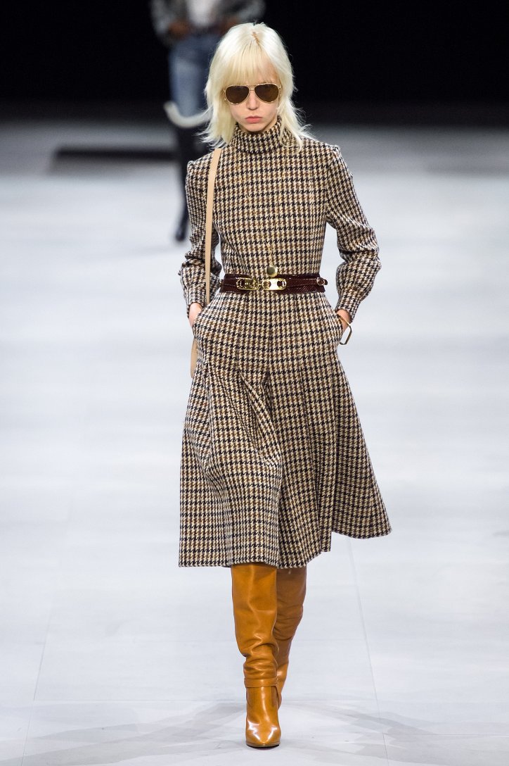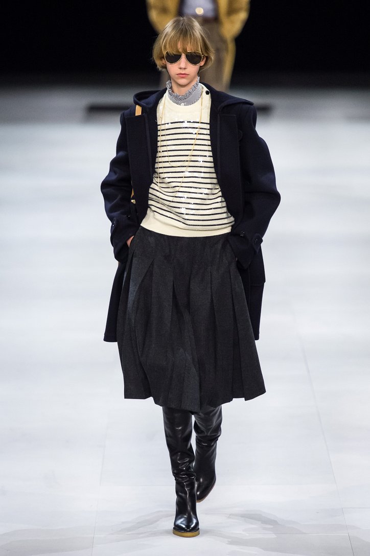 Коллекция Celine стала реинкарнацией буржуазной парижской моды, в которой «приняли участие» шелковые платья и кюлоты, джинсы skinny и строгие жакеты, классические пальто и брючные костюмы, пончо и кейпы, блузки с воротниками-бантами и юбки миди в складку.