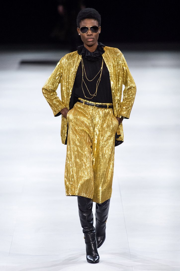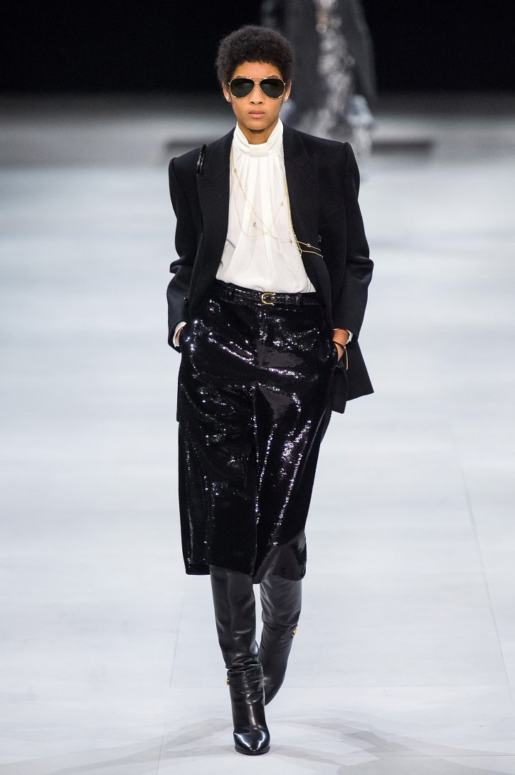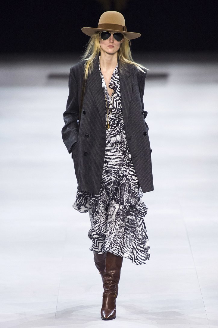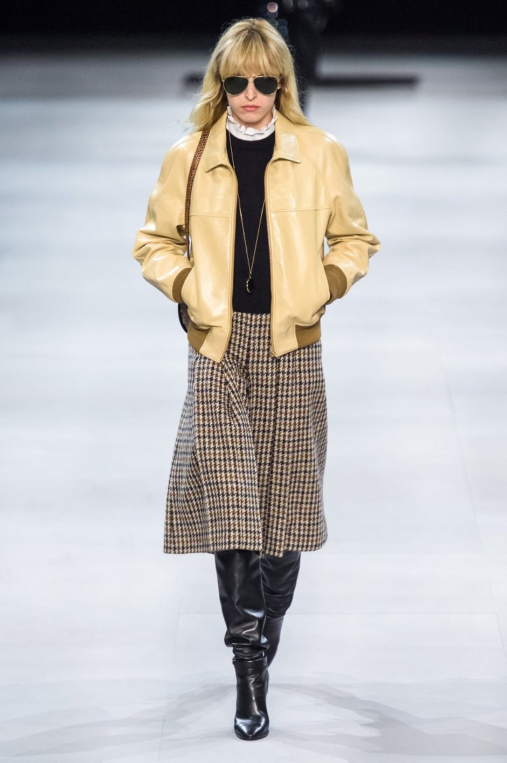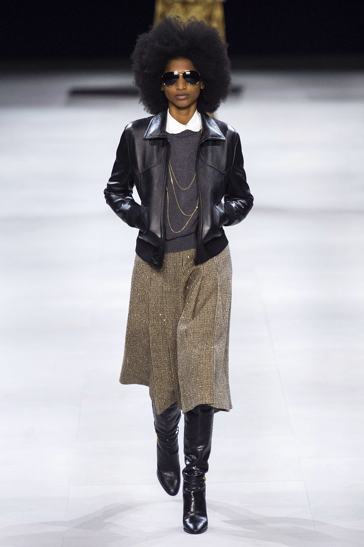 Начало шоу Celine было неожиданным и эффектным: из-под «купола цирка» медленно опустился на подиум зеркальный куб – и к замершей публике вышла девушка, которая, казалось, перенеслась сюда из прошлого. Плиссированные клетчатые кюлоты, черный жакет, белая шелковая блузка, завязанный бантом шарфик с принтом-логотипом, классические «авиаторы» и высокие сапоги на каблуке – именно так выглядела француженка, выходя из примерочной Celine лет эдак 50 назад. Эди Слиман решил возродить «old, Old Celine» - тот, каким он был еще до того, как до него «добралась мода».