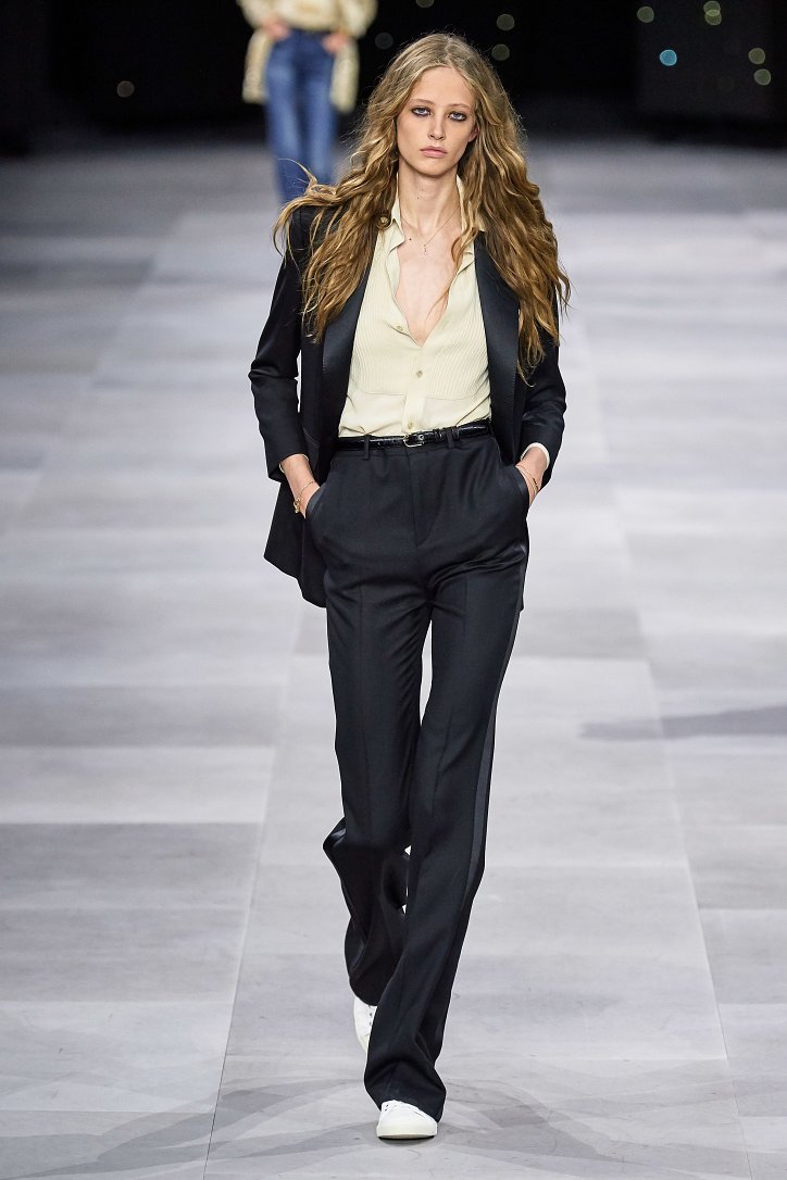 Новая коллекция Celine стала продолжением прошлой – Эди Слиман вновь обращается к эпохе семидесятых, и предлагает модницам гардероб в духе французской буржуазии той поры.