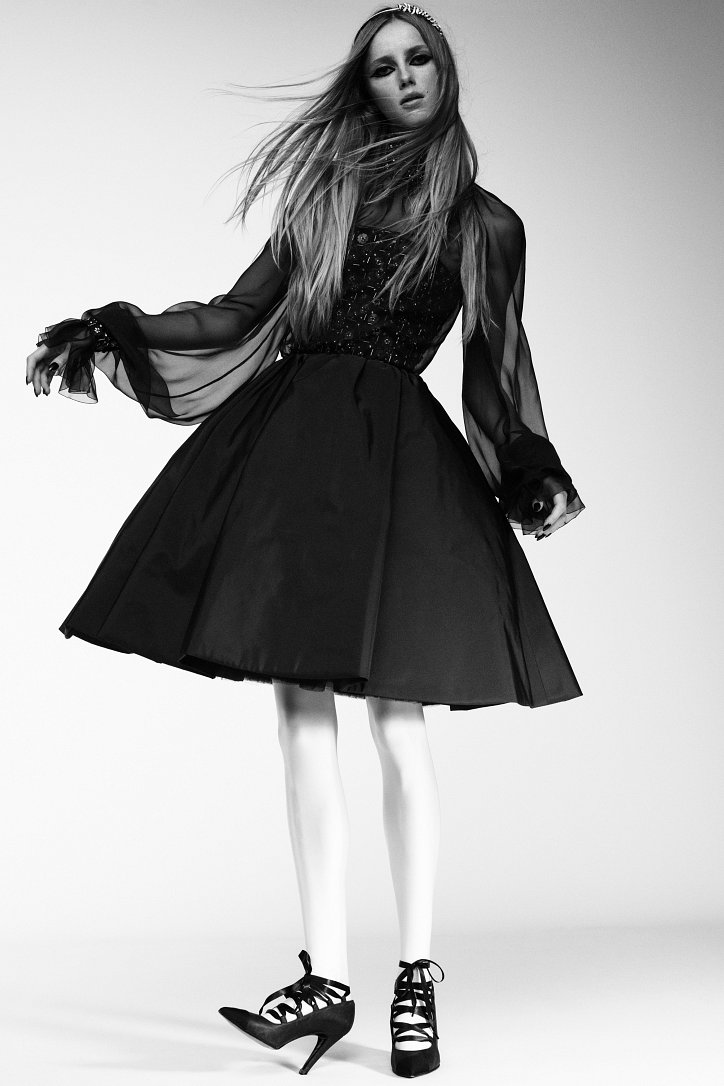 Изысканная, эксцентричная и необычная – такова новая коллекция Chanel Haute Сouture. Да и какой еще она могла бы быть, если создавая ее, Виржини Виар размышляла о рок-принцессах в платьях из тафты и перьев и со множеством украшений? Одной из таких принцесс была Диана де Бово-Краон – одна из муз Карла Лагерфельда. Вероятно, поэтому и коллекция пронизана духом Лагерфельда – костюмы из твида мерцают вплетенными в структуру ткани золотыми нитями, платья поражают роскошью и броской отделкой.