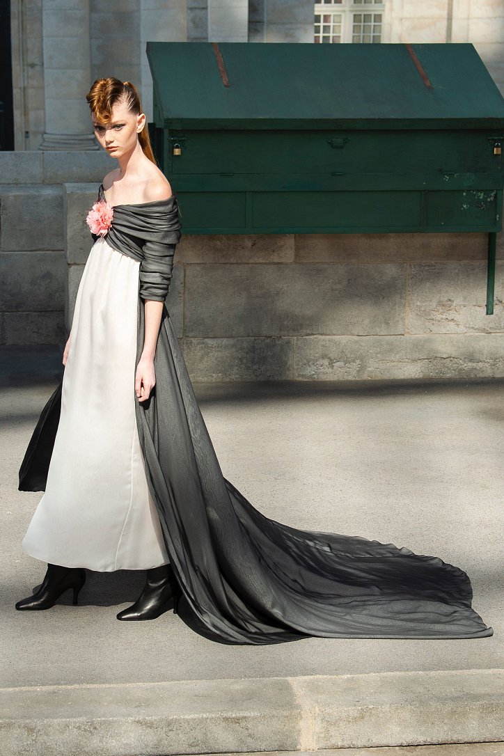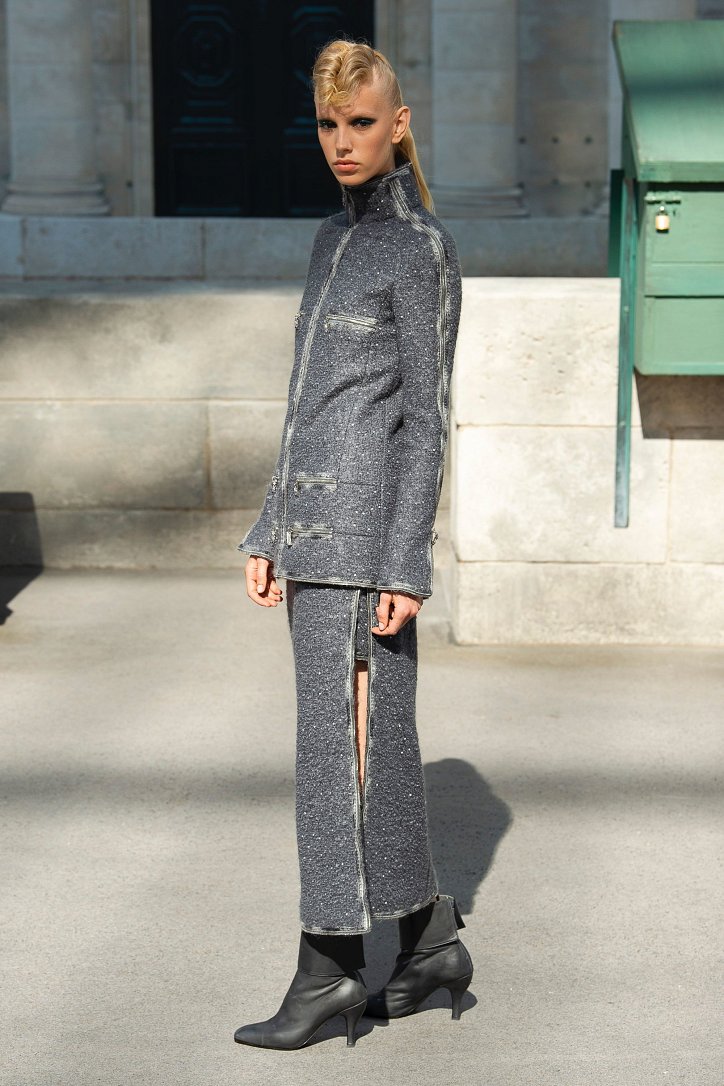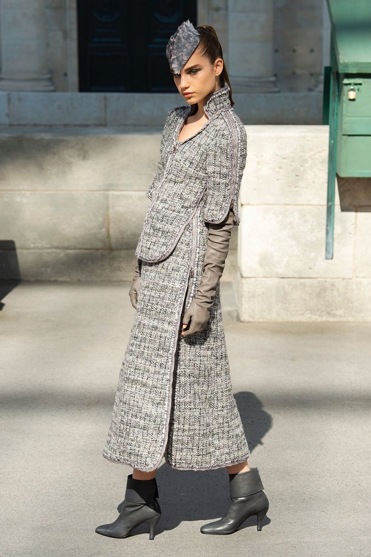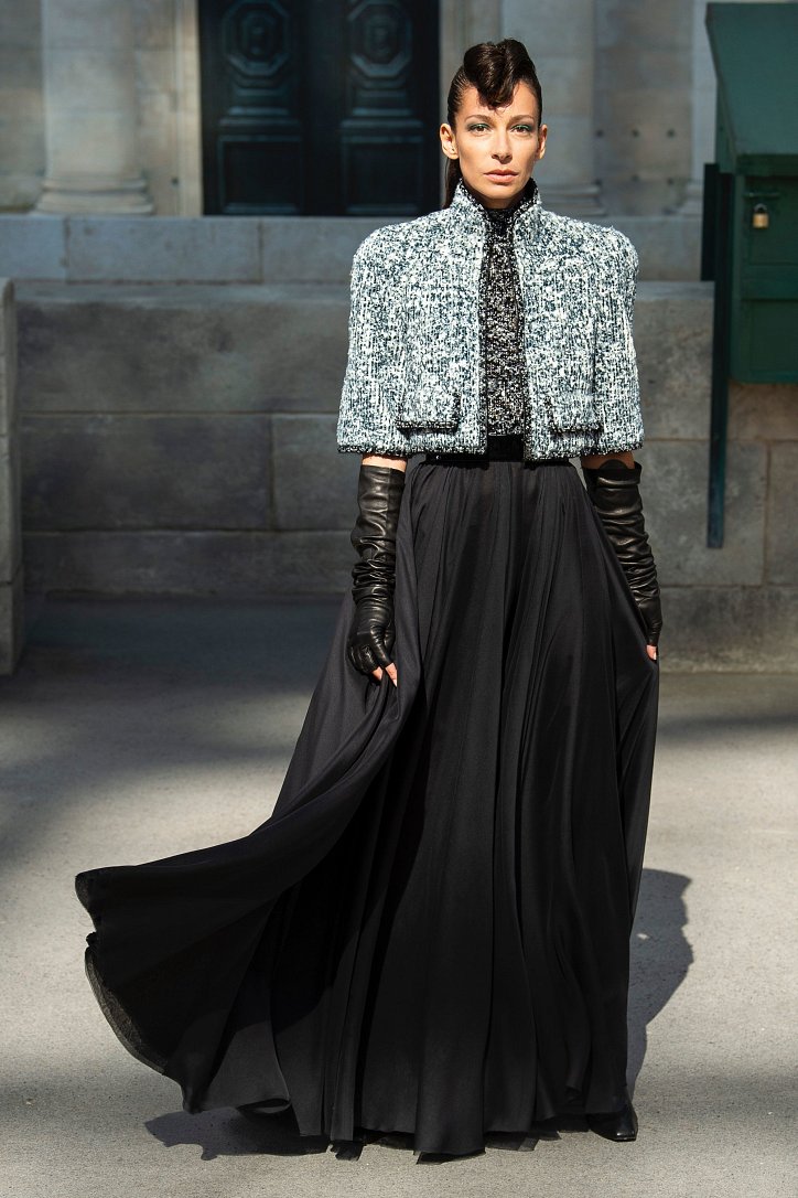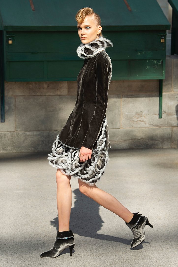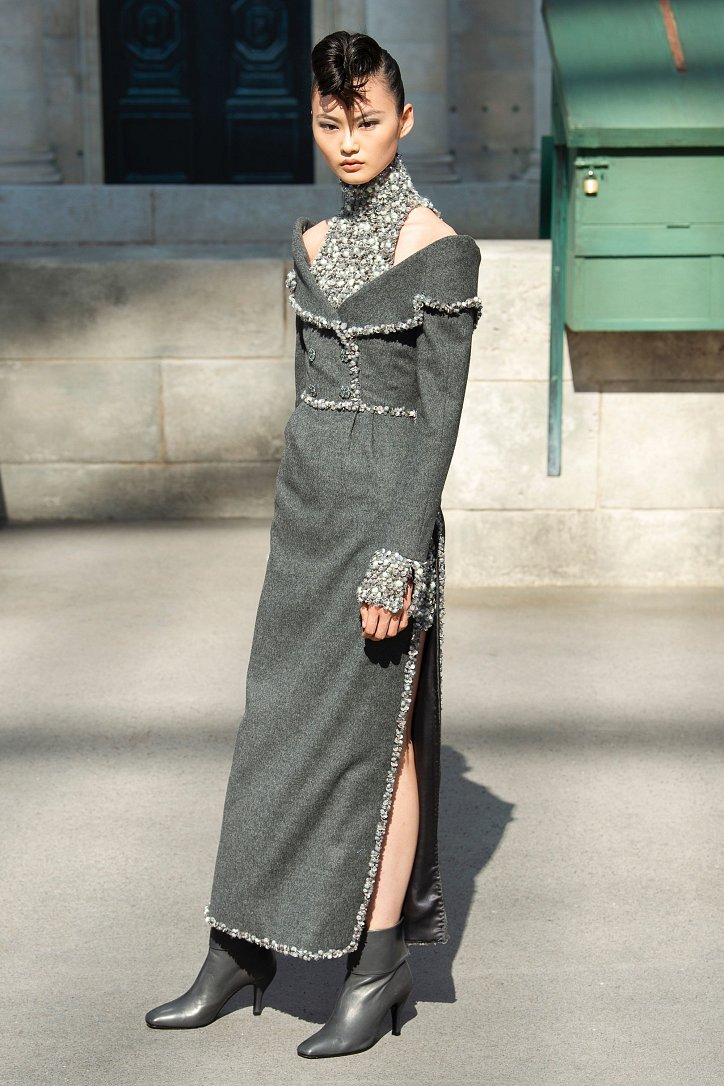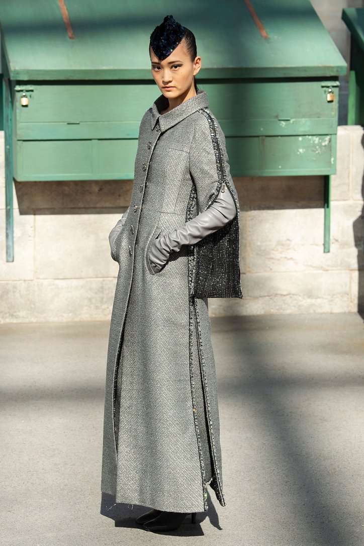 Выглядывая из окна своей квартиры, мэтр видит набережную и темно-зеленые стойки букинистов, которые обосновались там уже давным-давно. Этот «вид из окна» он и решил показать гостям показа. Под стать панораме была и цветовая гамма коллекции: широкие тротуары и низкие каменные стены, обрамляющие Институт Франции, повторялись в серых оттенках большинства моделей. Твид, шелк фай и шифон, из которых были сшиты костюмы, платья и пальто, вызывали ассоциации с серыми каменными фасадами домов, а сверкающая вышивка – с отблесками звезд на водной глади Сены и огнями проплывающих по реке суденышек.