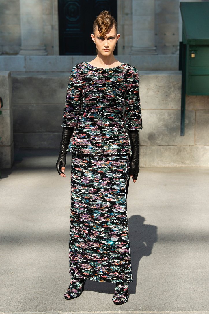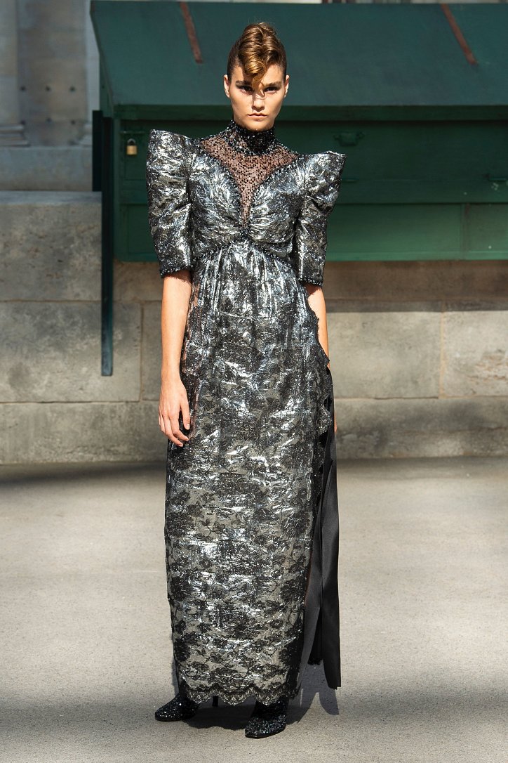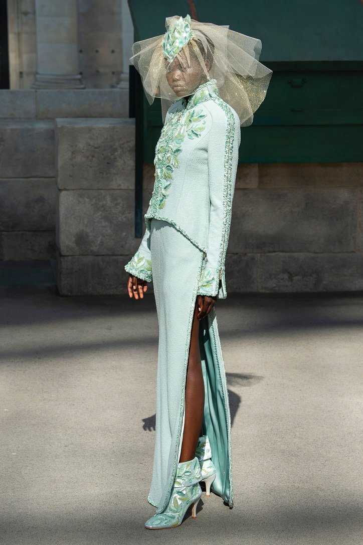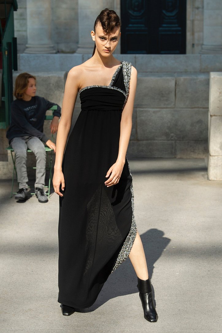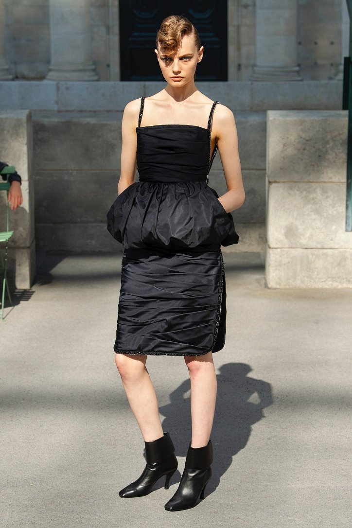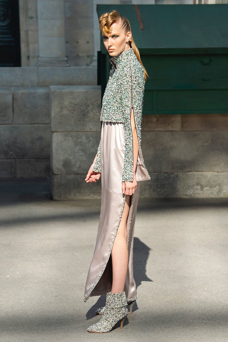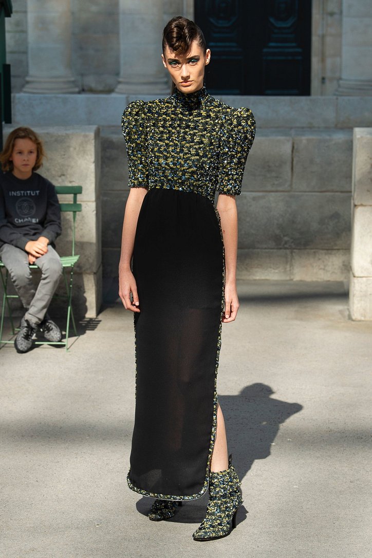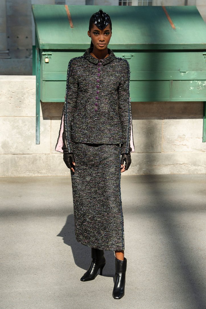 Выглядывая из окна своей квартиры, мэтр видит набережную и темно-зеленые стойки букинистов, которые обосновались там уже давным-давно. Этот «вид из окна» он и решил показать гостям показа. Под стать панораме была и цветовая гамма коллекции: широкие тротуары и низкие каменные стены, обрамляющие Институт Франции, повторялись в серых оттенках большинства моделей. Твид, шелк фай и шифон, из которых были сшиты костюмы, платья и пальто, вызывали ассоциации с серыми каменными фасадами домов, а сверкающая вышивка – с отблесками звезд на водной глади Сены и огнями проплывающих по реке суденышек.