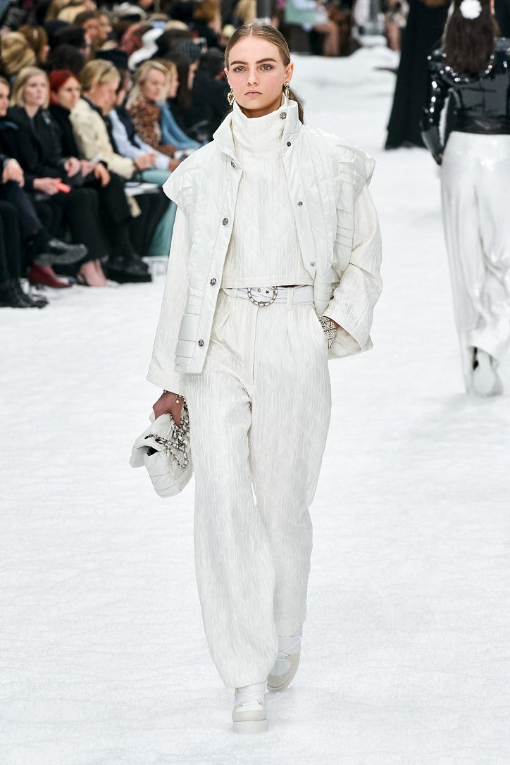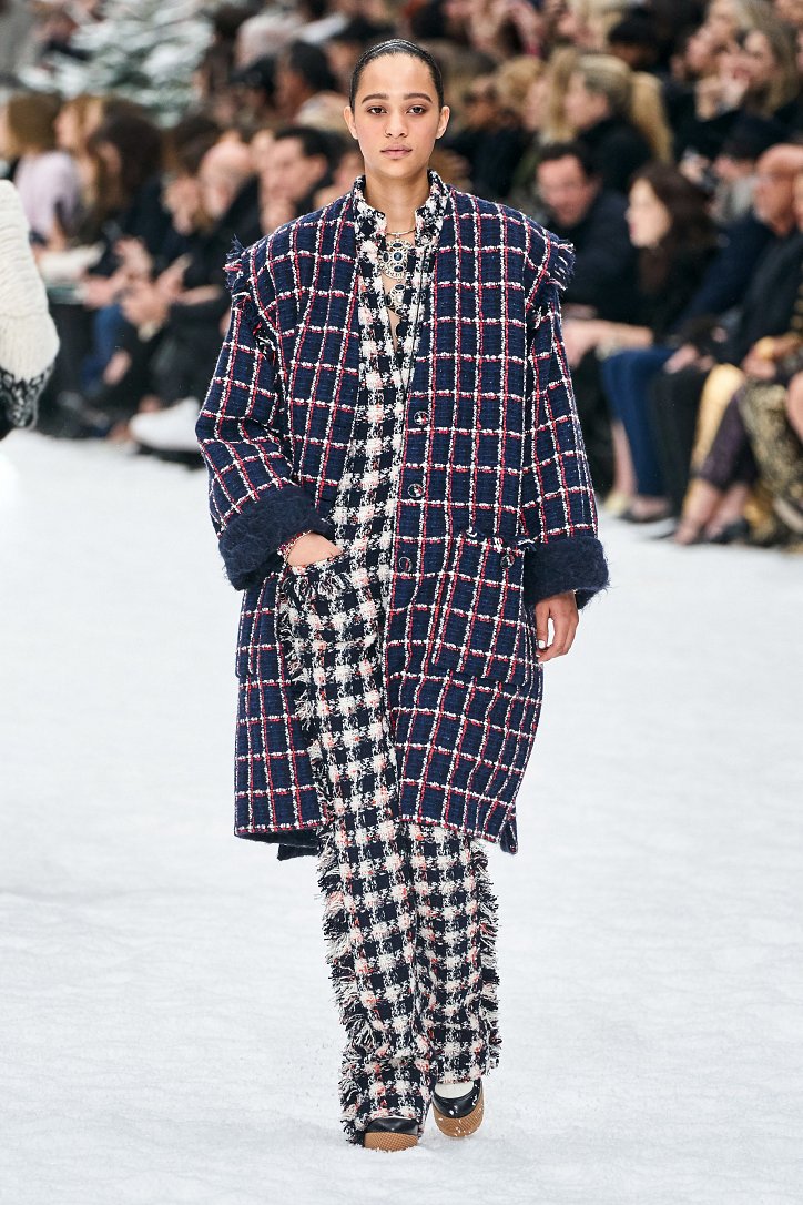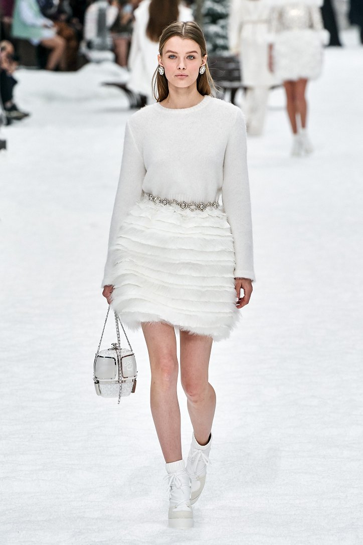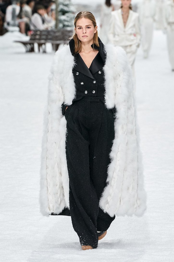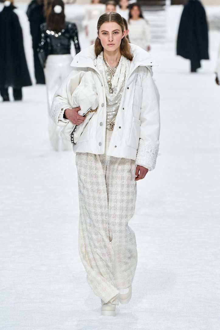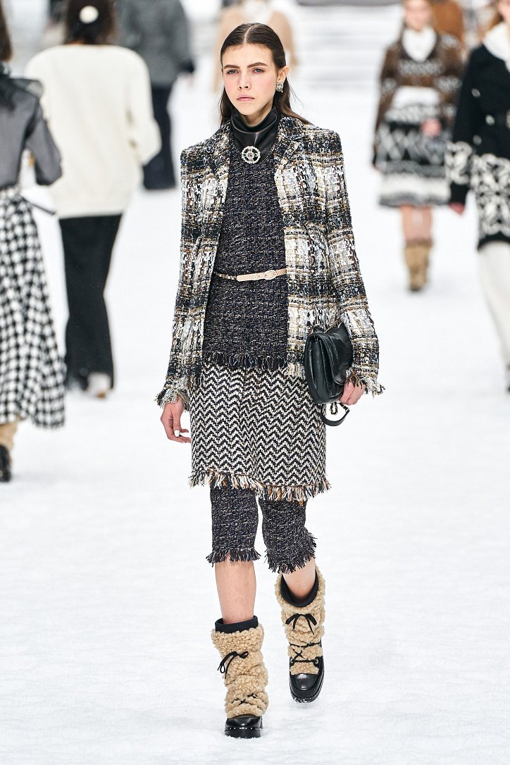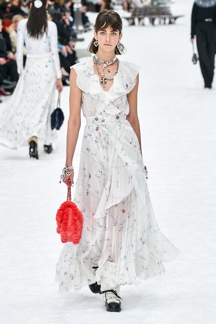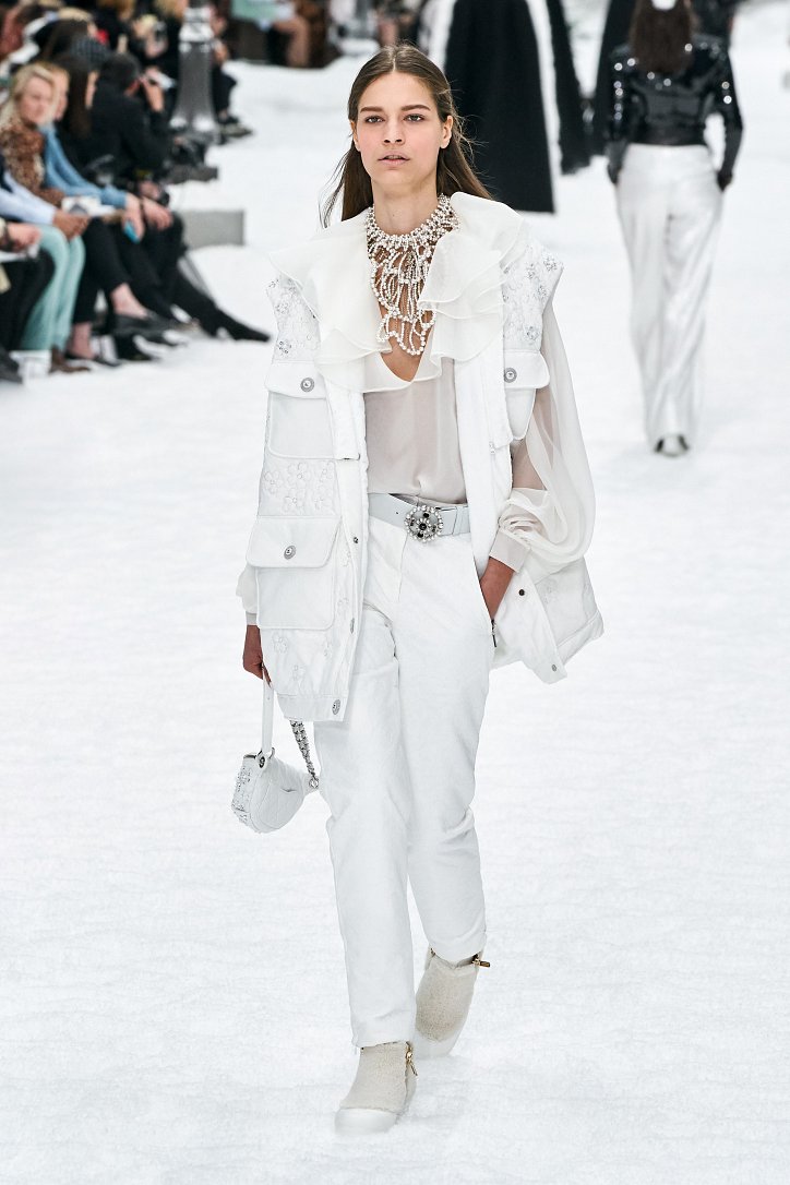 В последний раз гости шоу могли полюбоваться творениями, к созданию которых был причастен Лагерфельд. Своеобразное «прощание» состоялось на горнолыжном курорте: на фоне заснеженной альпийской деревни, деревянных шале и покрытых снегом елок модели демонстрировали анонсированную в прошлом году коллекцию Coco Neige. В ней есть все, что нужно для того, чтобы покататься на лыжах или отправиться на прогулку, а вечером посидеть у камина: вязаные кардиганы, шерстяные брюки и зимние юбки, яркие пуховики и пальто макси, обилие твида и всевозможной клетки, длинные кейпы и роскошные белые платья-мини – прекрасный наряд для встречи Нового года в горах.